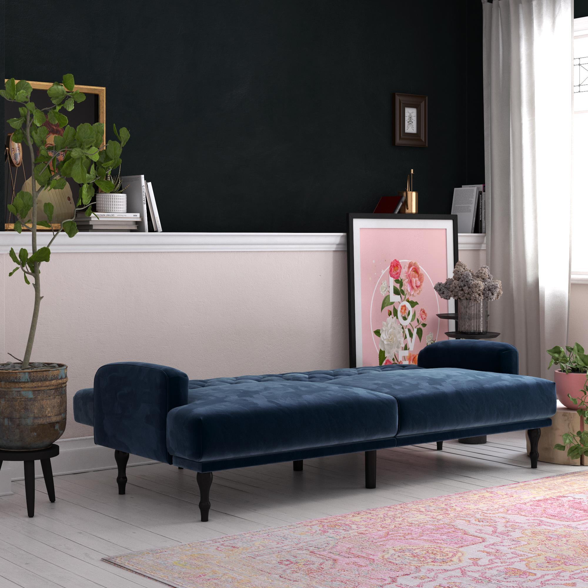 Midcentury moderne sofa med diamantknappede detaljer i ryglænet.