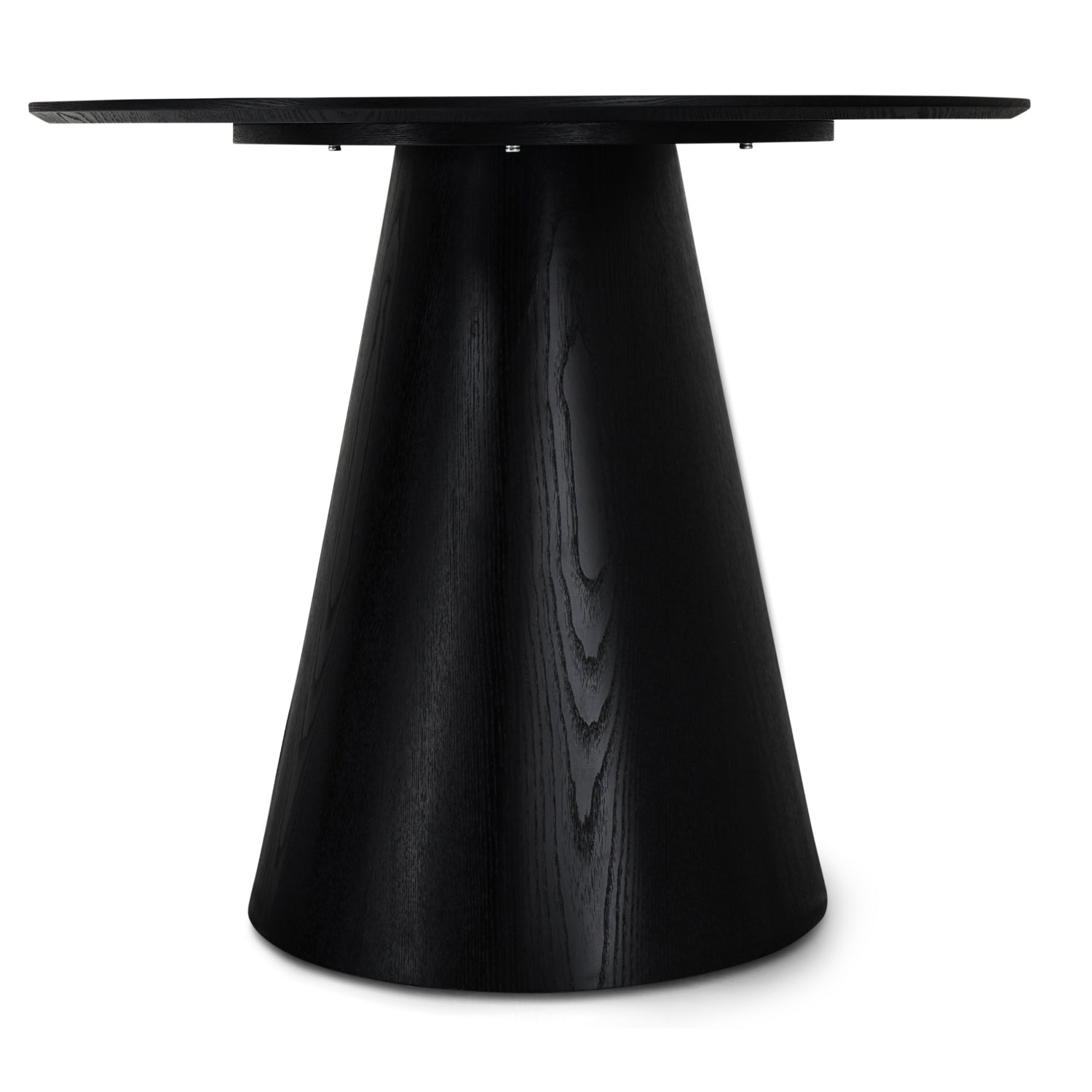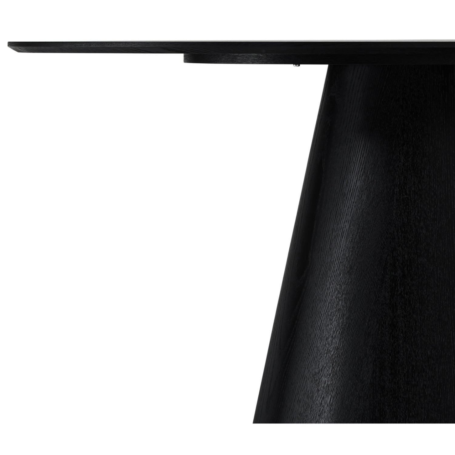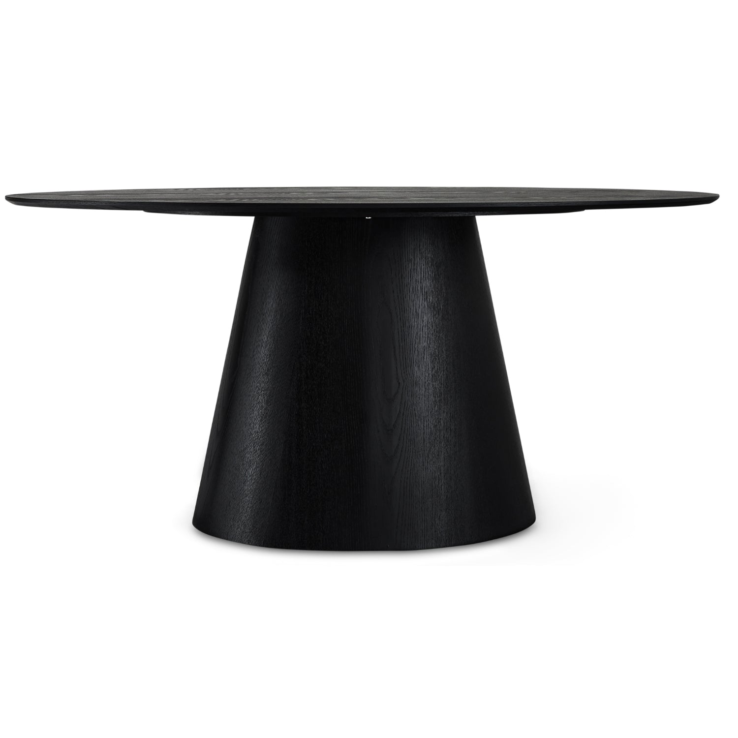 Denne version af Tango ovale spisebord har en 160×90 cm plade med sort egefiner og en matchende central base. Med en bordpladetykkelse på 4 cm og en højde på 76 cm har den komfortabelt plads til seks. Bordet vejer 69 kg og bærer 30 kg. FSC® certificeret og leveret i to pakker. Til indendørs brug. Montering påkrævet.