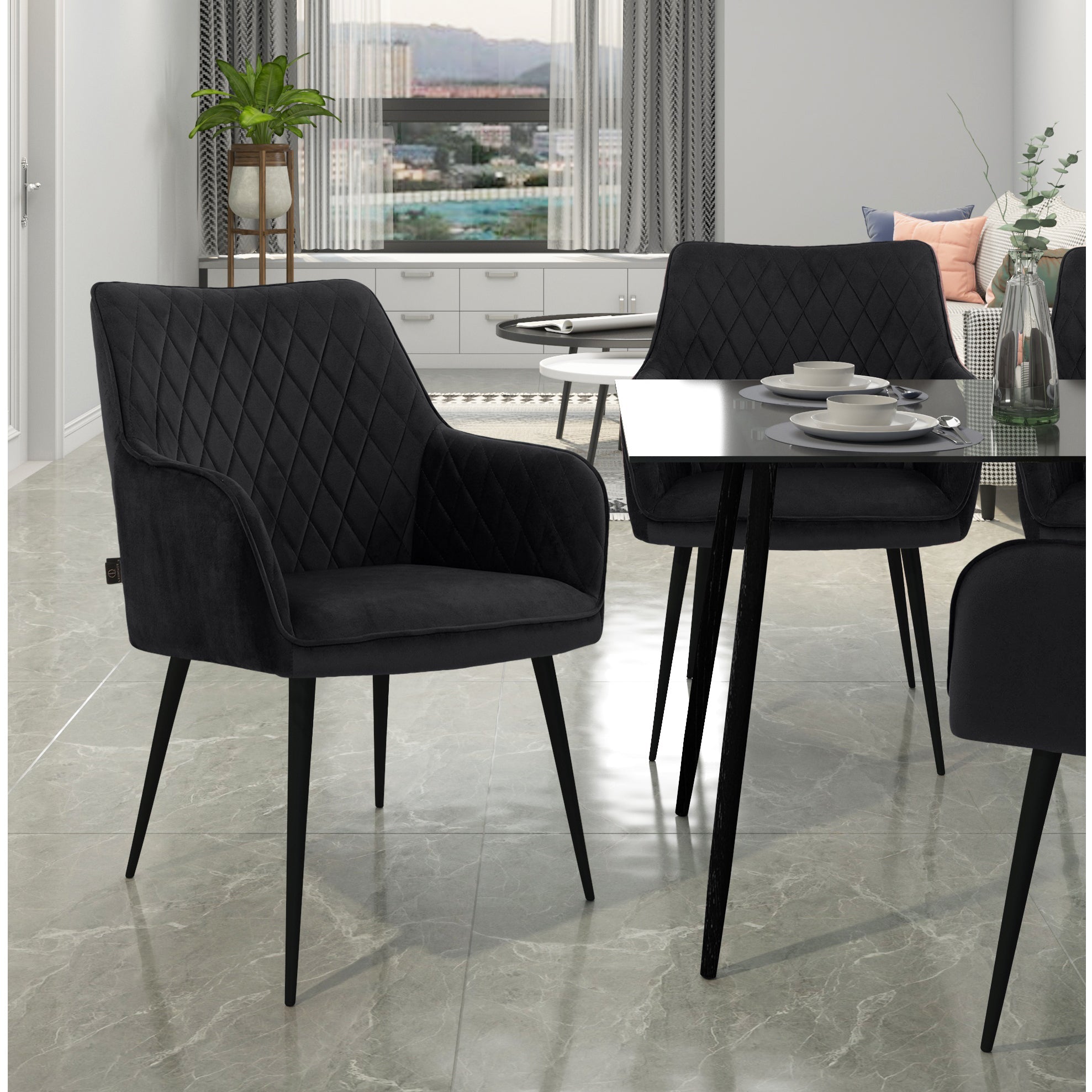Et moderne højdepunkt i dit værelse er lænestolen med behagelig polstring. Dens udseende er defineret af en smuk harlekin-quiltning og en trendy metalramme. Så du harmonisk kan koordinere spisestuestolen med din eksisterende indretning. Med sine komfortable armlæn og polstring på sæde og ryg sikrer den en høj komfort. Kvalitetsmæssigt imponerer stolen med sin fremstilling af letplejematerialer. Giver dit hjem noget bestemt lænestolen med behagelig polstring.