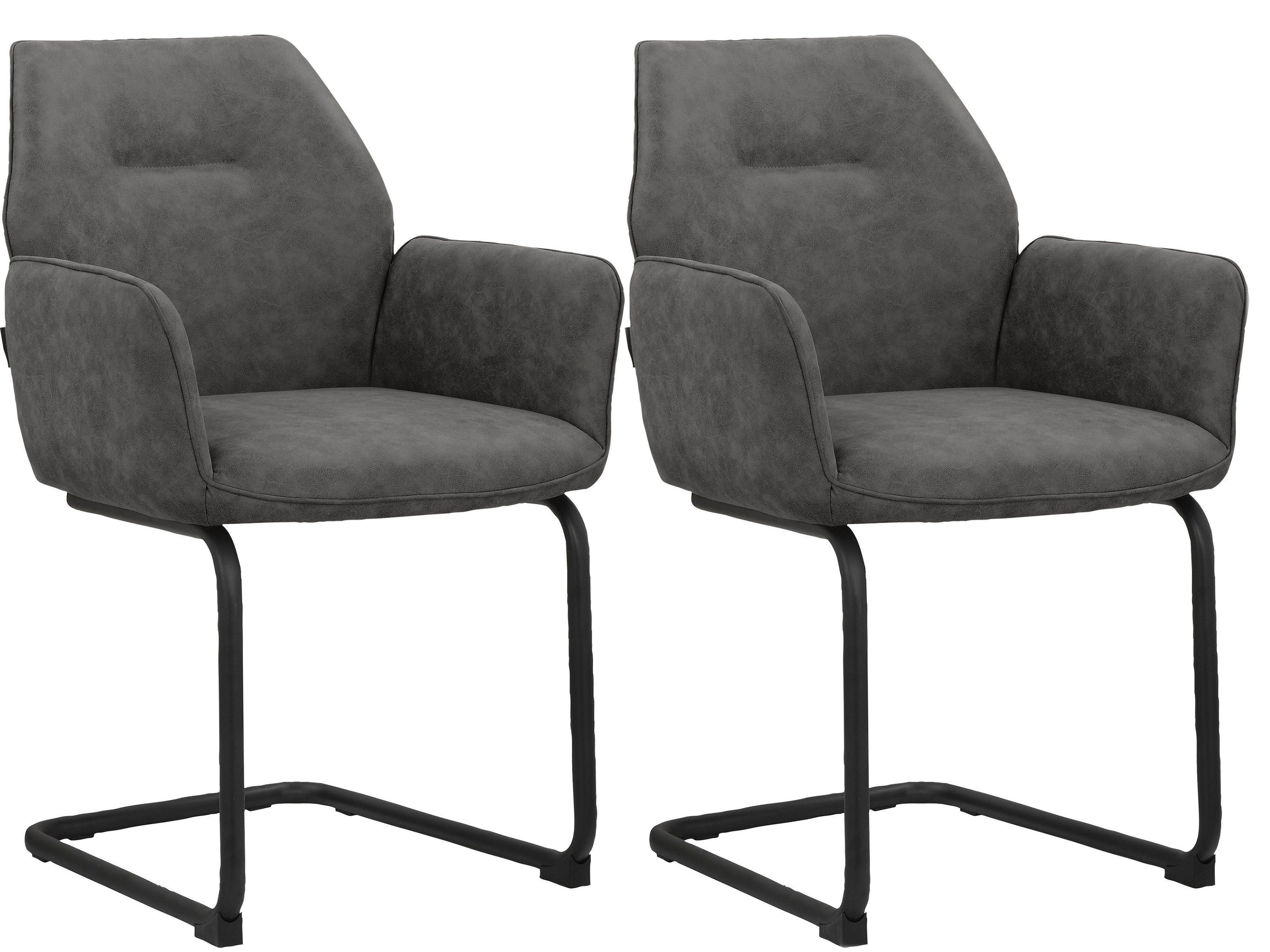 Tidløst design og høj komfort, lænestolen med armlæn og rørramme kombinerer begge dele på en dygtig måde. Visuelt imponerer stolen med sit design som udkrager, der giver møblet en tidløs elegance. En sædeenhed med et behageligt betræk hviler på den filigran-lignende ramme. Spisestuestolen leveres i et sæt 2 stk. Lænestolen med armlæn og rørformet stel forskønner dit opholdsrum. Din familie og venner nyder at tilbringe tid sammen over middag på de komfortable spisestuestole.