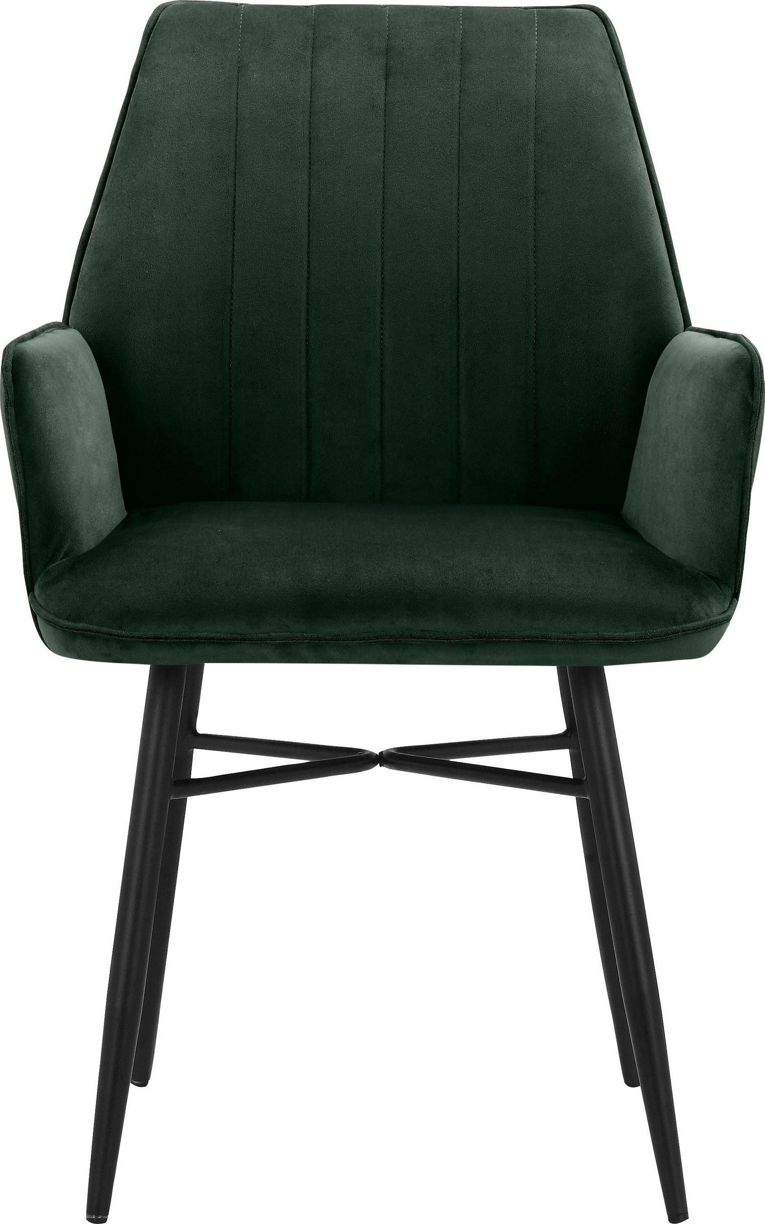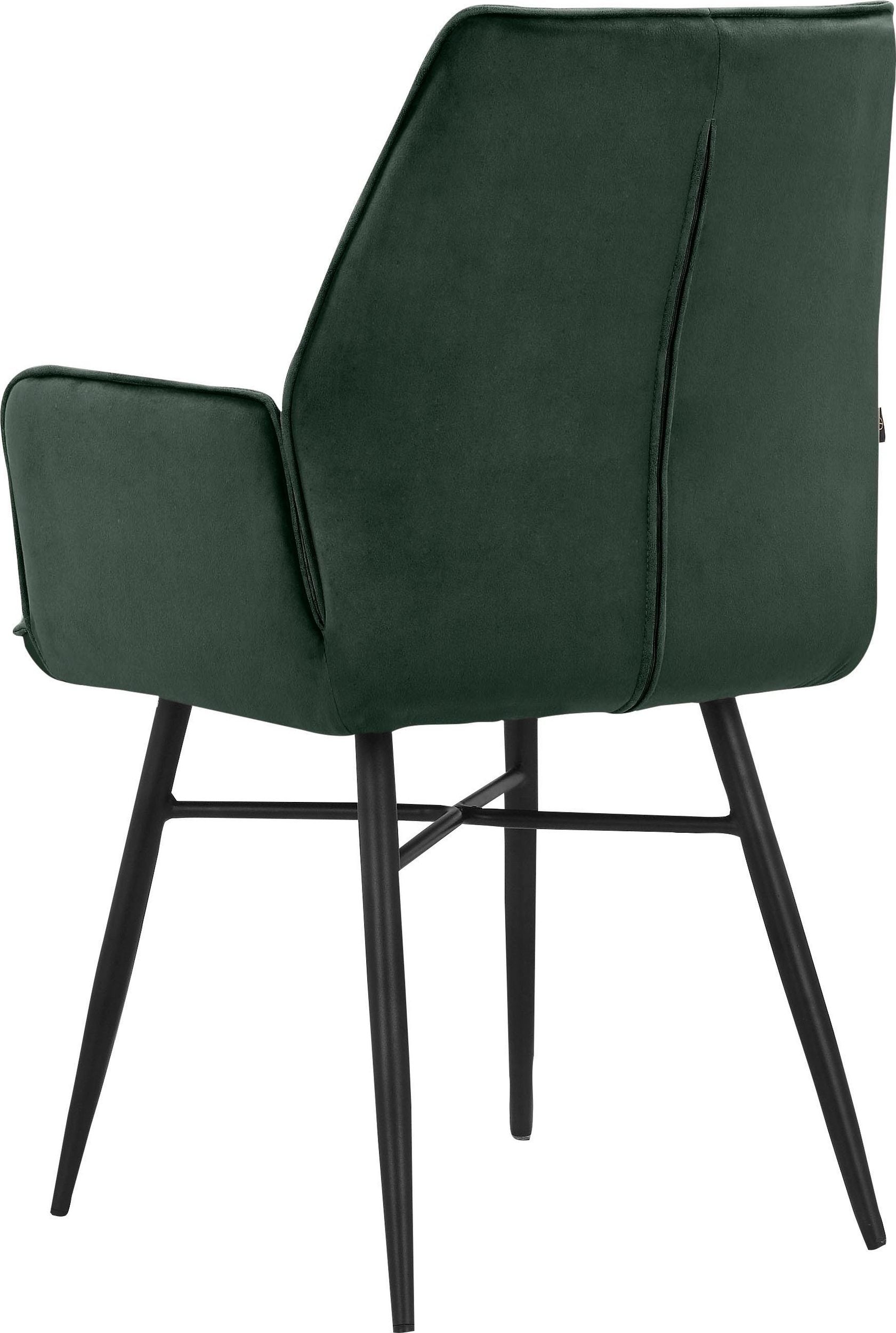Elegant komfortabel og alsidig disse egenskaber beskriver lænestolen med polstring perfekt. Visuelt imponerer stolen med sit elegante formsprog. Designets højdepunkter omfatter de vandrette sømme på bagsiden samt stellet lavet af sortlakeret metal. Alternativt kan et mixandmatch-sæt sammensættes. Du kan bruge stolen til at stille den i spisestuen eller i køkkenet. Lænestolen med polstring leveres i et sæt 2 stk.