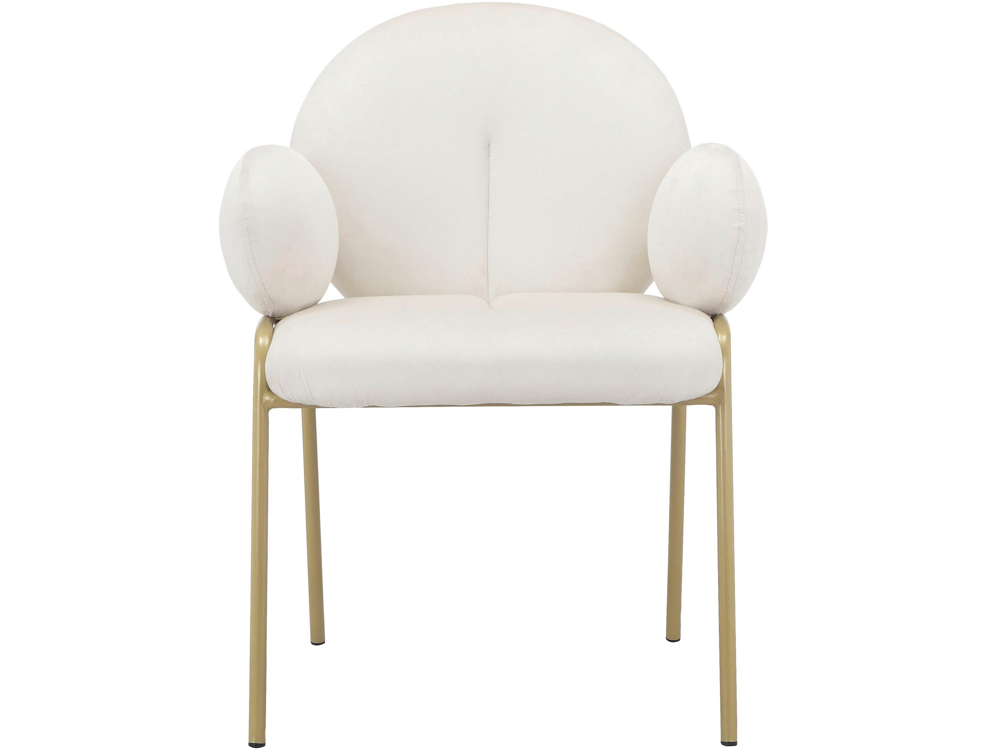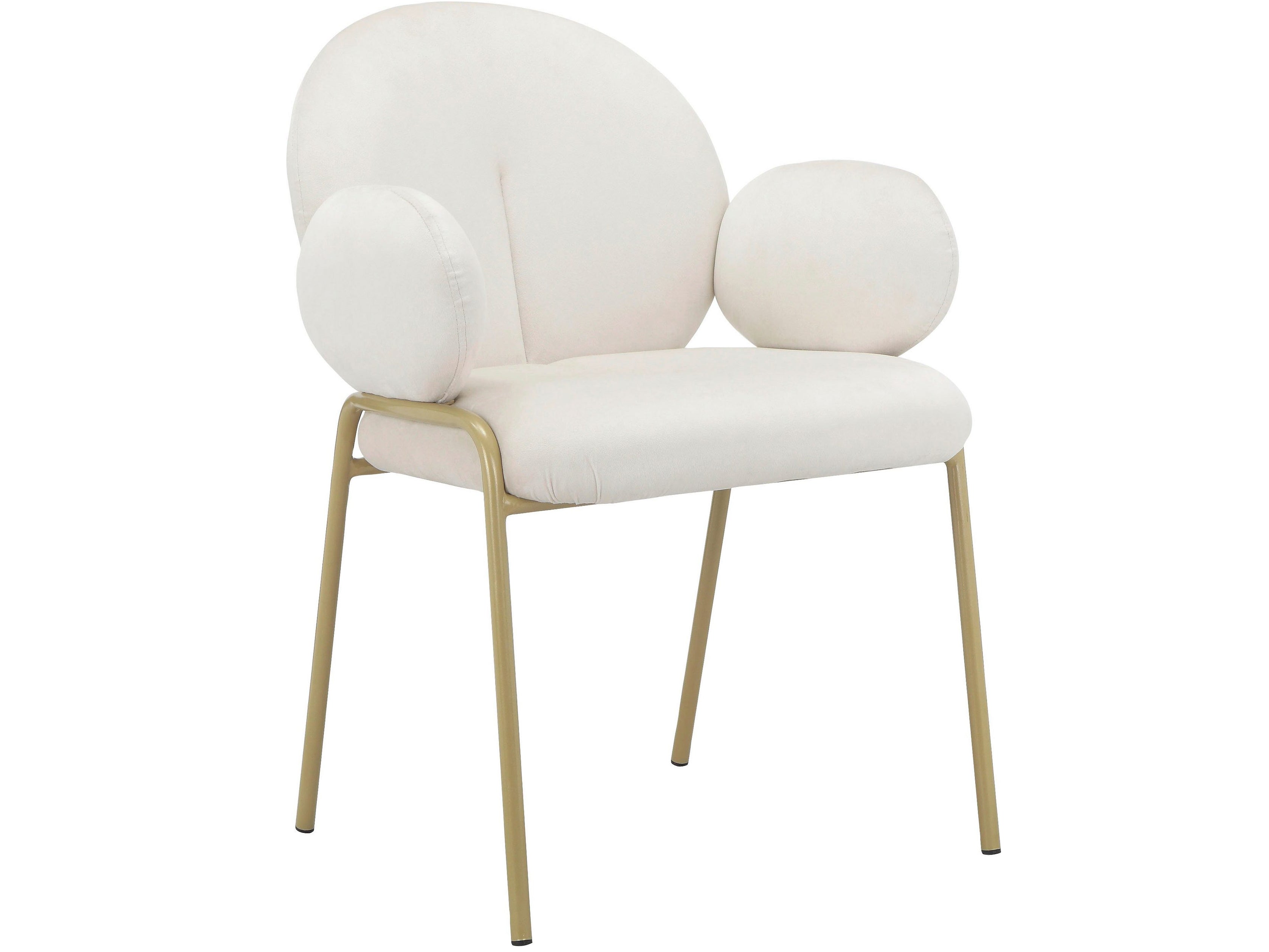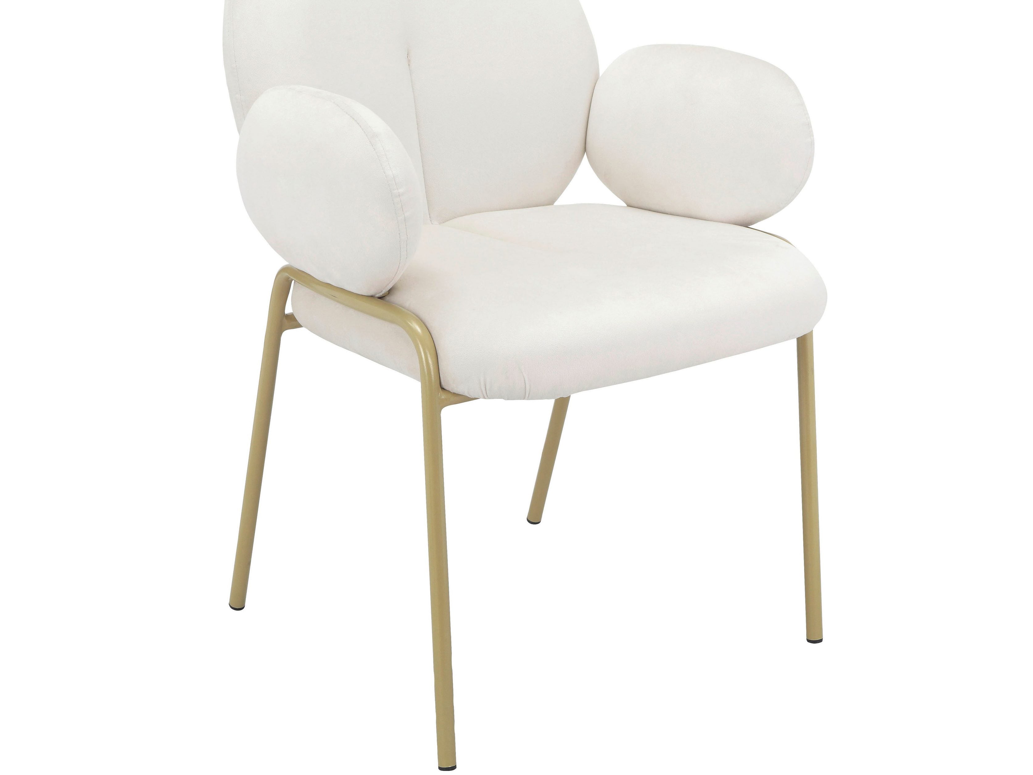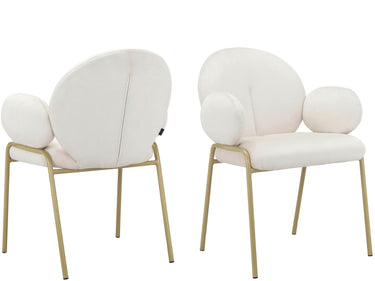 Dette sæt med 2 spisestuestole er fantastisk til at skabe en hyggelig spiseplads. Både ryglæn og sæde er polstret for komfort. Sædehøjden er 48 cm. Hver stol kan holde op til 120 kg. Stoffet er blødt og den gyldne metalramme er slidstærk. Disse stole har en moderne stil og ser stilfulde ud.