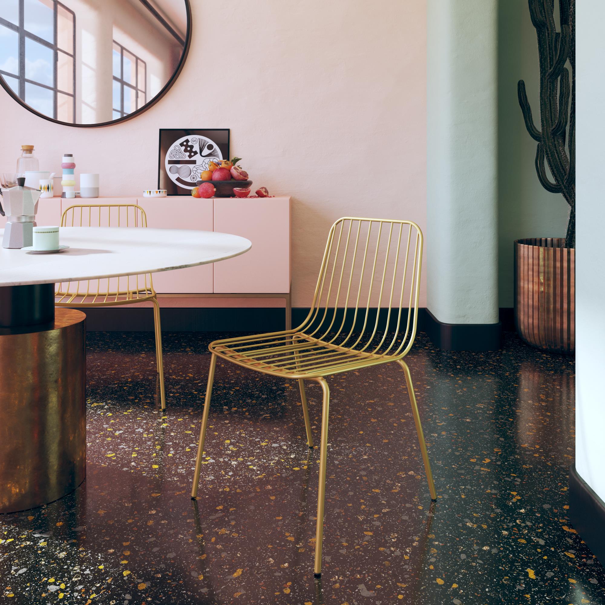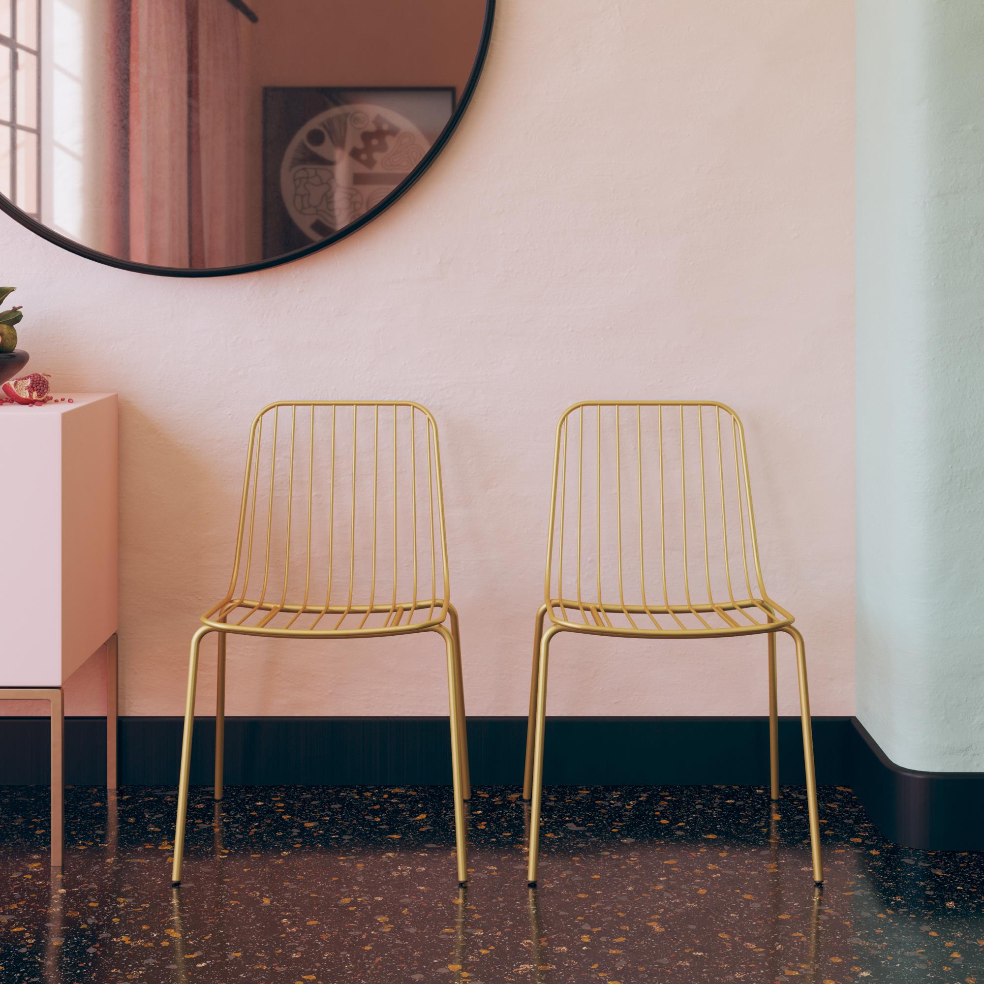 Simpel og praktisk, men alligevel trendy, giver spisestuestolen et moderne og industrielt design. Dens robuste metaltrådsramme sikrer dens levetid, mens dens design giver mulighed for at pynte den med en pude. Pude medfølger ikke.