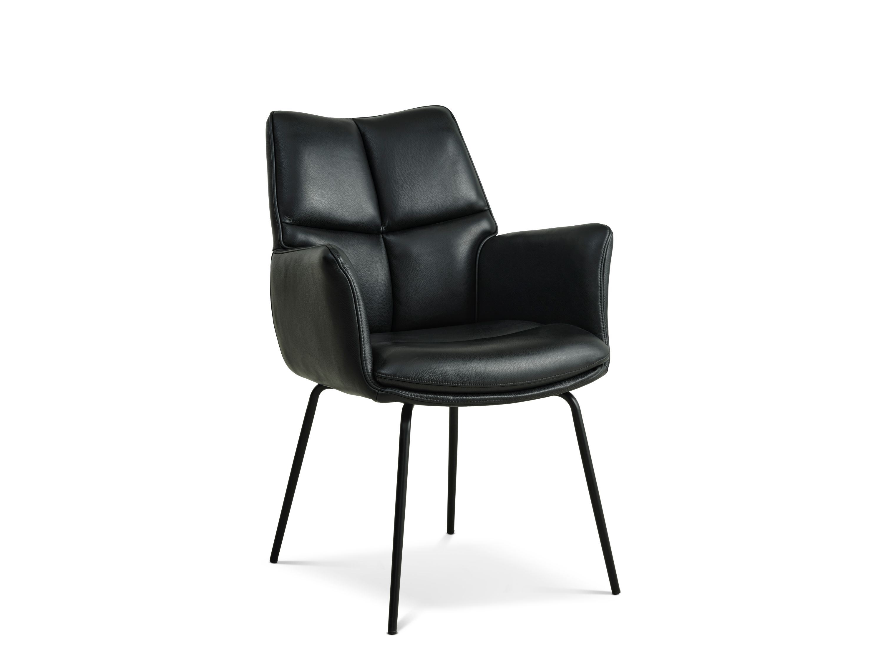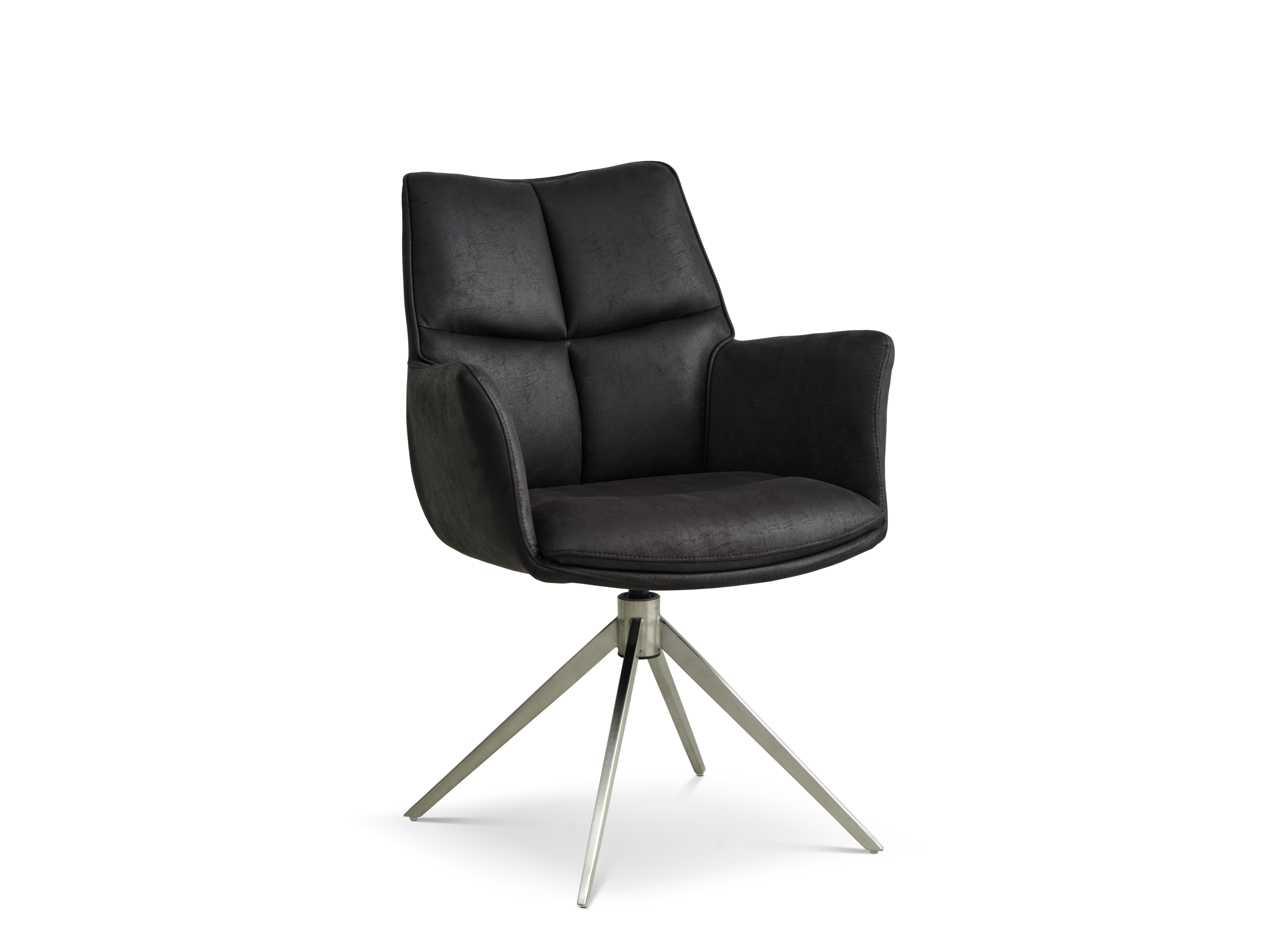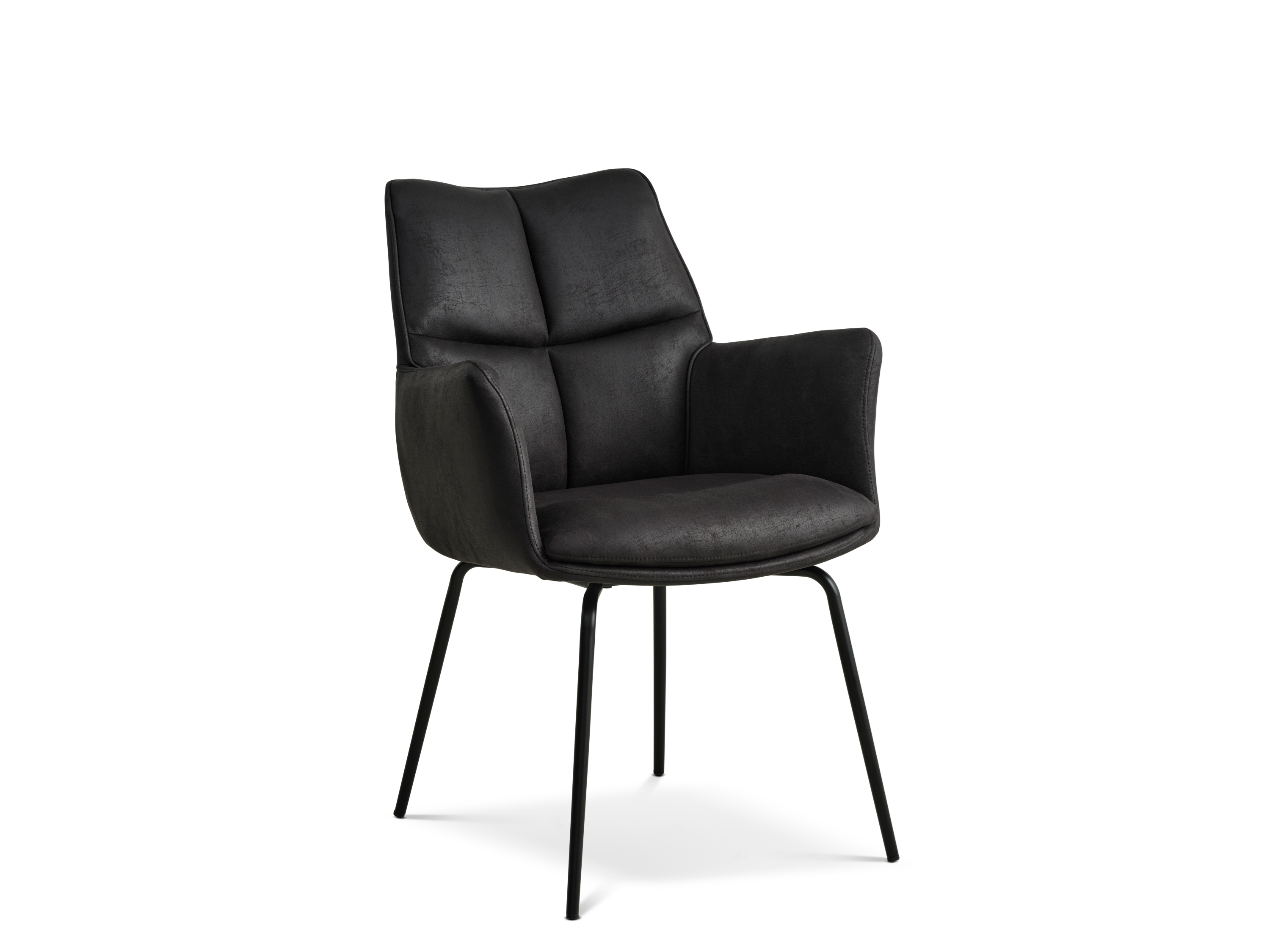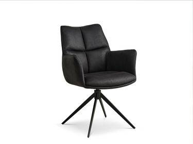 Lily spisebordsstol med armlæn i mikrofiberlæder, onyx sort/sort drejefod