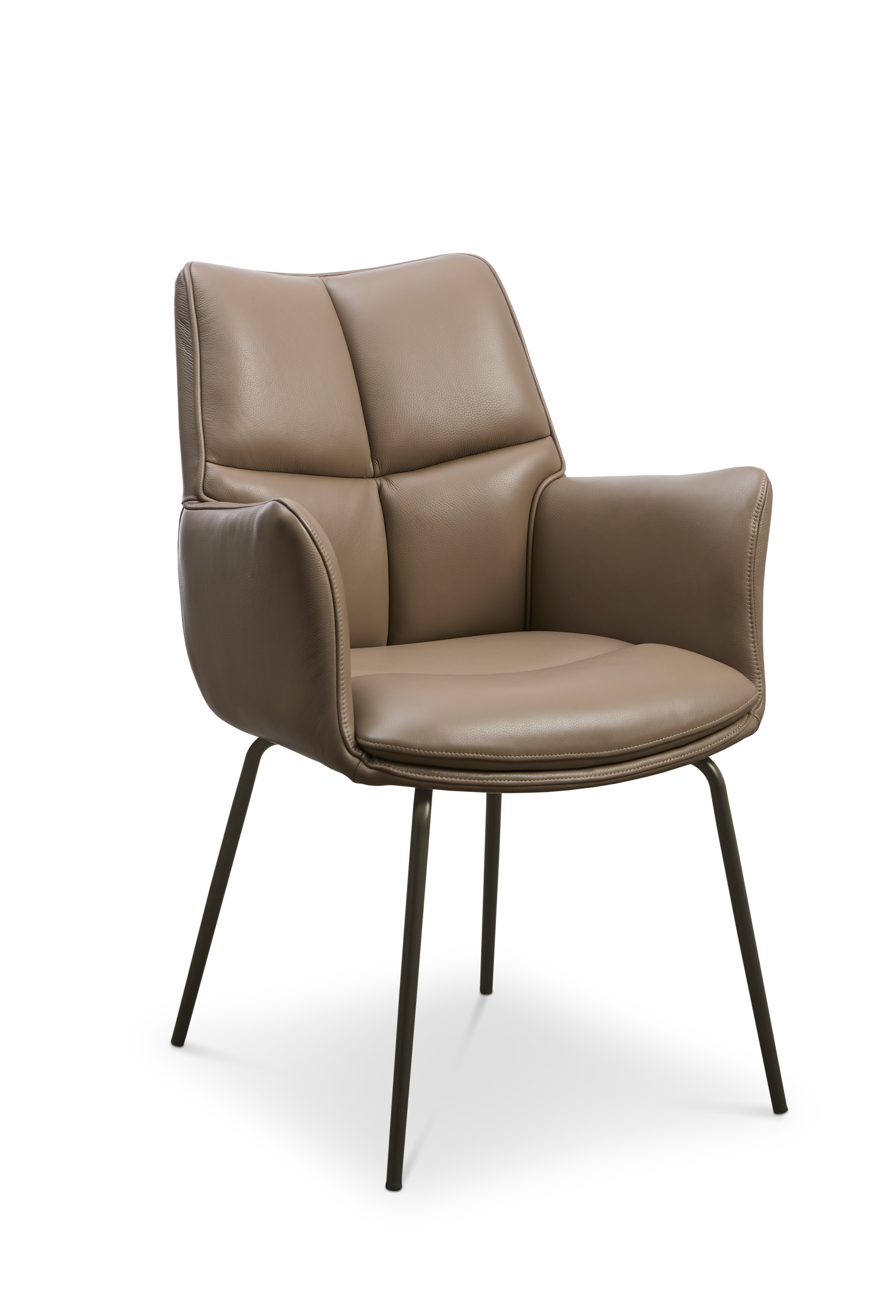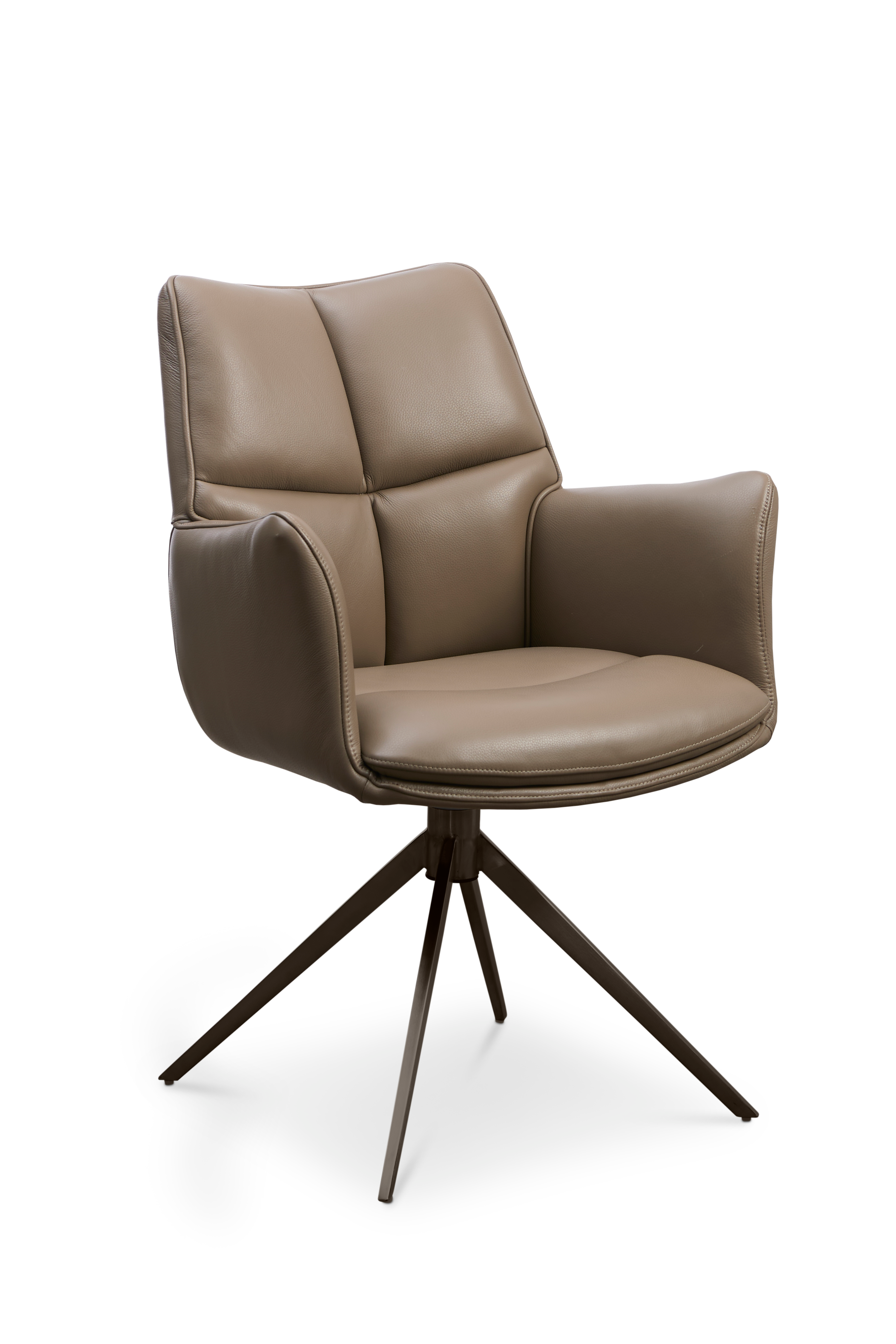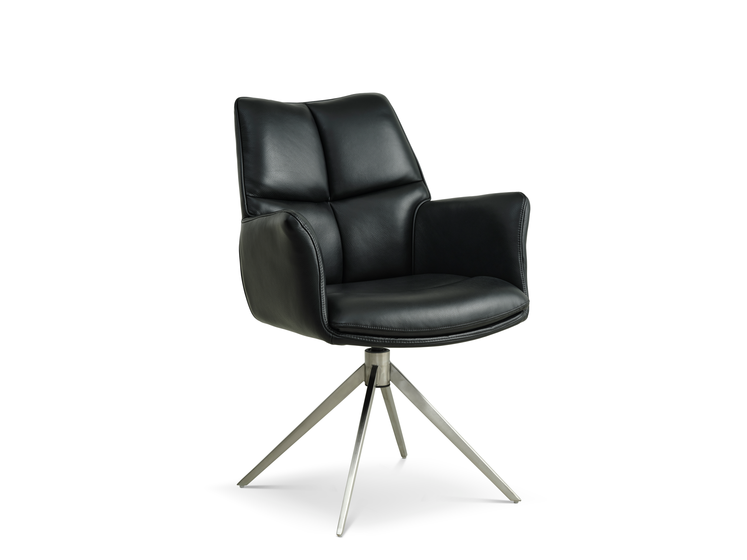 Lily spisebordsstol med armlæn i mikrofiberlæder, onyx sort/sort drejefod