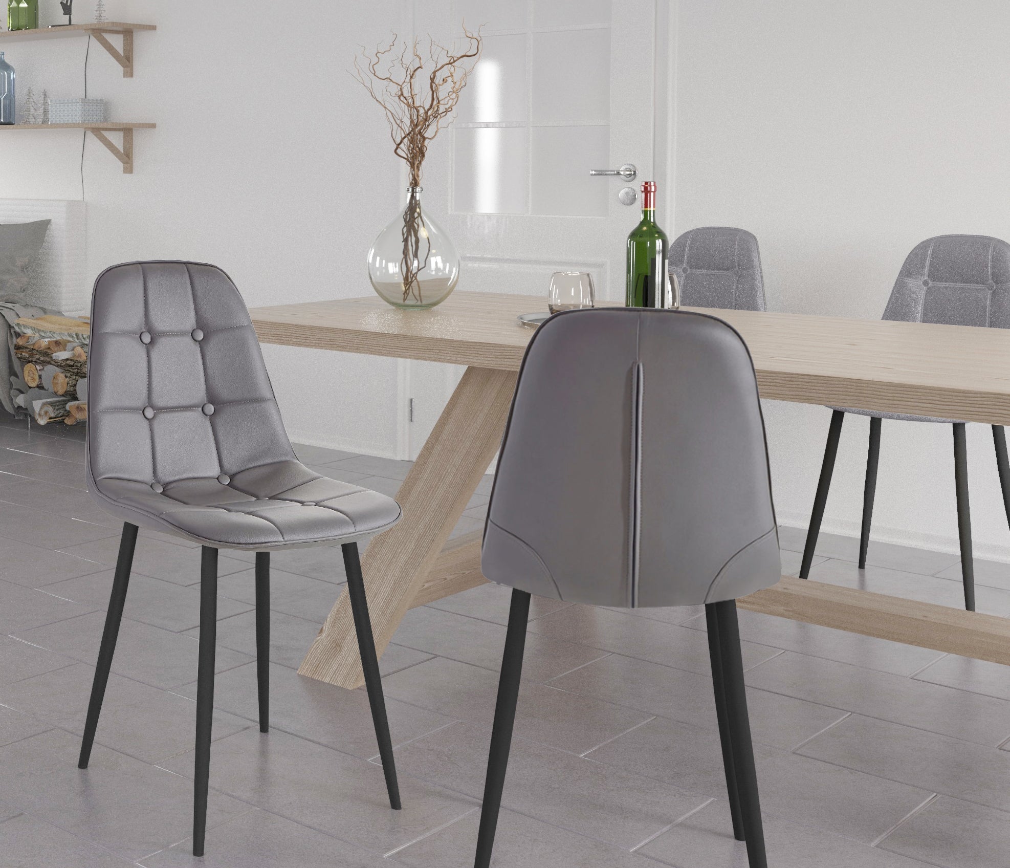 Polstrede spisestuestole Sæt med 4 stk i PU Grå