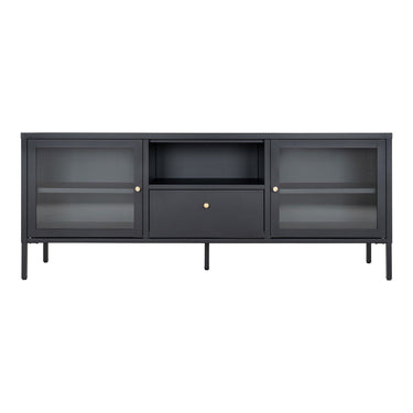TV-Bænk, 2 glaslåger, 1 skuffe, stål, sort, 150x35x60