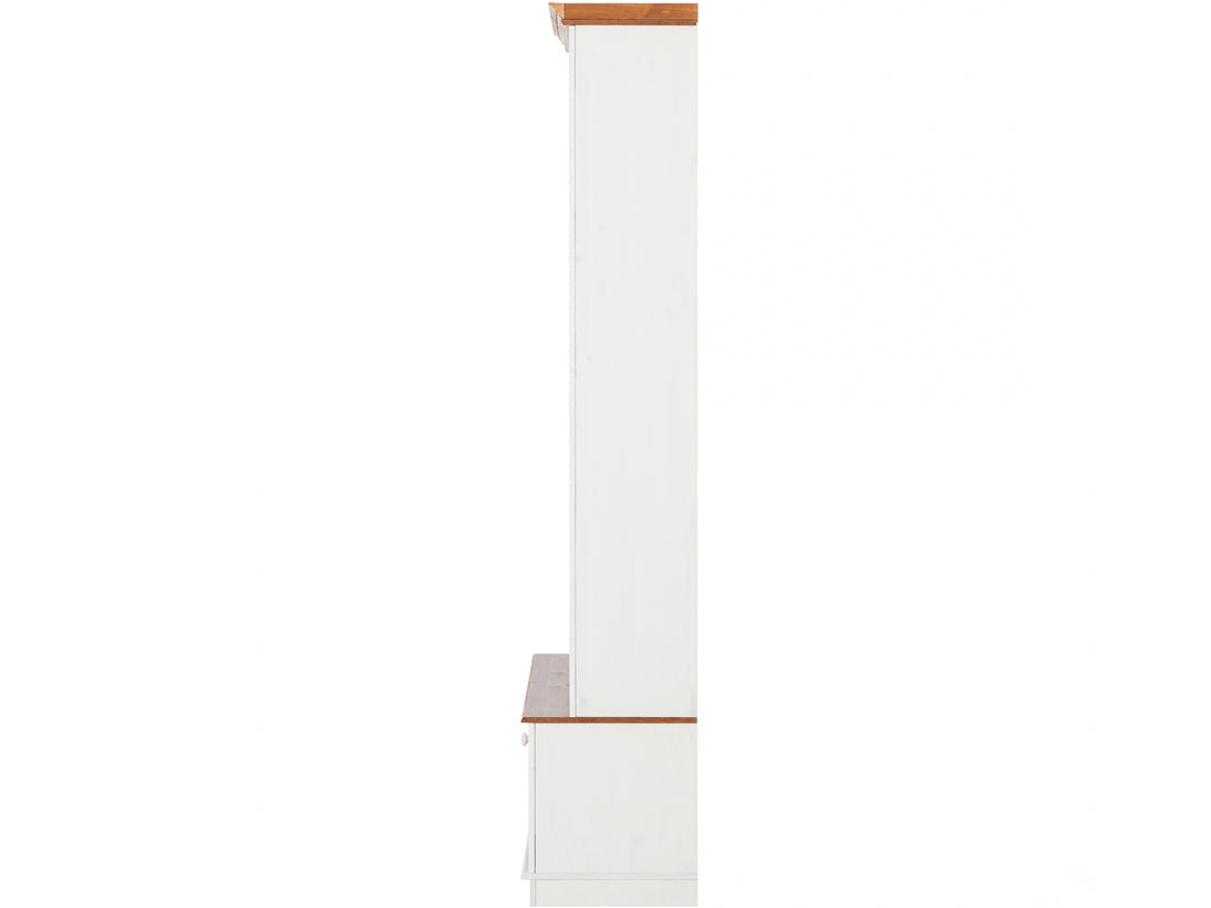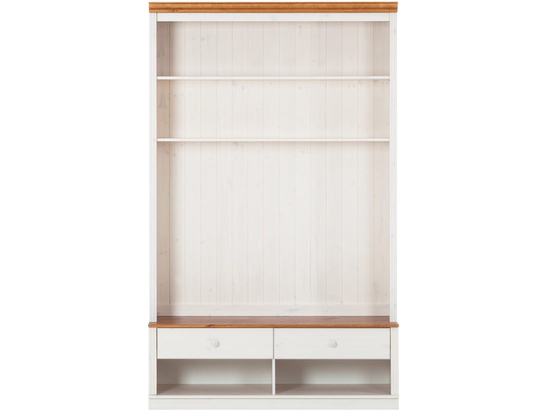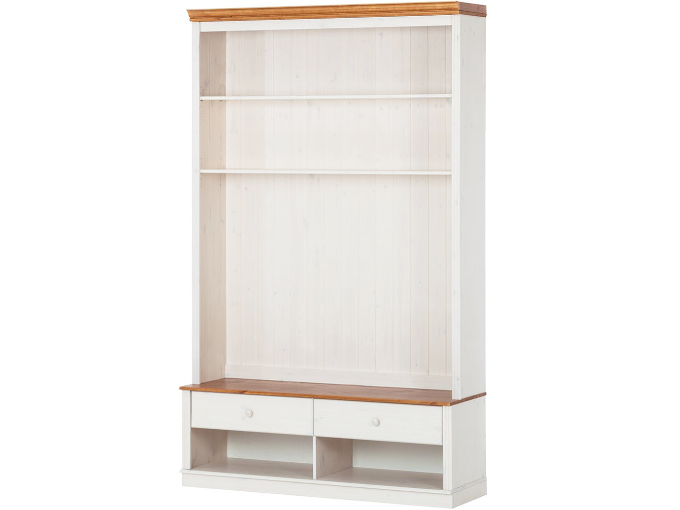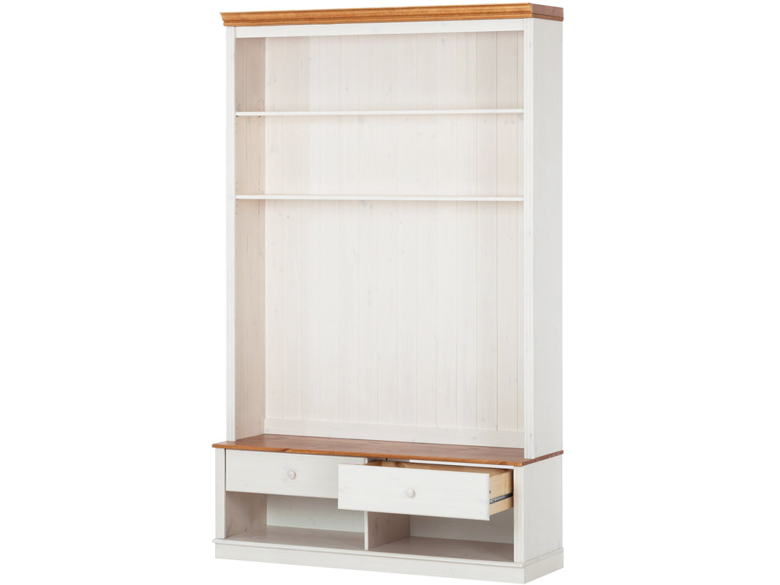 Reol + Lowboard med 2 skuffer i fyrrehvid honning
