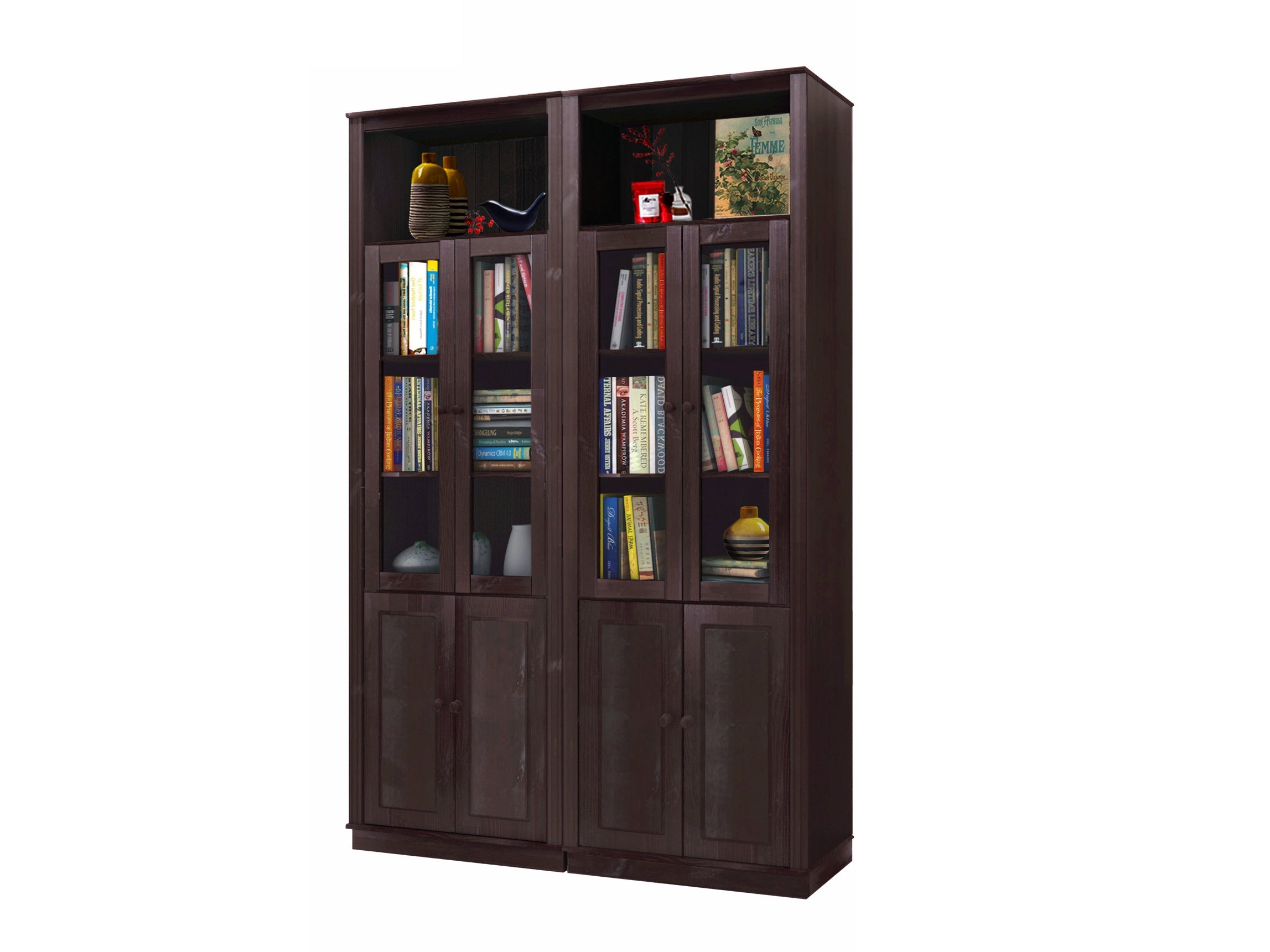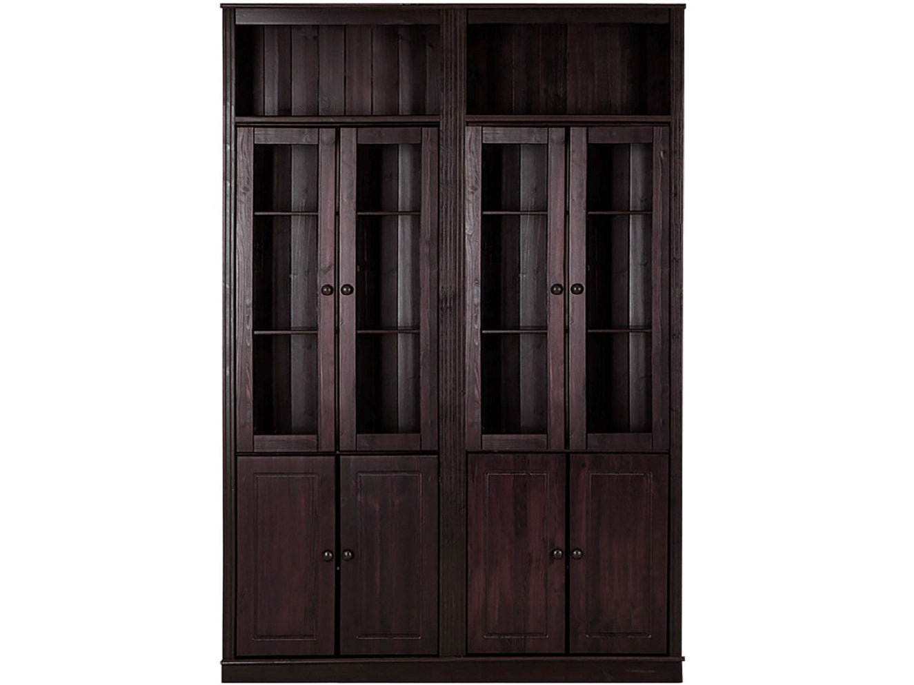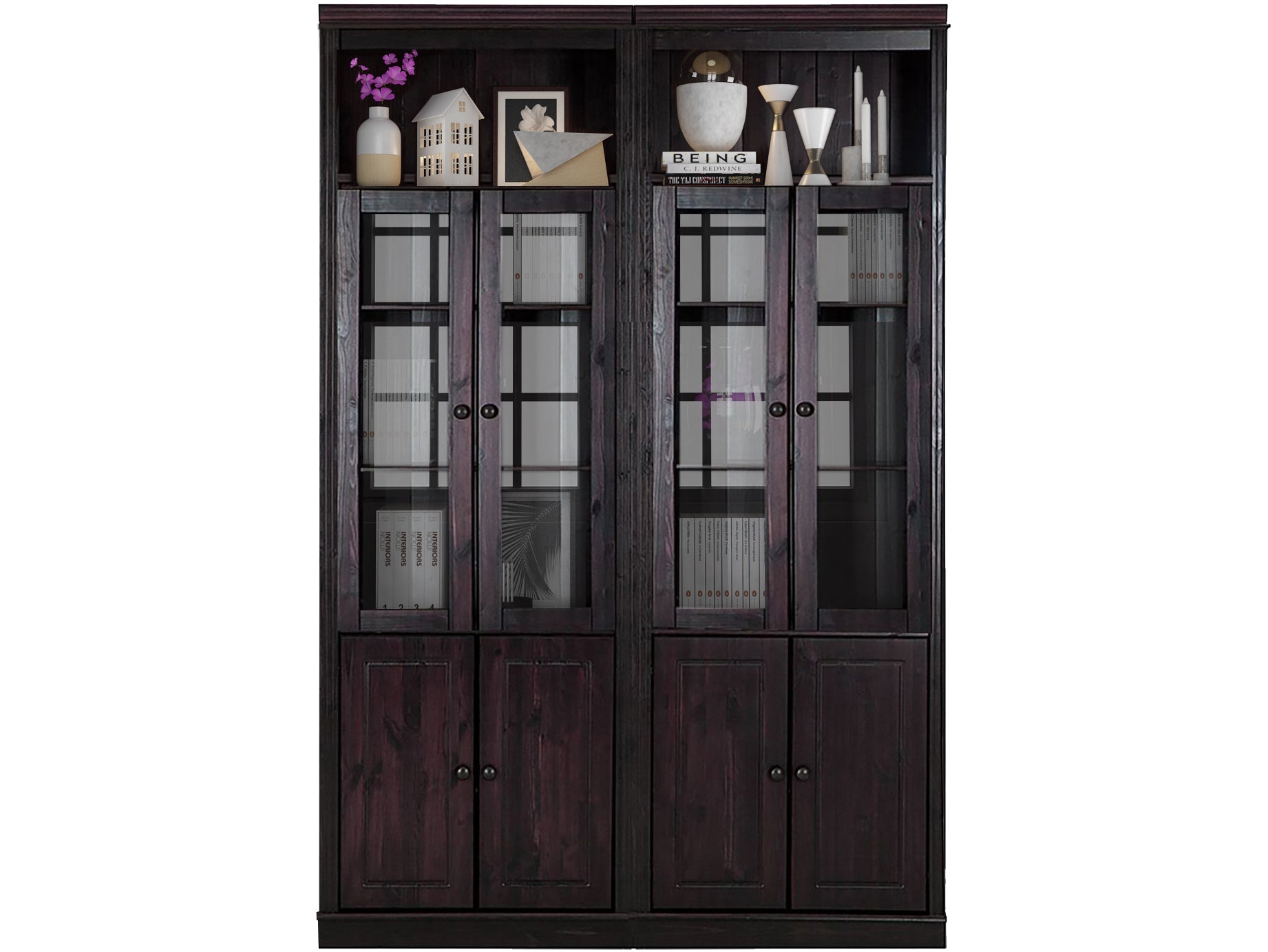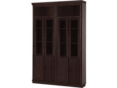 Vægsættet med 2 reoler er en stilfuld og funktionel tilføjelse til ethvert hjem eller kontor. Hver reol har både glas- og trælåger, hvilket giver en alsidig opbevaringsløsning.