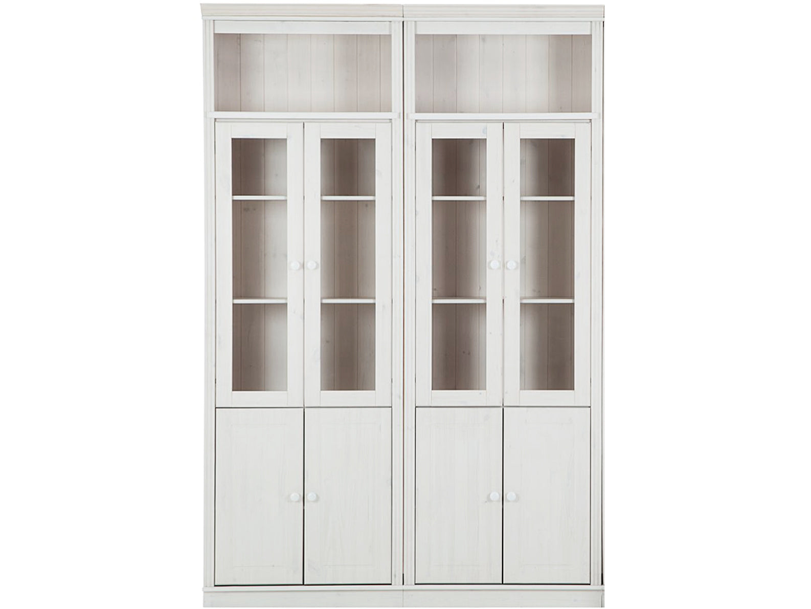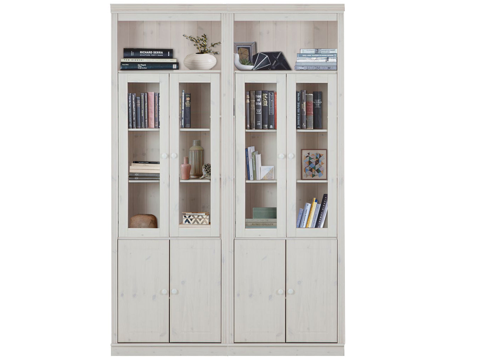 Vægsættet med 2 reoler er en stilfuld og funktionel tilføjelse til ethvert hjem eller kontor. Hver reol har både glas- og trælåger, hvilket giver en alsidig opbevaringsløsning.