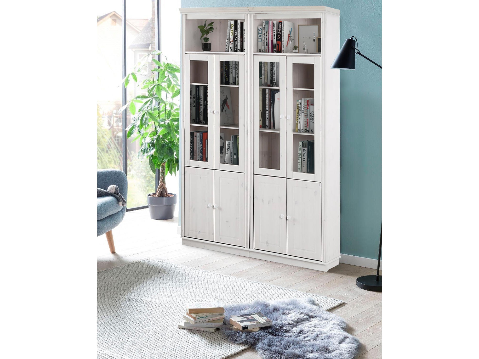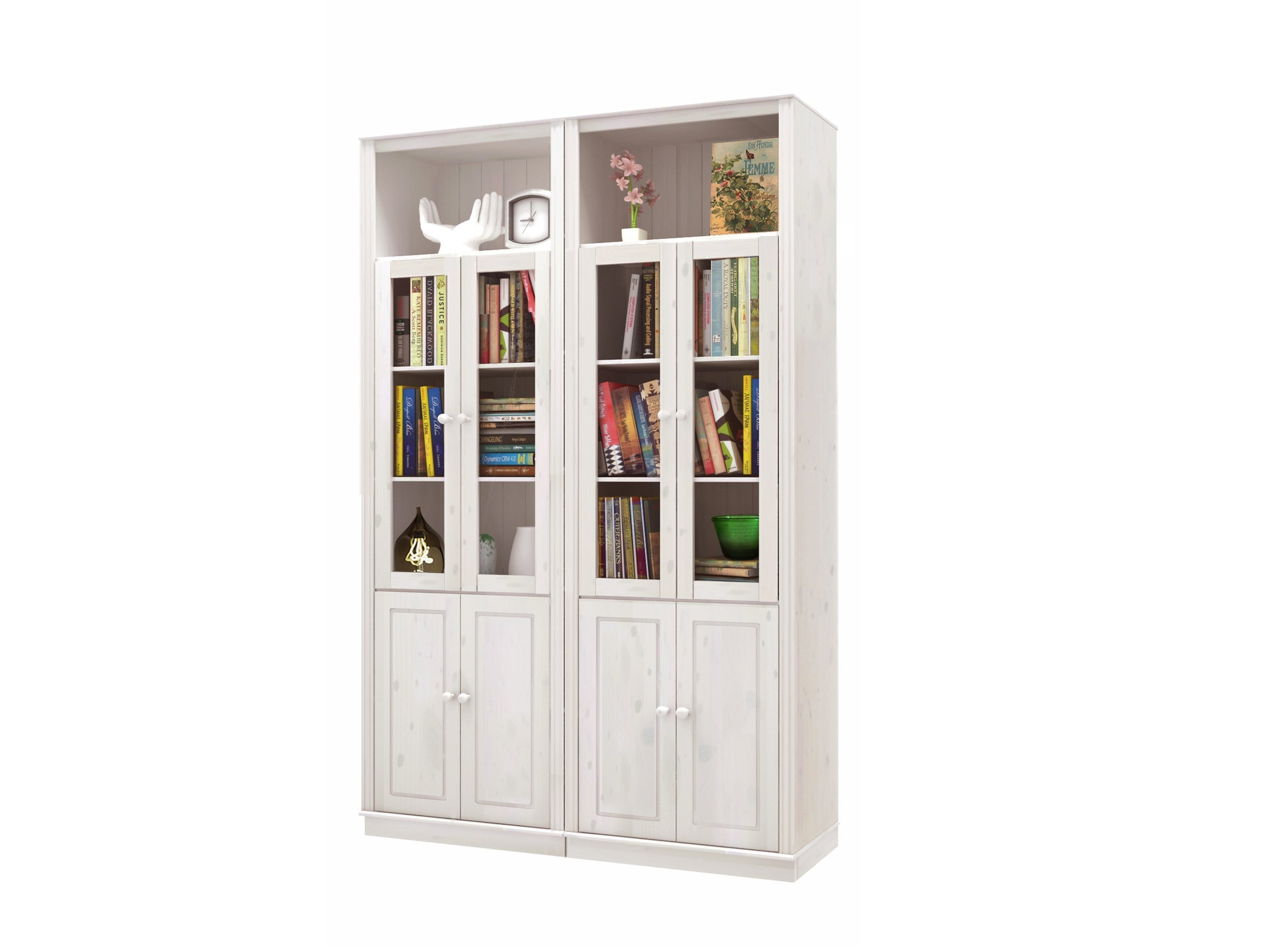 Reol med opbevaring i hvidlakeret fyrretræ