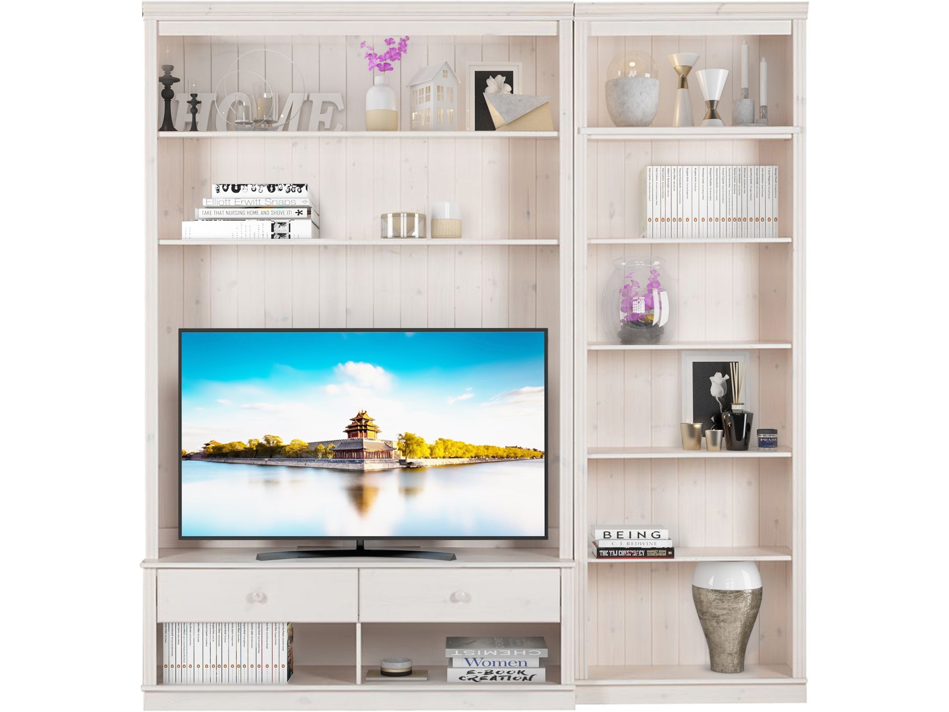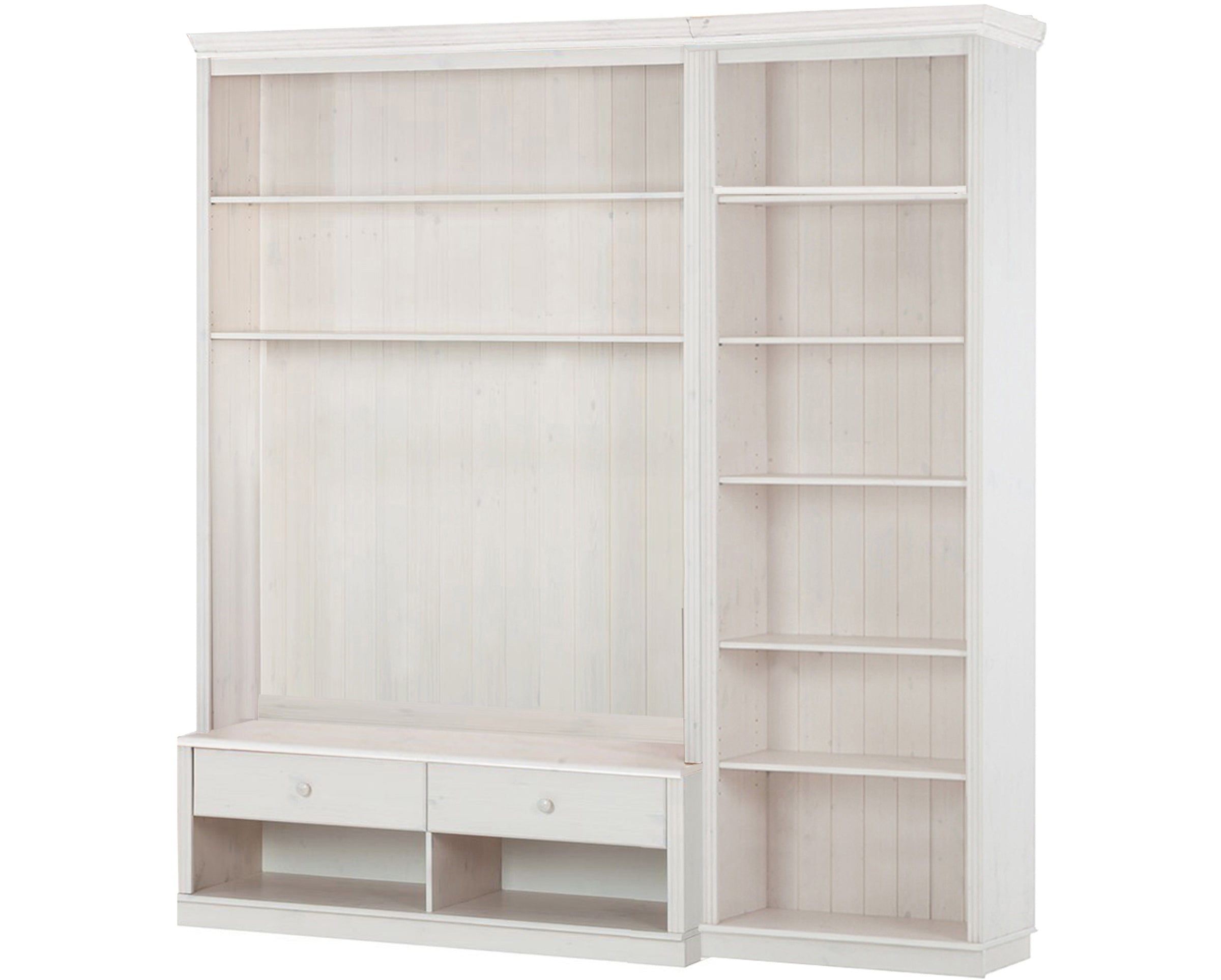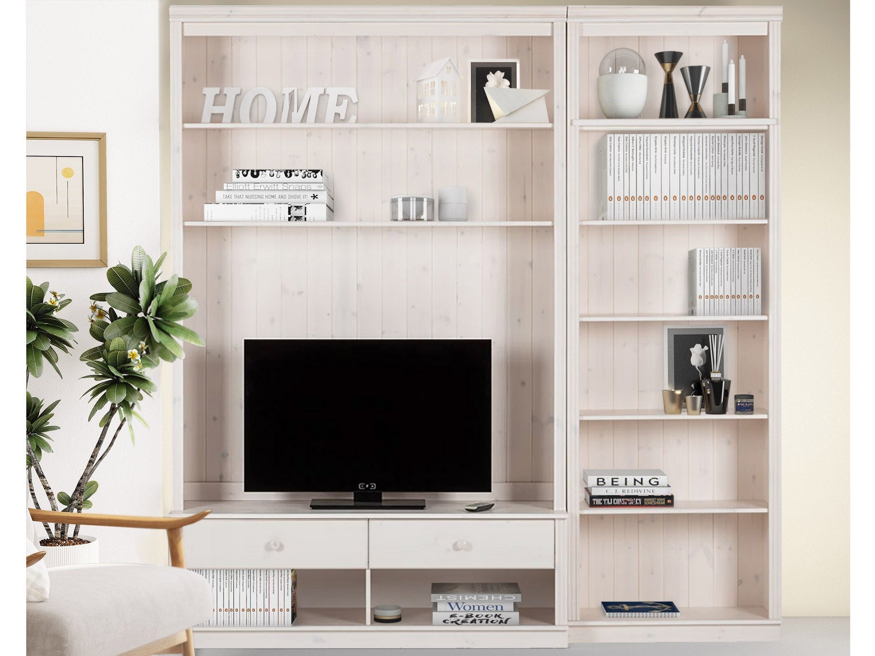Reol med TV Lowboard i hvidlakeret fyrretræ