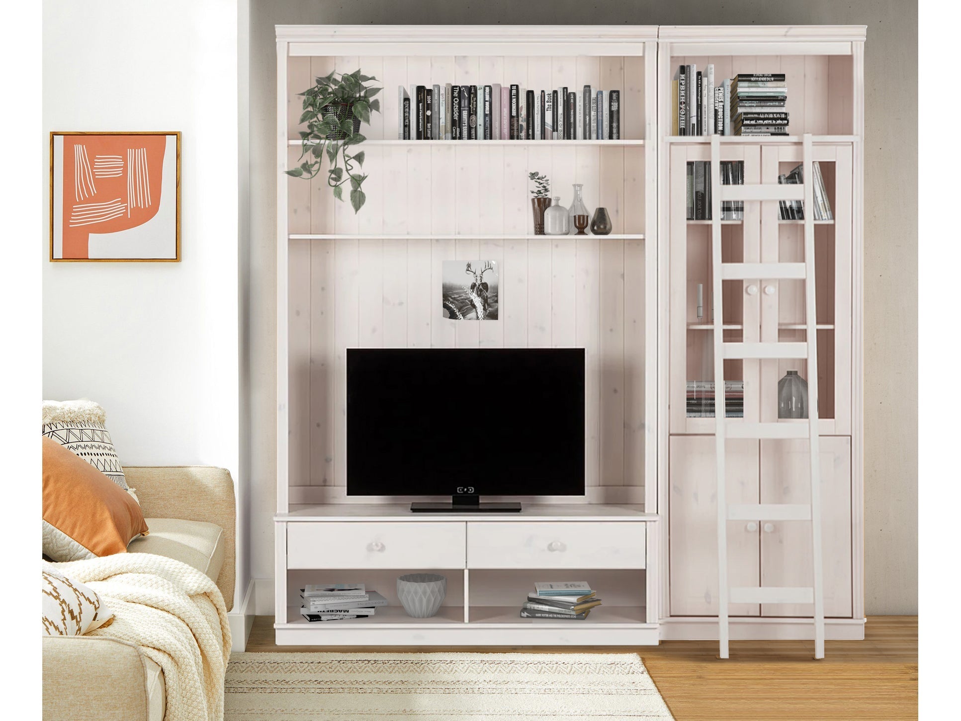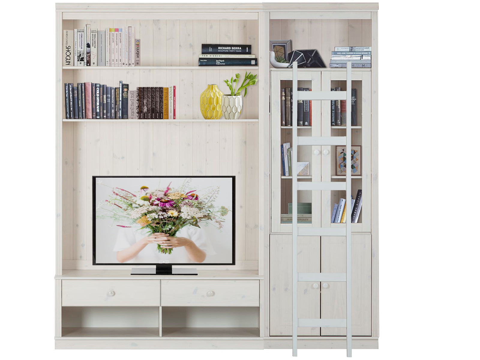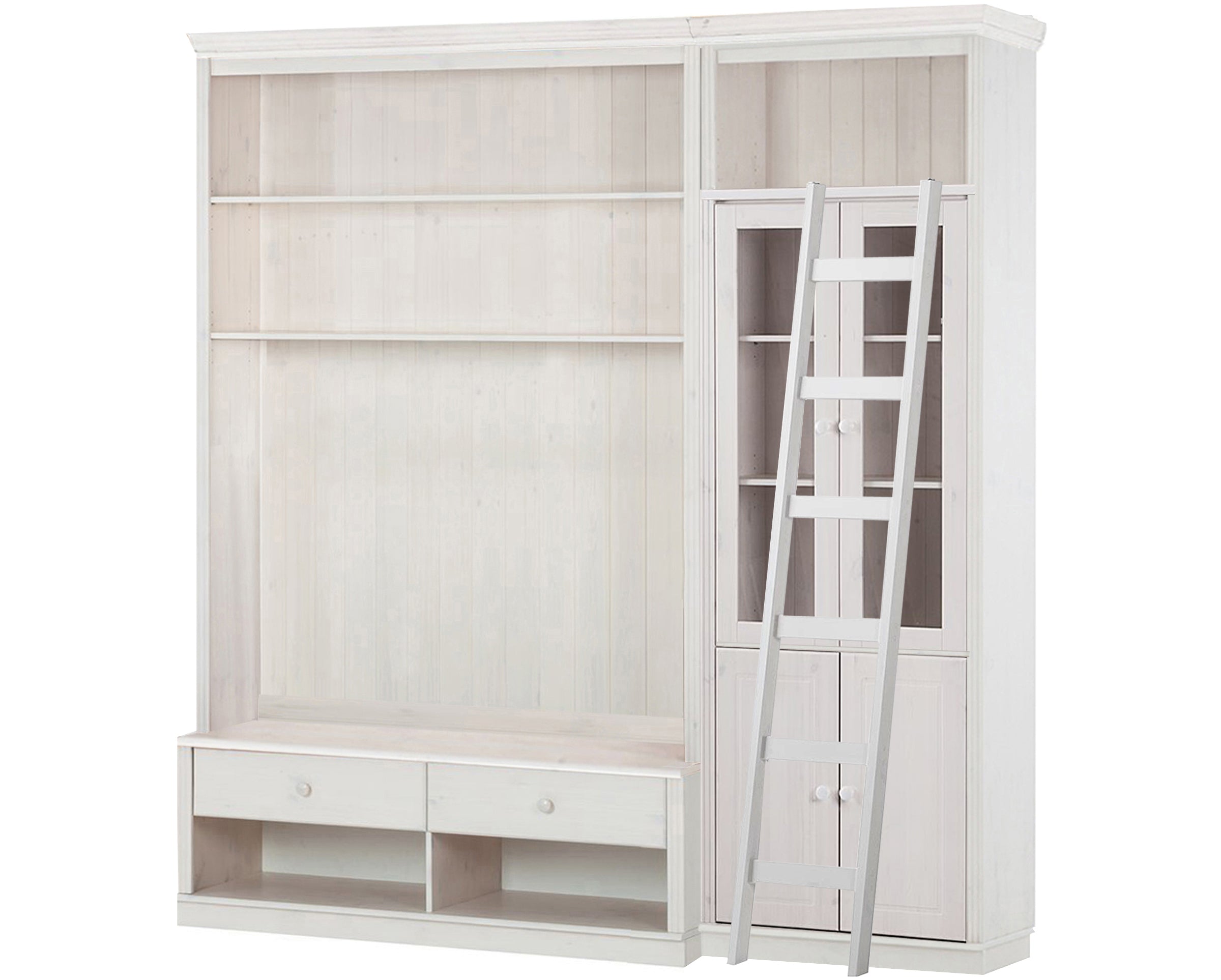 Reol med TV Lowboard stige i Hvidlakeret Fyr