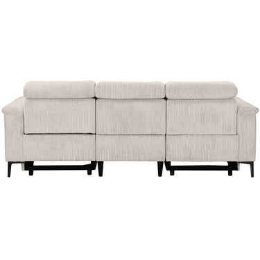 Denne tresædede sofa kombinerer komfort og moderne teknologi. Den er lavet af blødt fløjlsstof, der giver det et hyggeligt og stilfuldt look. Sofaen har to elektriske hvilestole en på hver side for ubesværet afslapning. Hvilestolene justeres jævnt uden trin, og ryglænet og fodsektionen bevæger sig sammen for maksimal komfort. Den justerbare nakkestøtte tilbyder fem forskellige positioner til at støtte dit hoved og nakke. Sofaen er stærk og stabil med fire robuste metalben i grå og tolv sorte støtteben for ekstra forstærkning. Den kan holde op til 450 kg, og hvert sæde kan bære 150 kg. Denne sofa er et godt valg til ethvert hjem.