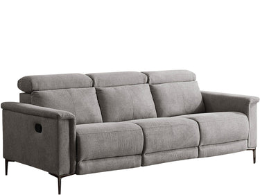 Denne tresædede sofa er lavet af blødt Belfast-stof og tilbyder både stil og komfort. Manuelle hvilestole på venstre og højre side justeres jævnt uden trin, hvilket tillader ubesværet afslapning. Ryg- og fodsektionerne bevæger sig sammen med ryglænet, der kun kan justeres i hvilestole. Den justerbare nakkestøtte giver fem positioner for ekstra nakke- og hovedstøtte. Stærke metalben og tolv støtteben sikrer stabilitet og holdbarhed. Hvert sæde kan rumme op til 150 kg med en samlet vægtkapacitet på 450 kg. Et praktisk og elegant valg til ethvert opholdsrum designet til afslapning og bekvemmelighed.
