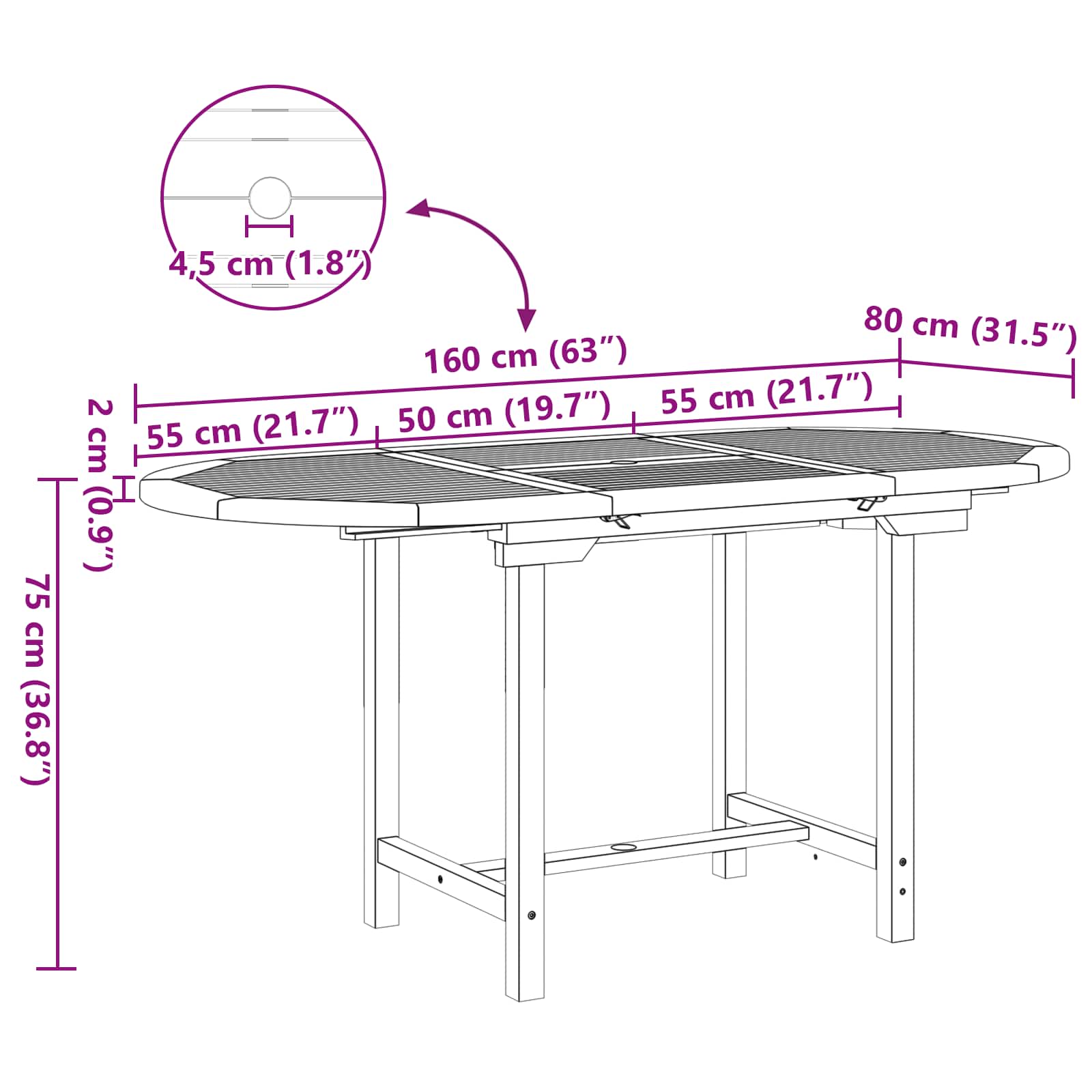 - Samlede dimensioner: 160 x 80 x 75 cm (L x B x H)