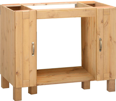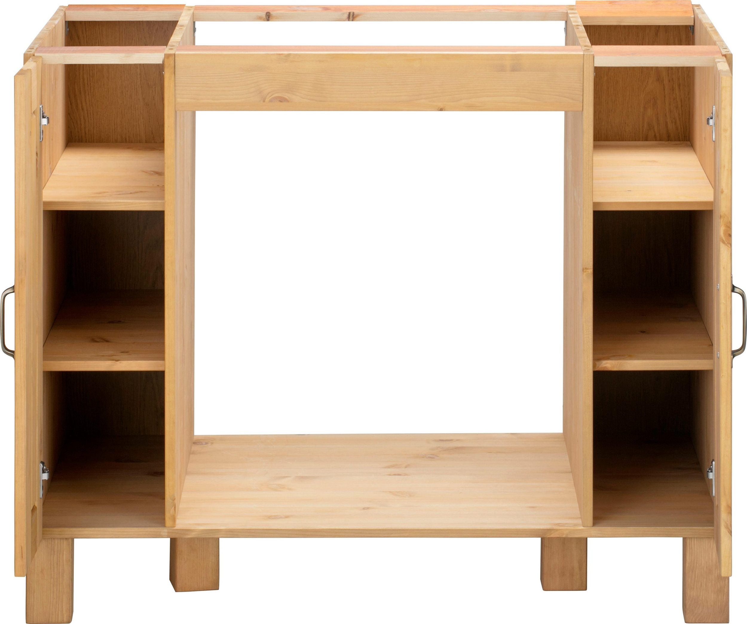 En nyttig opbevaringsløsning i et trendy design komfurskabet lavet af massivt træ. Den imponerer med det typiske landlige look, som er tidløst og derfor passer ind i næsten ethvert køkkenkoncept. Samtidig kan skabet nemt kombineres med andre farver og møbler, hvilket gør det visuelt variabelt. I midten er der plads til at rumme ovnen, og de ydre rum giver igen ekstra opbevaringsplads. Bagepapir aluminiumsfolie eller bestik er altid klar til hånden. Sikrer et pænt og ryddeligt indtryk i køkkendelen komfurskabet lavet af massivt træ. Fås i flere farvemuligheder.