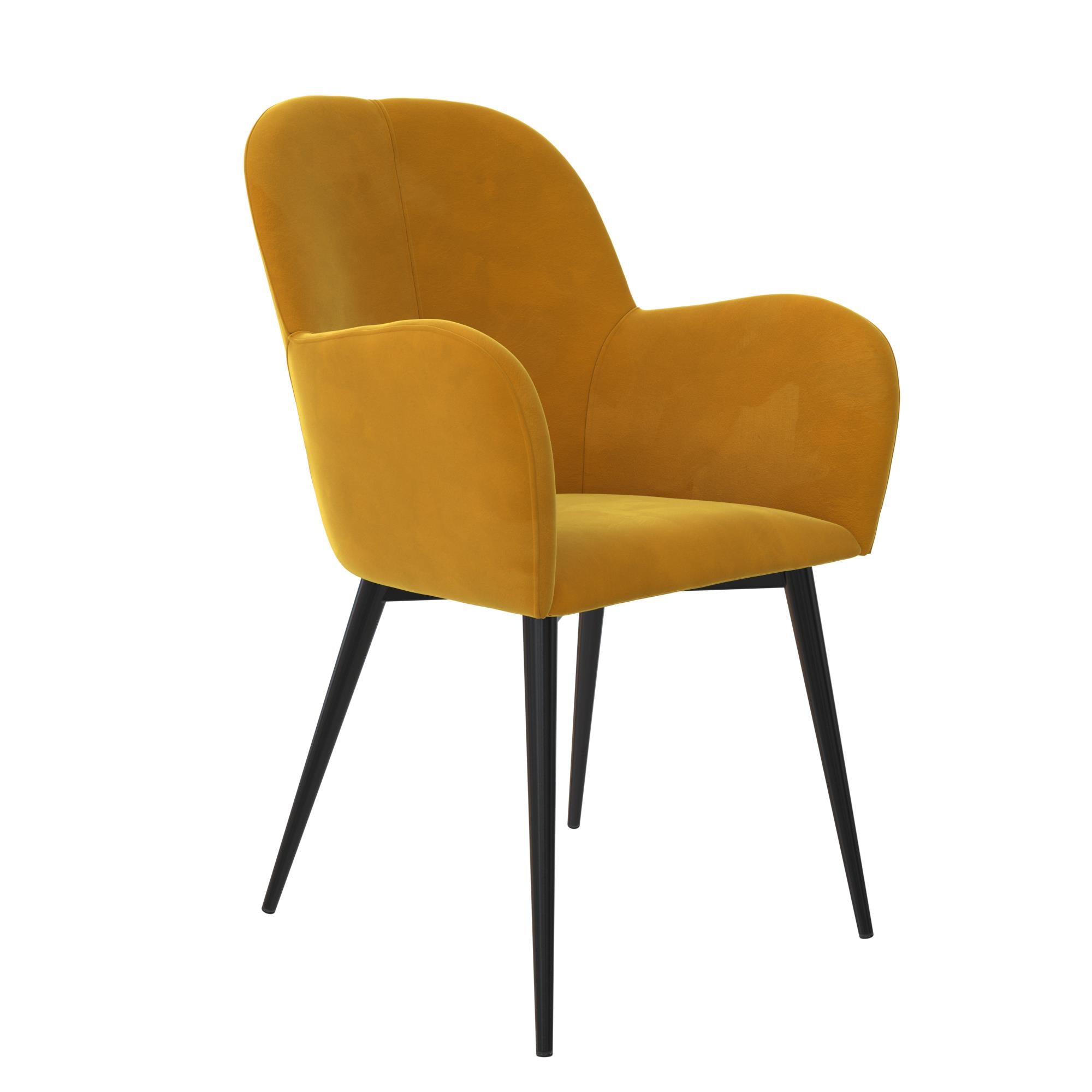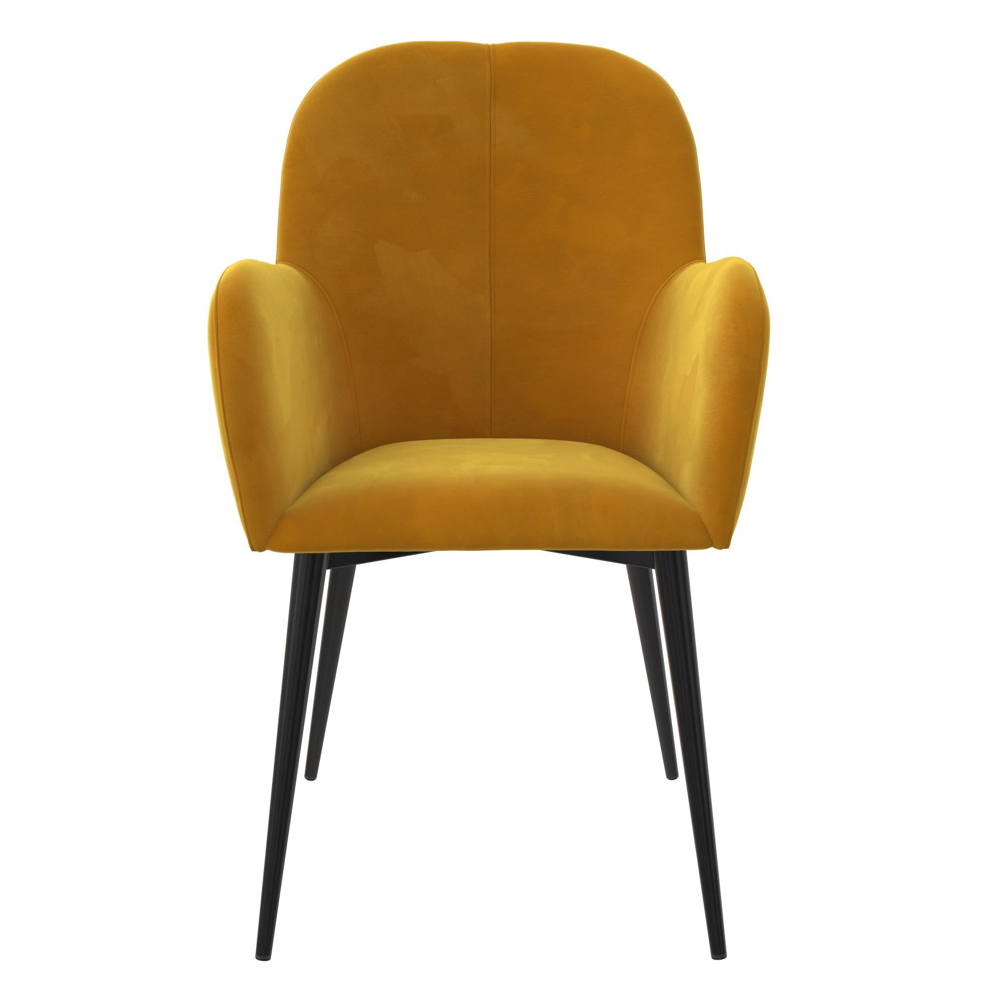 Fallon Accent Chair. Det er den perfekte vintagefarve, som du har brug for til at lyse op i din indretning og dit liv. Fallon er designet med et sæde og ryglæn, der er skumpolstret for at give dig og dine lejlighedsvise gæster uovertruffen komfort. Denne buede lænestol er betrukket med et frodigt fløjlsstof og er bygget med et slidstærkt metalstel, der sidder på slanke sorte metalben for at tilføje en høj dosis raffinement til din designæstetik.
