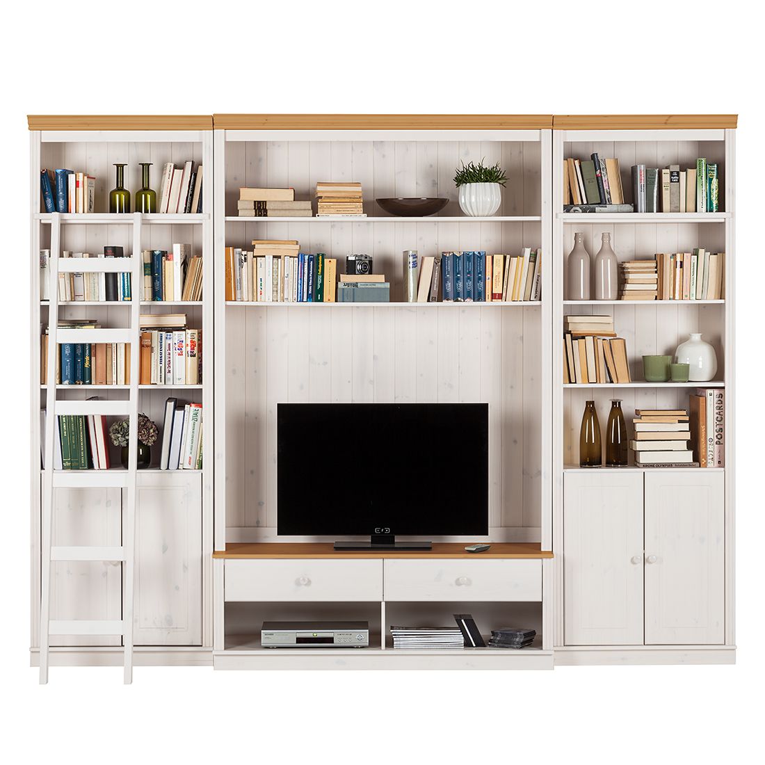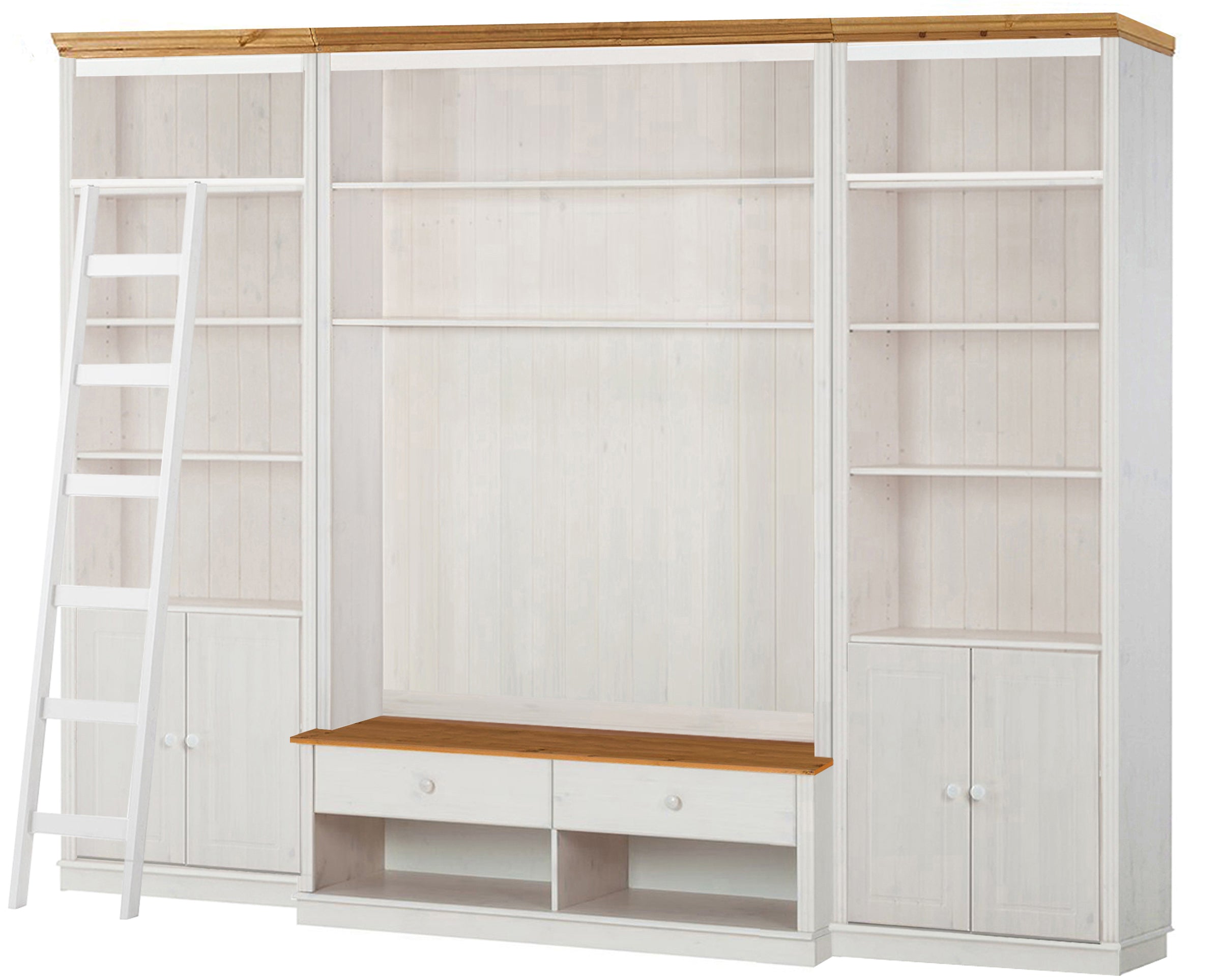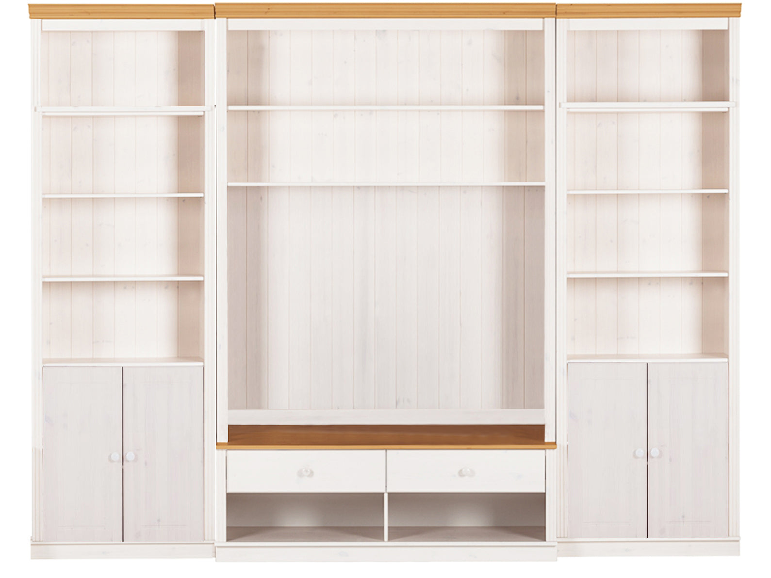 Anita vægsættet med tv-lowboard og hyldebeslag samt to booscases er en stilfuld og funktionel tilføjelse til ethvert opholdsrum. Dette sæt er lavet af massivt fyrretræ af høj kvalitet og giver holdbarhed og lang levetid. TV-lowboardet er designet til at rumme dit fjernsyn med et slankt og moderne design, der vil komplementere enhver indretning. Hyldefastgørelsen giver mulighed for nem installation og tilpasning af layoutet, så det passer til dine specifikke behov. De to booscases med trædøre giver både stil og funktionalitet, som giver dig mulighed for at fremvise dine yndlingsgenstande, mens du holder dem beskyttet. Fås i en række forskellige farver, dette vægsæt er alsidigt og kan nemt integreres i ethvert eksisterende farveskema. Uanset om du ønsker at skabe et hyggeligt medierum eller et slankt og moderne opholdsrum, er Anita vægsættet det perfekte valg.