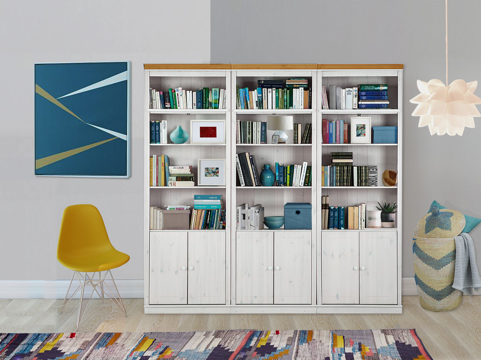 Samlet set er Anita vægsættet med 3 reoler en praktisk og attraktiv opbevaringsløsning, der vil forbedre udseendet og funktionaliteten af ethvert rum. Med sin kombination af trædøre i massiv fyrretræ-konstruktion og et udvalg af farvemuligheder er det det perfekte valg for enhver, der leder efter en opbevaringsløsning af høj kvalitet, der kan skræddersyes til deres specifikke behov.