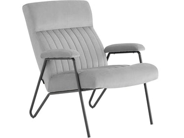 Denne grå fløjlslænestol er både stilfuld og komfortabel. Med sit elegante design og bløde polstring passer den perfekt ind i enhver indretning. En ideel tilføjelse til din stue.