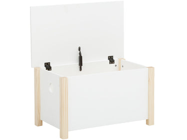 Den rummelige kiste er den ideelle tilføjelse til ungdoms- eller babyværelset. Det giver dig et tidløst moderne design, der passer godt til mange interiører. Takket være det tofarvede design i trendy Scandi-stil smelter det harmonisk ind. Samtidig giver opbevaringsmøblerne dig masser af opbevaringsplads til årstidens tøj eller legetøj. Opbevaringsboksen er udstyret med et hængslet låg, der holdes åbent af et beslag. Perforerede håndtag er indlejret på siden, så du nemt kan flytte rundt på de enkelte møbler. Det høje kvalitetsudførelse og de letplejende overflader er yderligere højdepunkter.