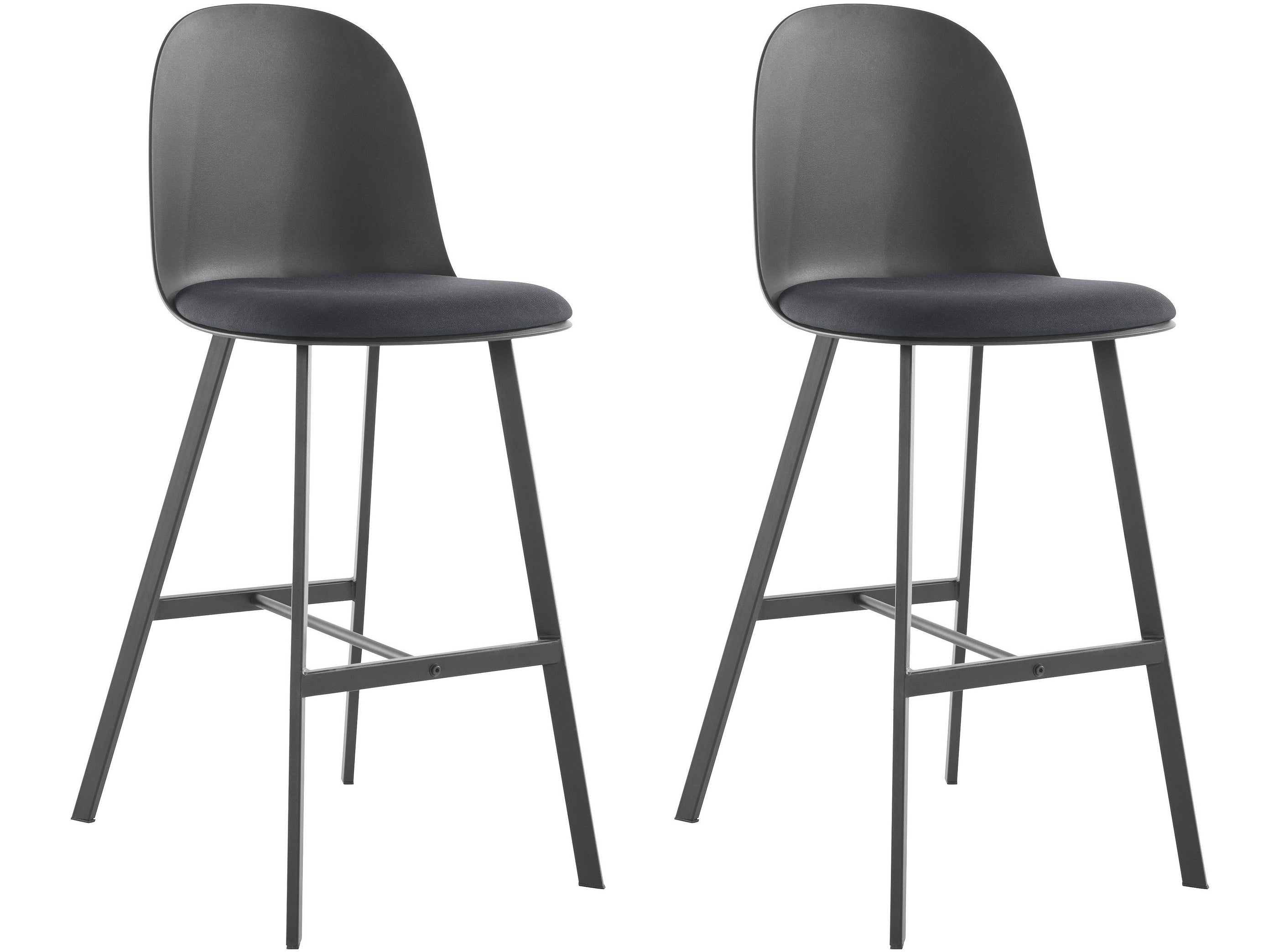 Barstole Sæt med 2 stk i PU og plastgrå med ben i metal sort
