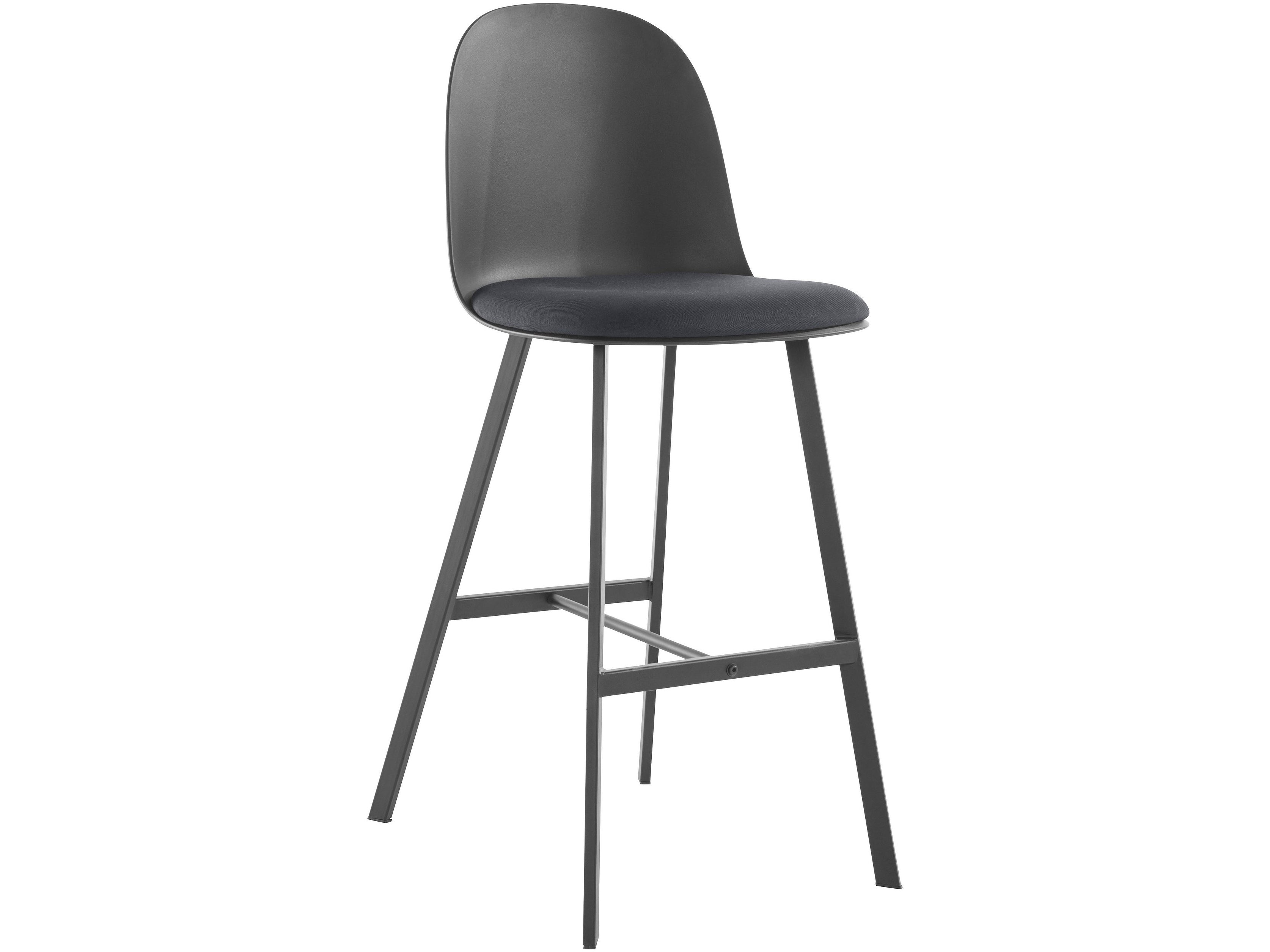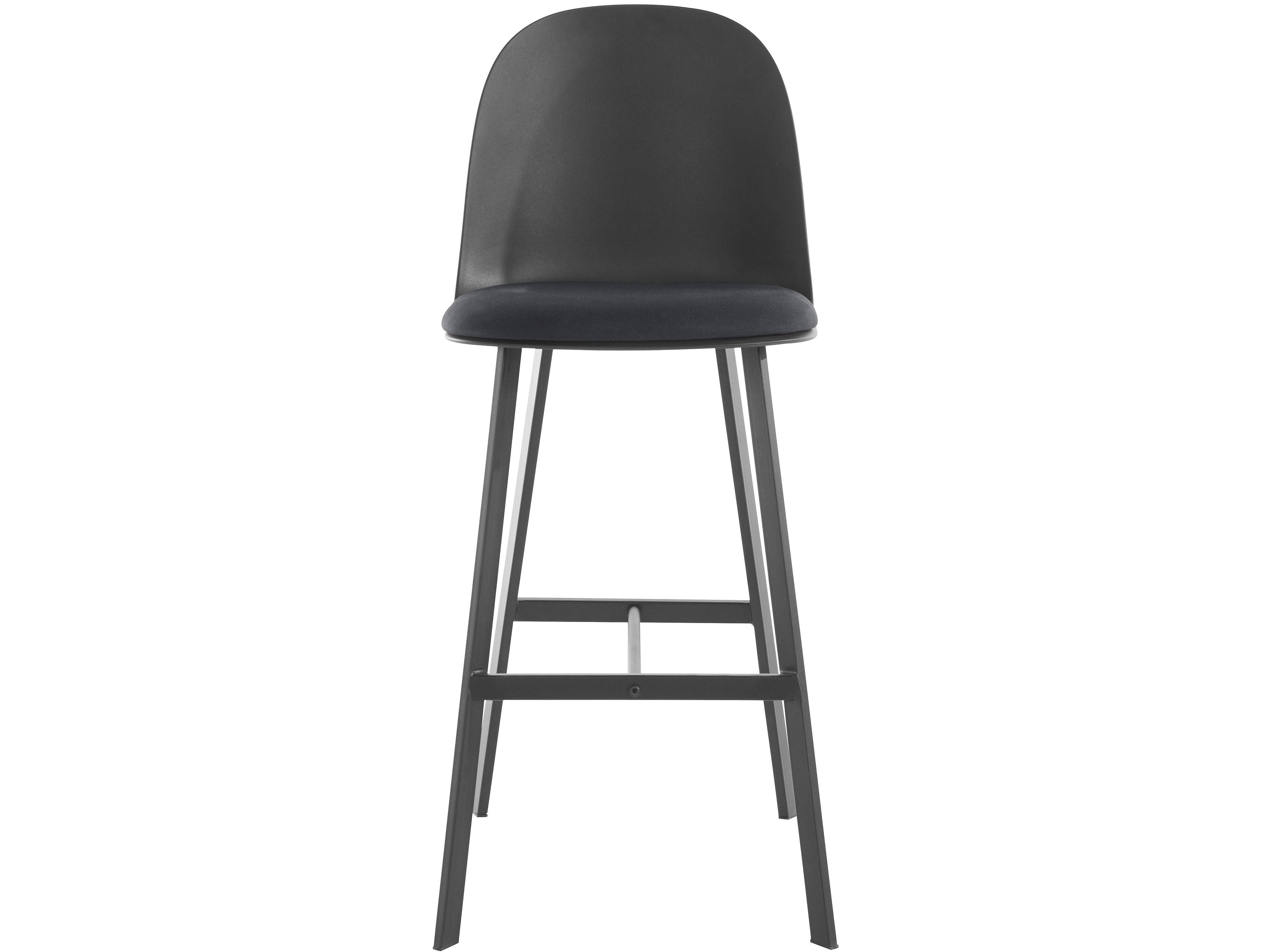 Barstolen i sæt af 2 er blevet polstret med hynde for et rustikt moderne look. De sorte metalben giver høj stabilitet. Du vil elske den omhyggeligt designede kurve af sædet, der er så behageligt. Moderne høje taburetter perfekt til afslappet eller formel siddeplads på en køkkenø eller stue. Denne professionelle barstol er en ægte stilforstærker med minimalistisk elegance.