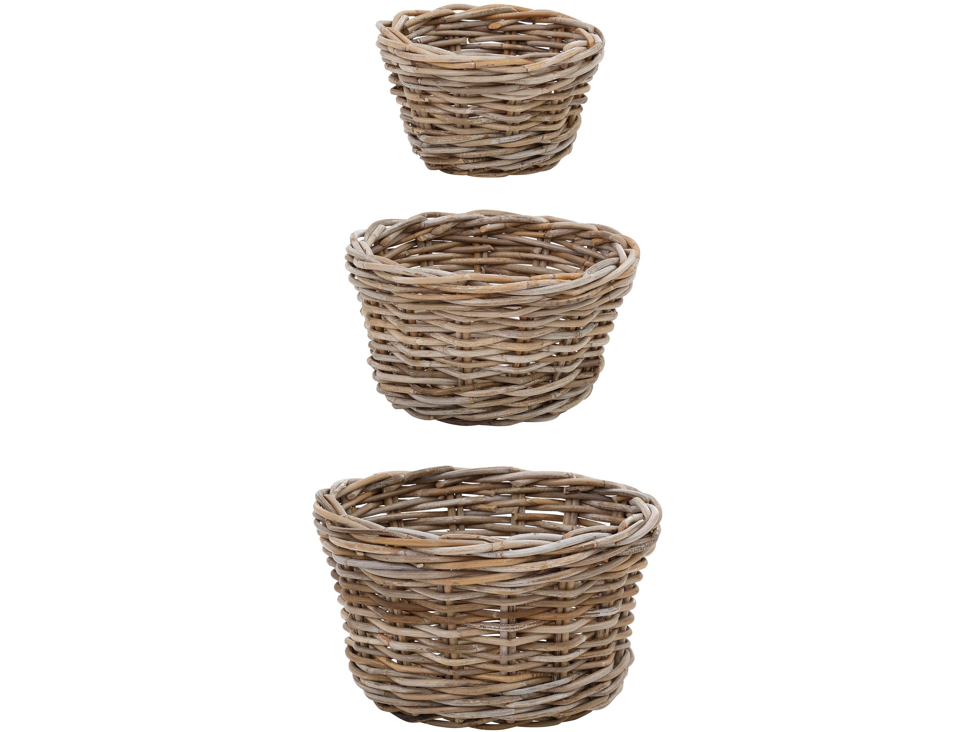 Disse sæt med 3 kurve er lavet af højkvalitets rattan i en rustik landlig stil. Den naturlige tekstur og farve af rattan giver disse kurve en varm og indbydende følelse.