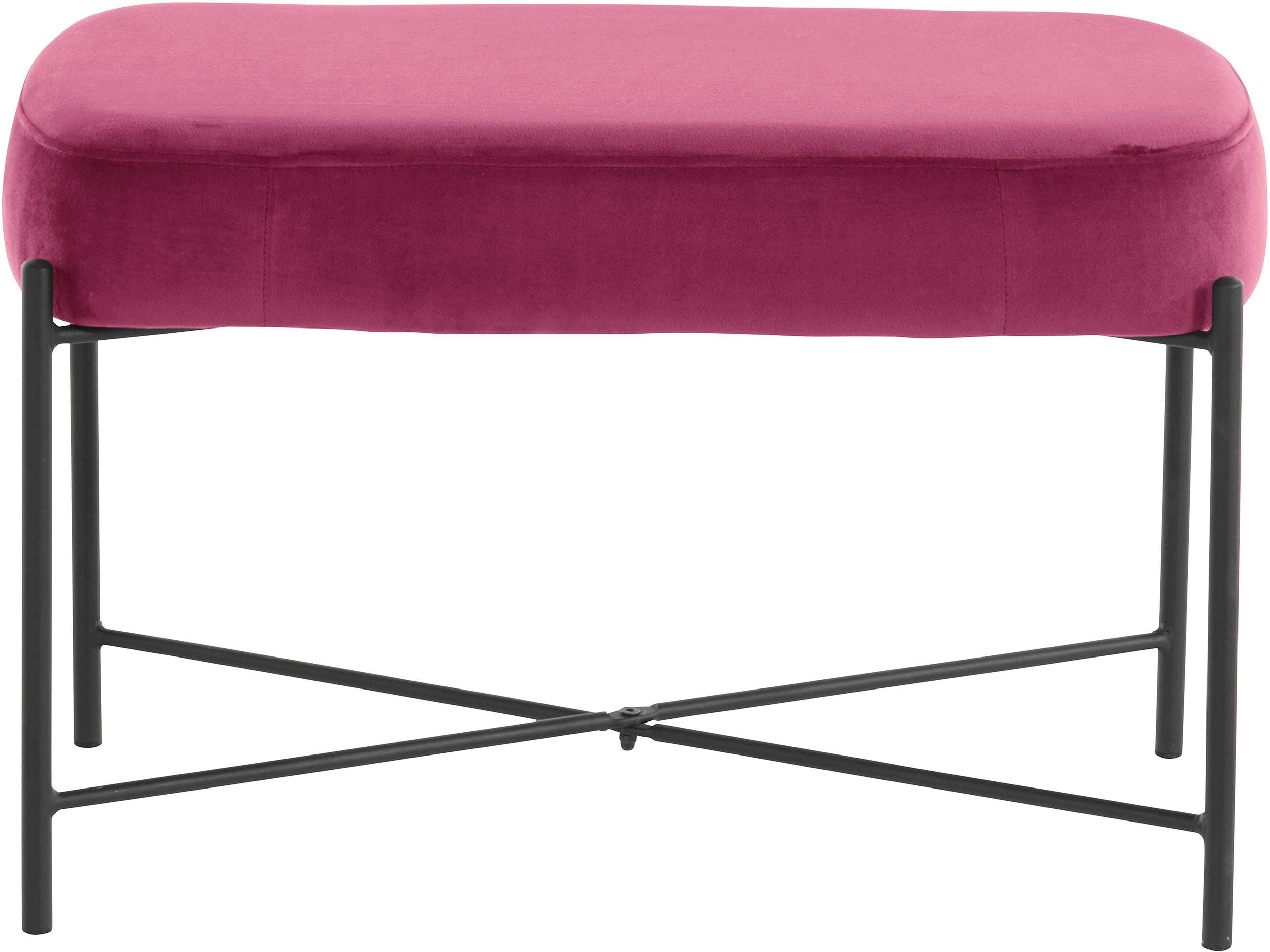 En stilfuld skammel med et fløjlsagtigt velourbetræk passer til forskellige boligkoncepter. Det bringer det elegante komfortable og alsidige design til dit værelse. Udseendet er kendetegnet ved den sofistikerede blanding af materialer, der bruges her. Sædet som er udstyret med det ædle velourbetræk i fløjl hviler på den sorte filigran metalramme. Den fungerer som siddeplads i hele opholdsrummet eller som sidebord ved siden af sengen.