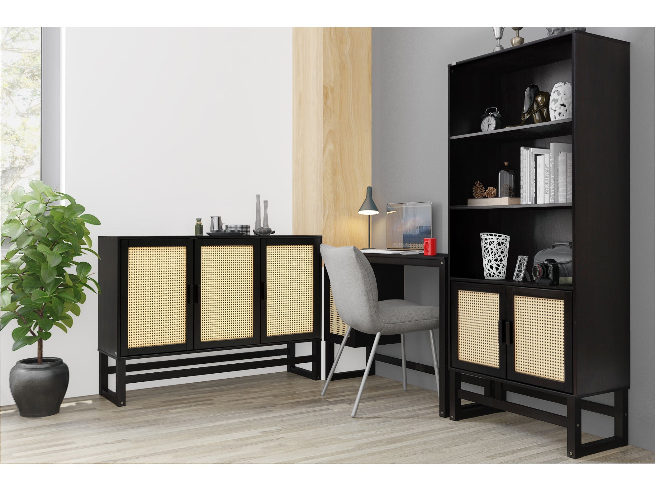 Bring en charme til dit arbejdsområde med denne bogreol på landet. Den er lavet af FSC-certificeret massiv fyrretræ for en let pleje overflade og robust bygning. Åbne hylder og rum bag dørene giver masser af opbevaringsplads. Reolen fuldender sit look med rattandørs harmoniserede farvekombination og stabil struktur. Den kan nemt samles med den medfølgende hardwaretaske. Med tidløst design er denne reol nem at mikse og matche med alle eksisterende indretningsstile i dit værelse.