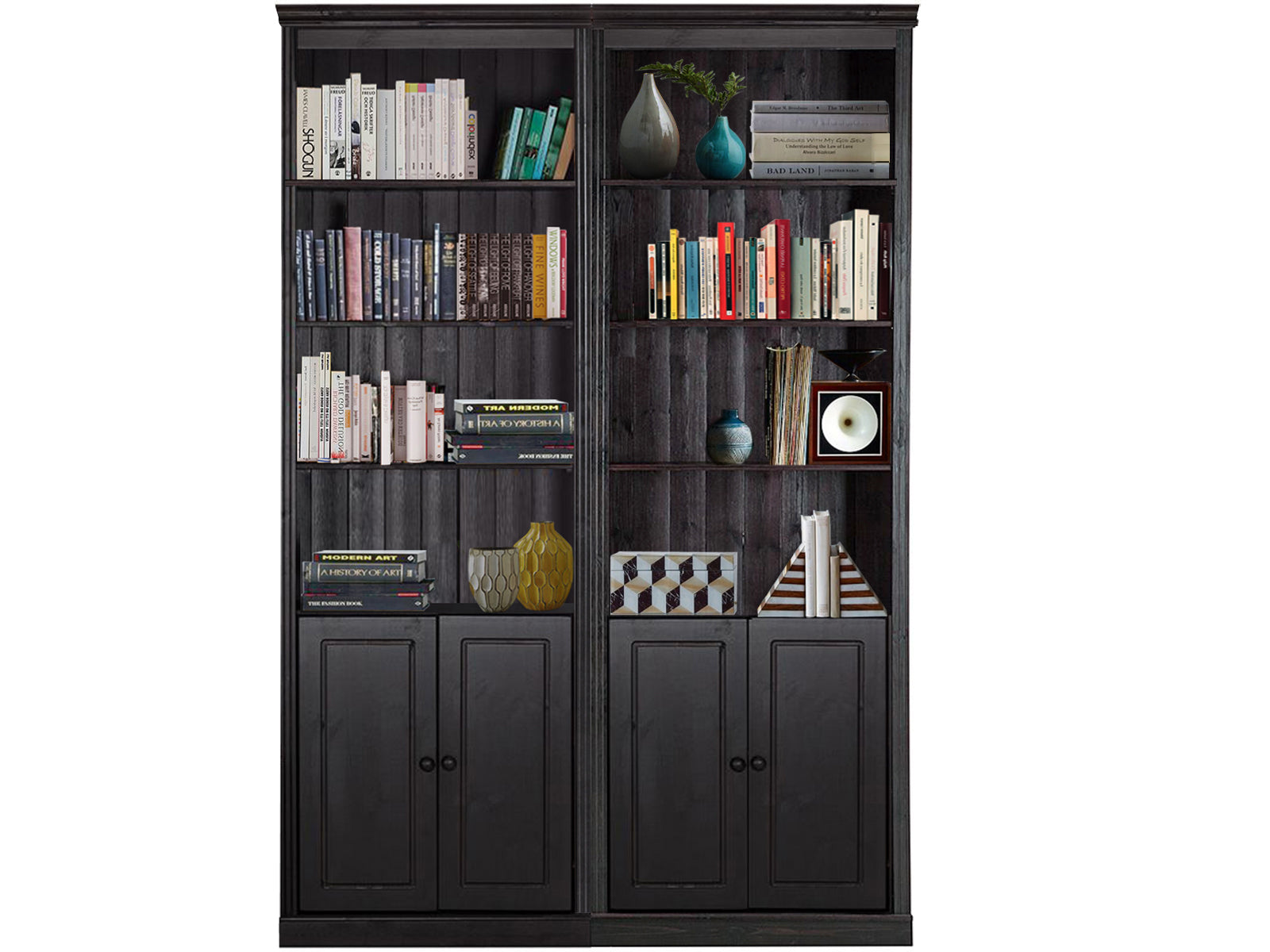 Vægsættet med 2 reoler er en stilfuld og funktionel tilføjelse til ethvert hjem eller kontor. Hver reol har trædøre, der giver en alsidig opbevaringsløsning.
