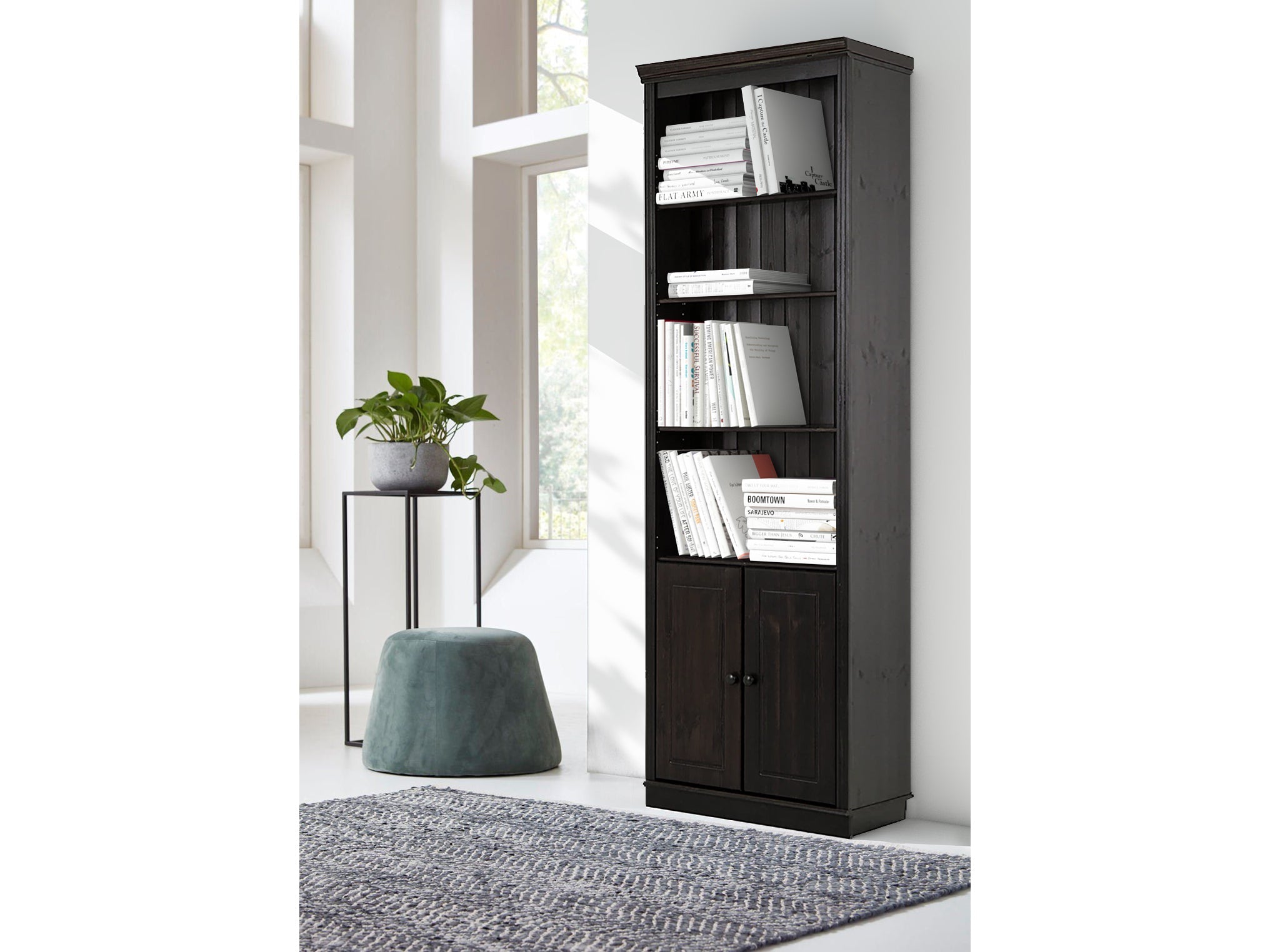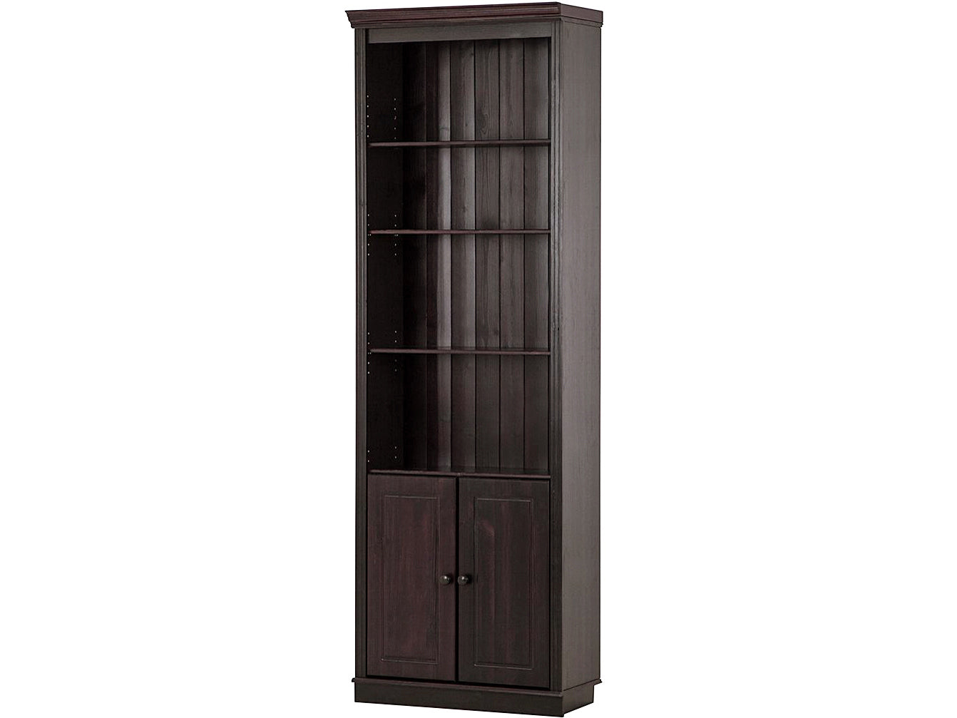 Denne reol har hylder og trælåger. Det er en stilfuld og funktionel tilføjelse til ethvert hjem eller kontor. Reolen har 2 trædøre, der giver en alsidig opbevaringsløsning.
