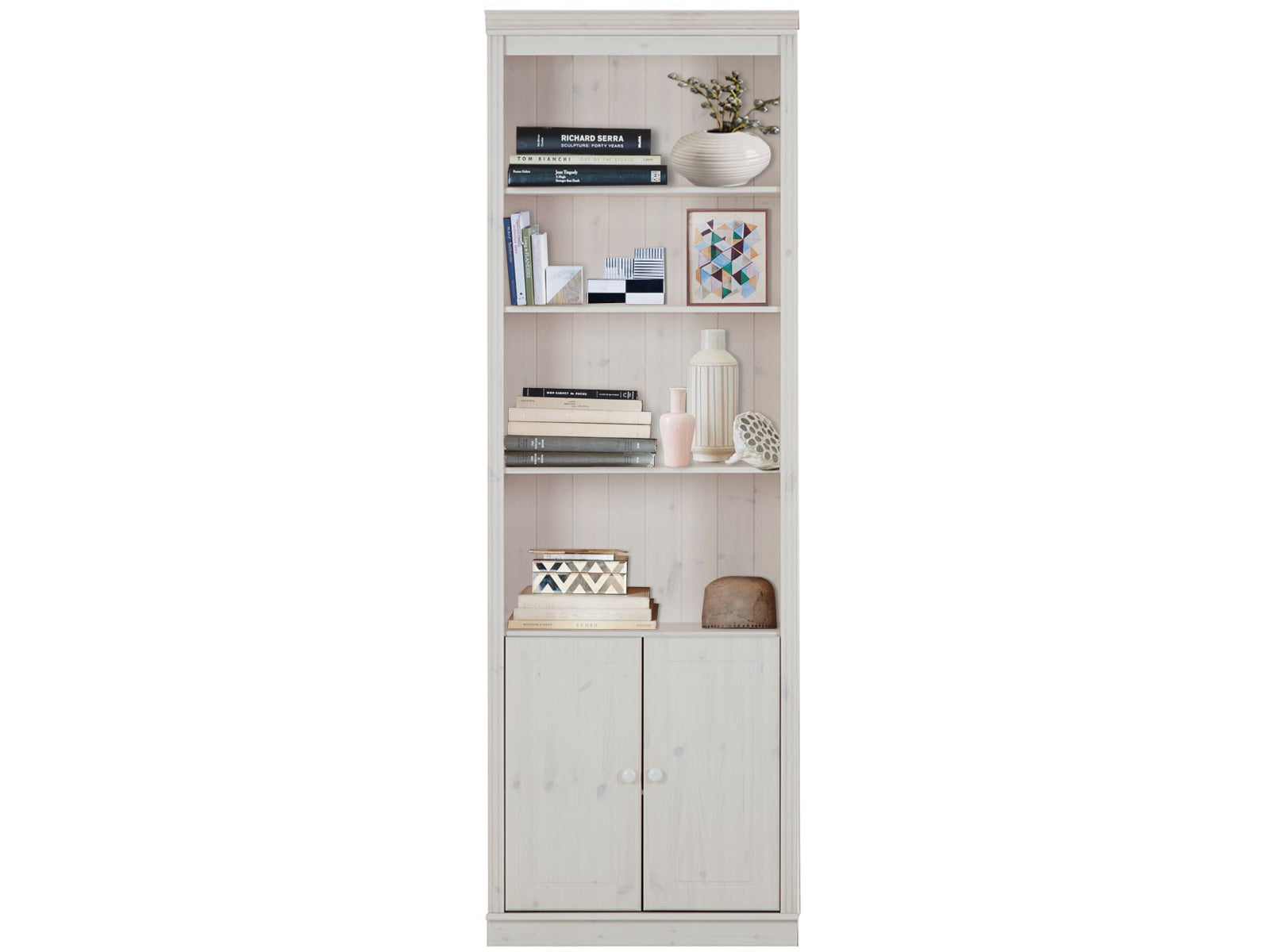 Denne reol har hylder og trælåger. Det er en stilfuld og funktionel tilføjelse til ethvert hjem eller kontor. Reolen har 2 trædøre, der giver en alsidig opbevaringsløsning.