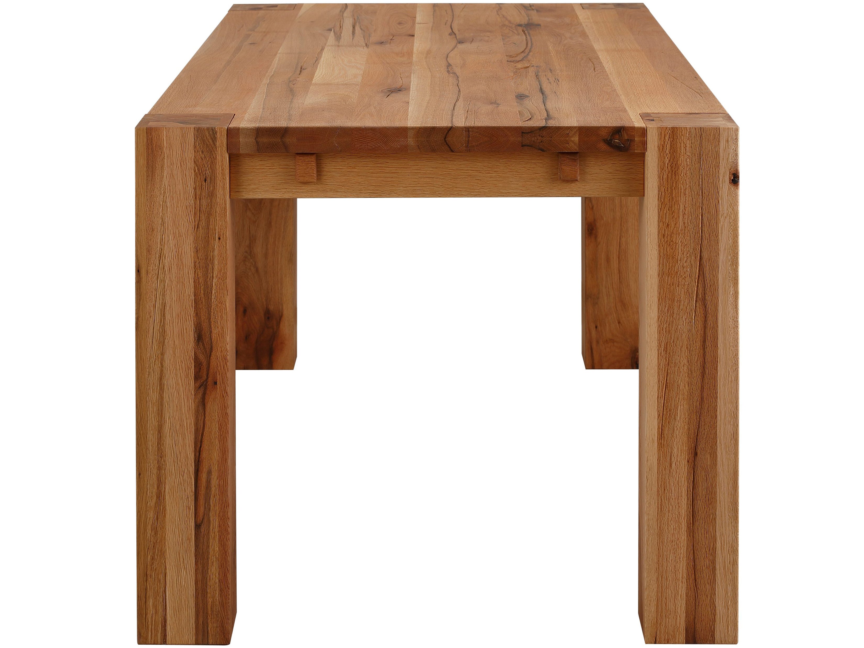Takket være det tidløse smukke look harmonerer den vidunderligt med mange forskellige boligkoncepter. Det naturlige trælook er meget behageligt. Det firkantede bord, som er lavet af massivt FSC®-certificeret træ, imponerer også med sin ekstremt solide bordplade. Praktiske plugin-plader, ved hjælp af hvilke den kan udvides hurtigt og nemt efter behov, kan købes separat. Overfladen er nem at vedligeholde. Med sine brede bordben viser spisebordet sig at være et stabilt møbel, der vil give langvarig glæde i køkkener og spisestuer.