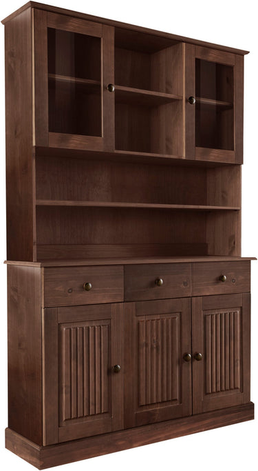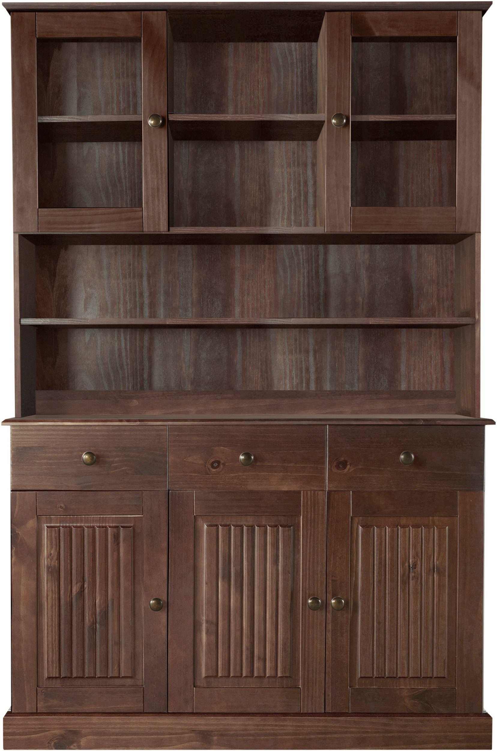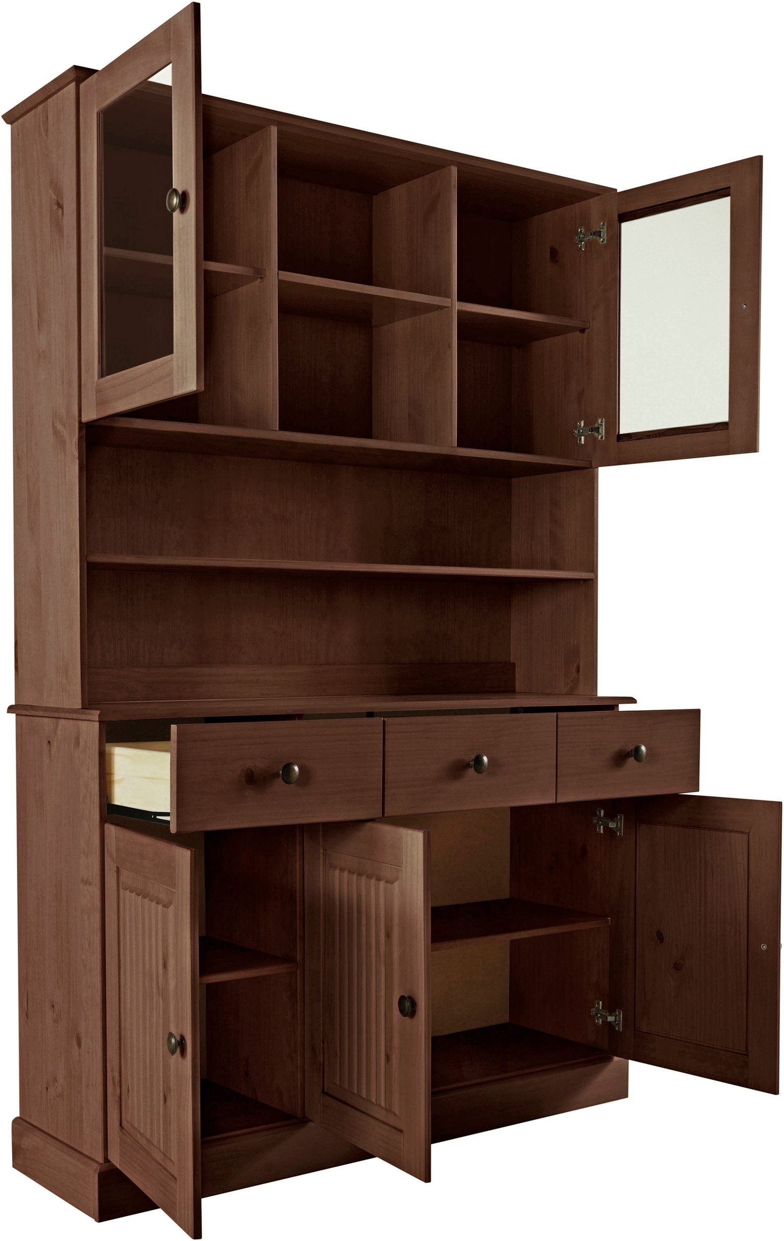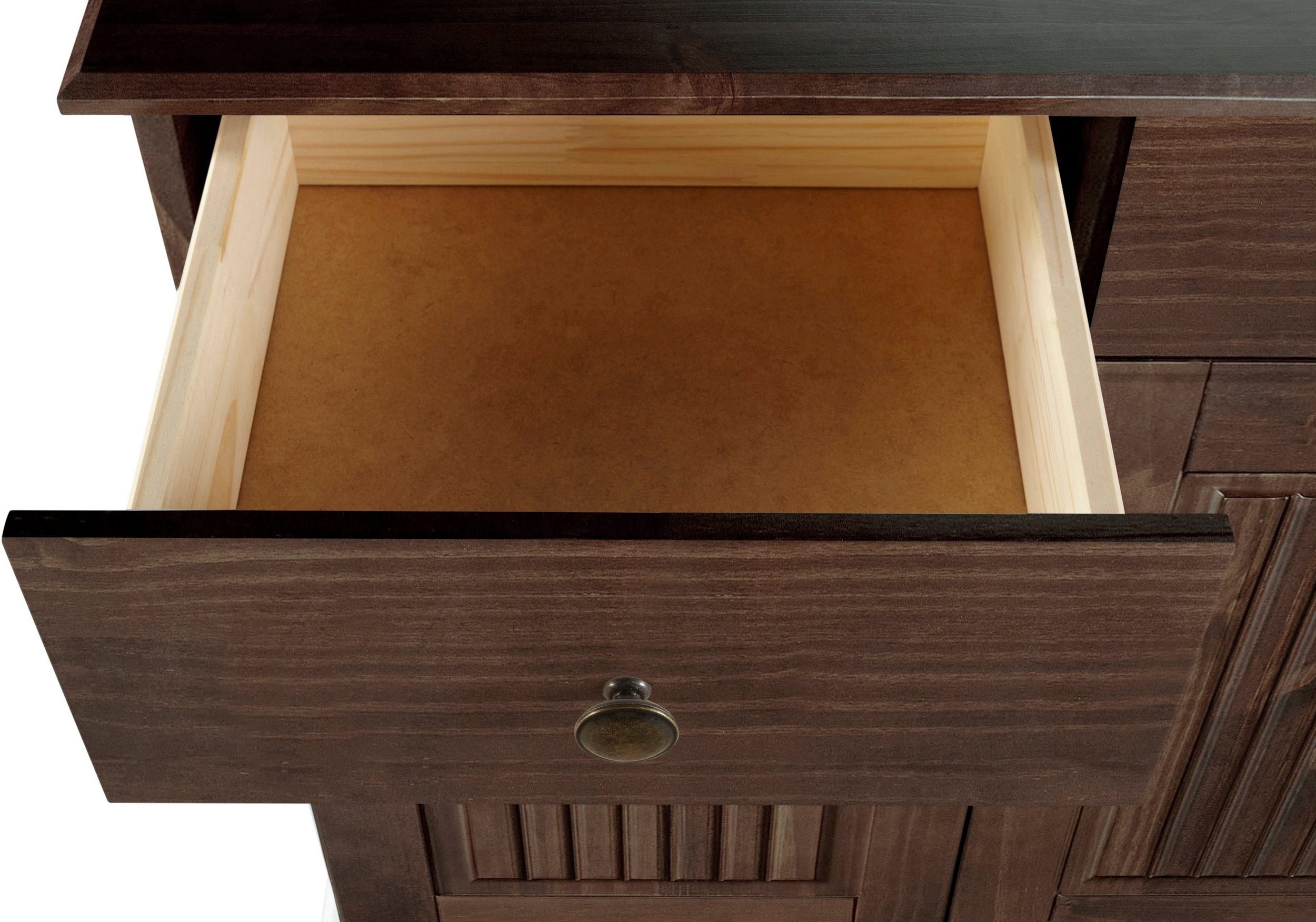Denne elegante buffet er lavet af FSC-certificeret massiv fyrretræ, hvilket sikrer både holdbarhed og bæredygtighed. Den har 2 skuffer visuelt 3, der kan udvides helt, hvilket giver yderligere opbevaringsmuligheder. 6 justerbare hylder gør det muligt at tilpasse højden af hvert rum. Den voksede overflade er for ekstra modstand mod snavs og en let glans. Holdbare metalhåndtag, der fremhæver stilen. Maksimal belastningskapacitet på 70 kg. Denne buffet kombinerer funktionalitet med et stilfuldt design, hvilket gør den til en perfekt tilføjelse til ethvert hjem.