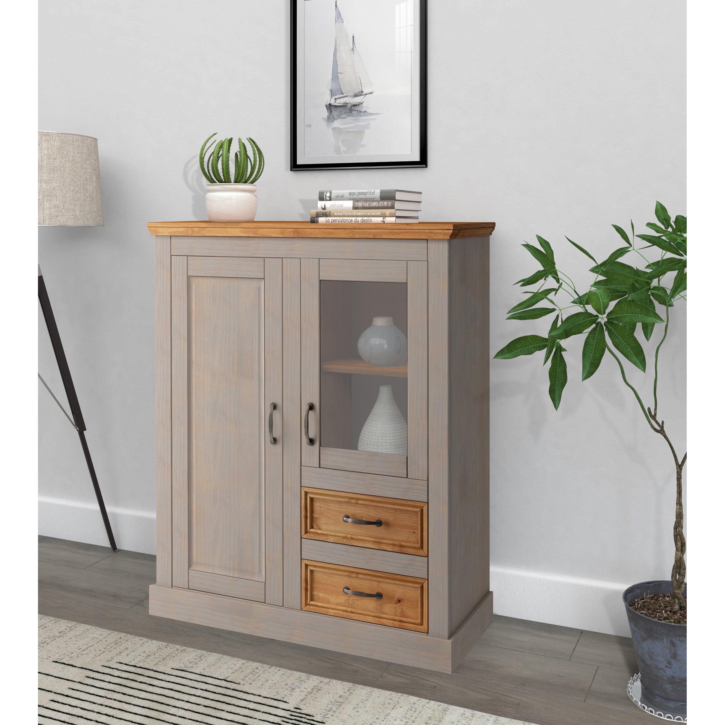 Skab 1 glasdør 1 låge 2 skuffer
