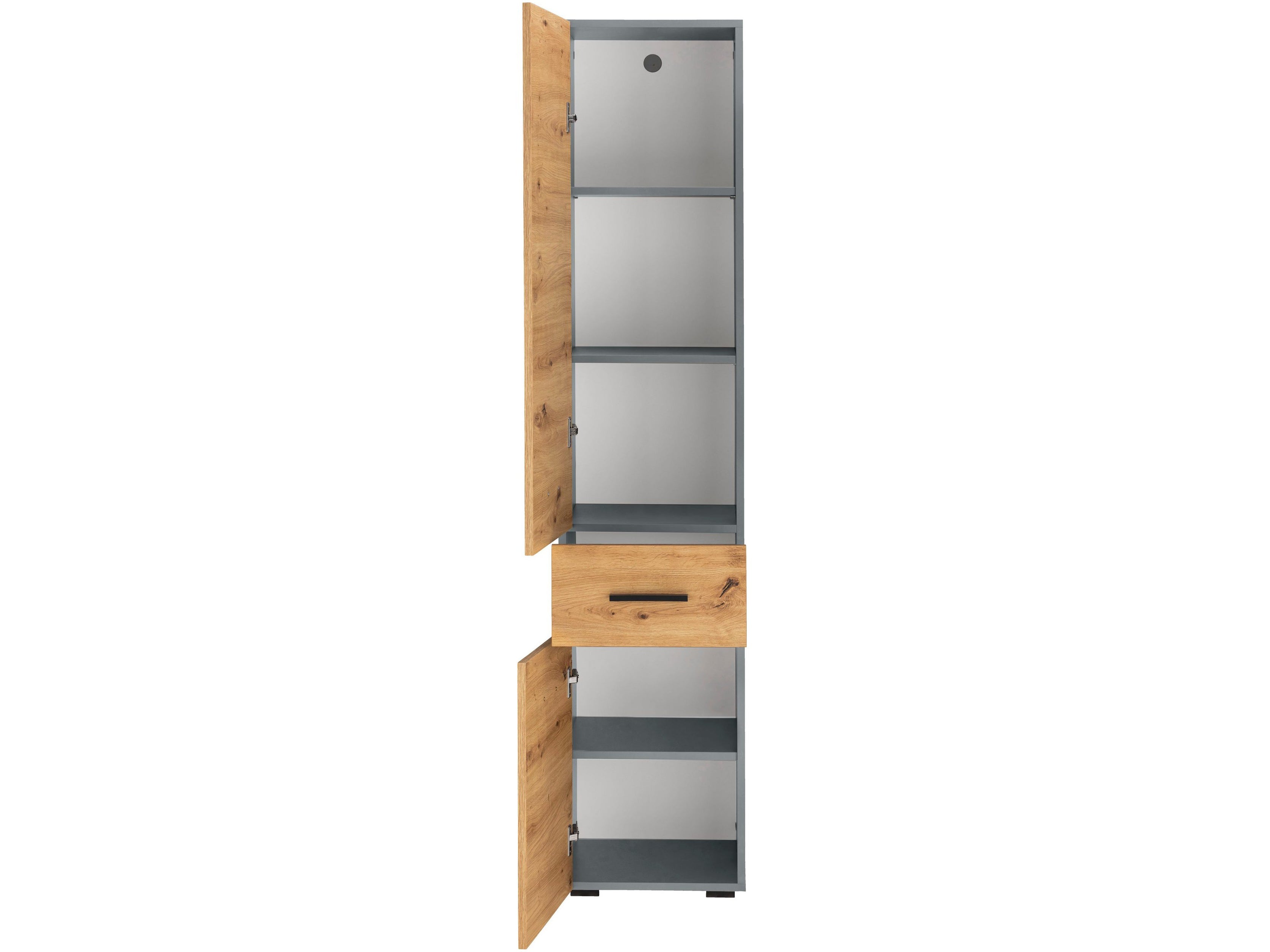 Du kan bruge badeværelsets midiskab med masser af opbevaringsplads på badeværelset i gangen eller i bryggerset. Skabet er lavet af et træmateriale fra en FSC®-certificeret produktion. Takket være de nemme pleje-overflader kan midi-skabet med masser af opbevaringsplads holdes rent ubesværet.