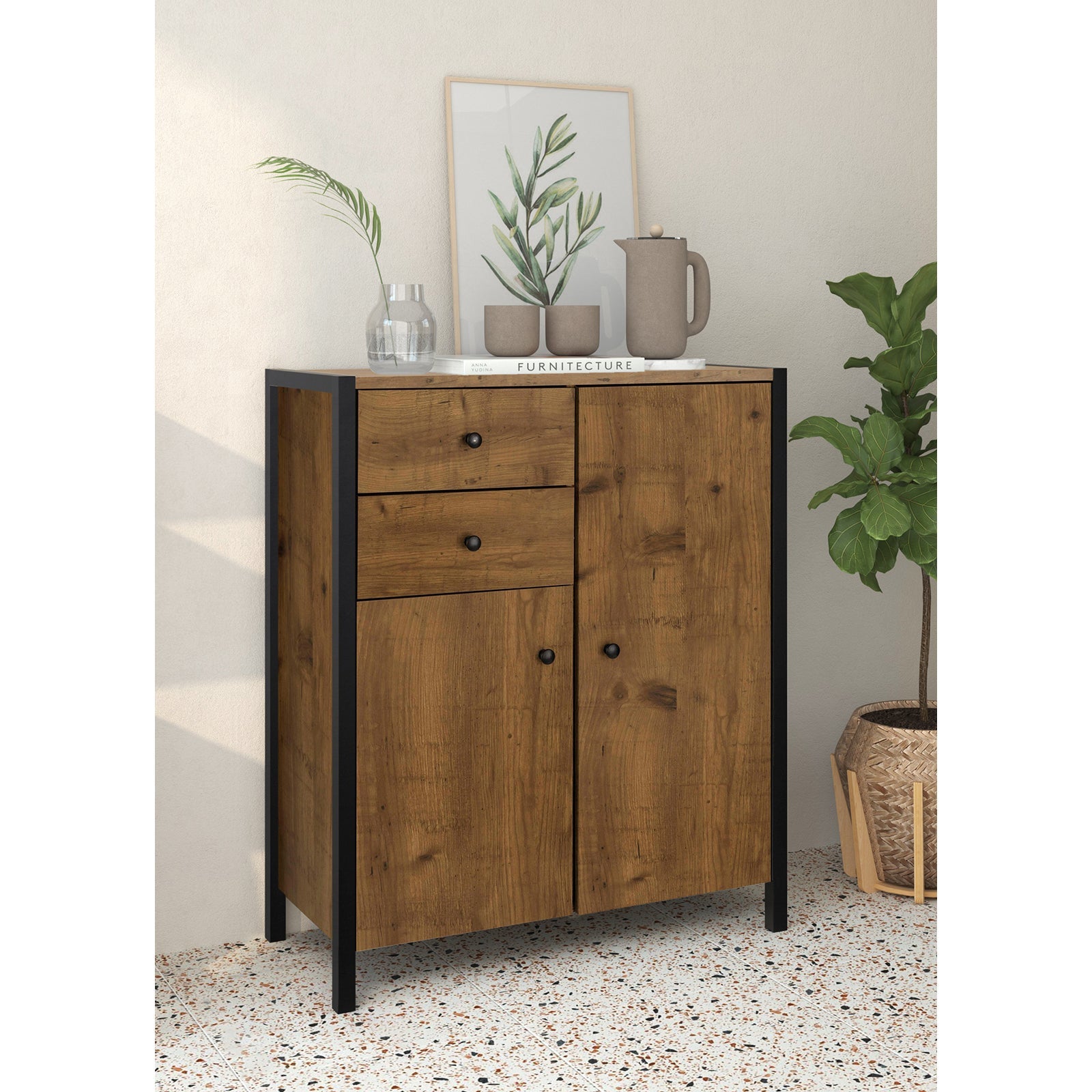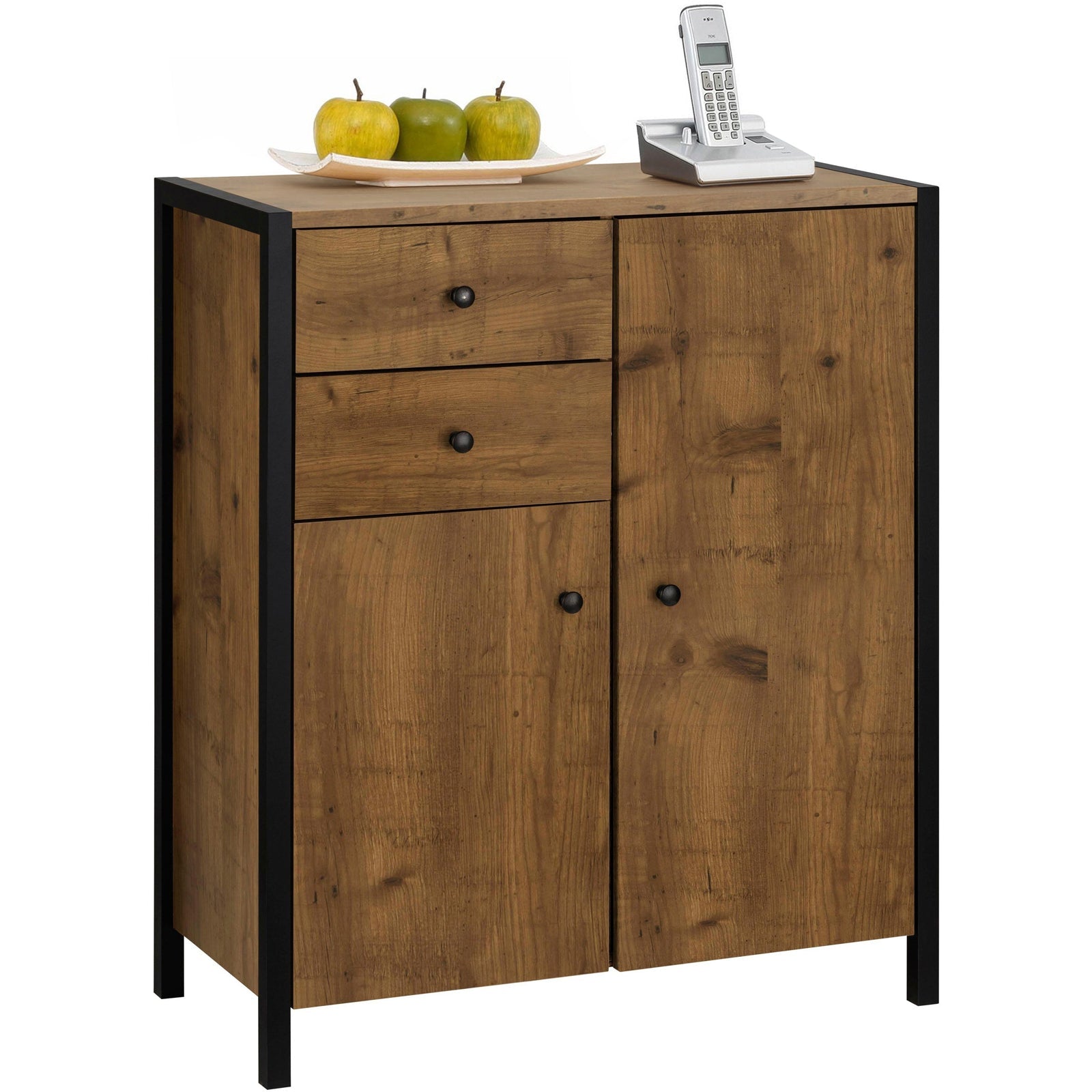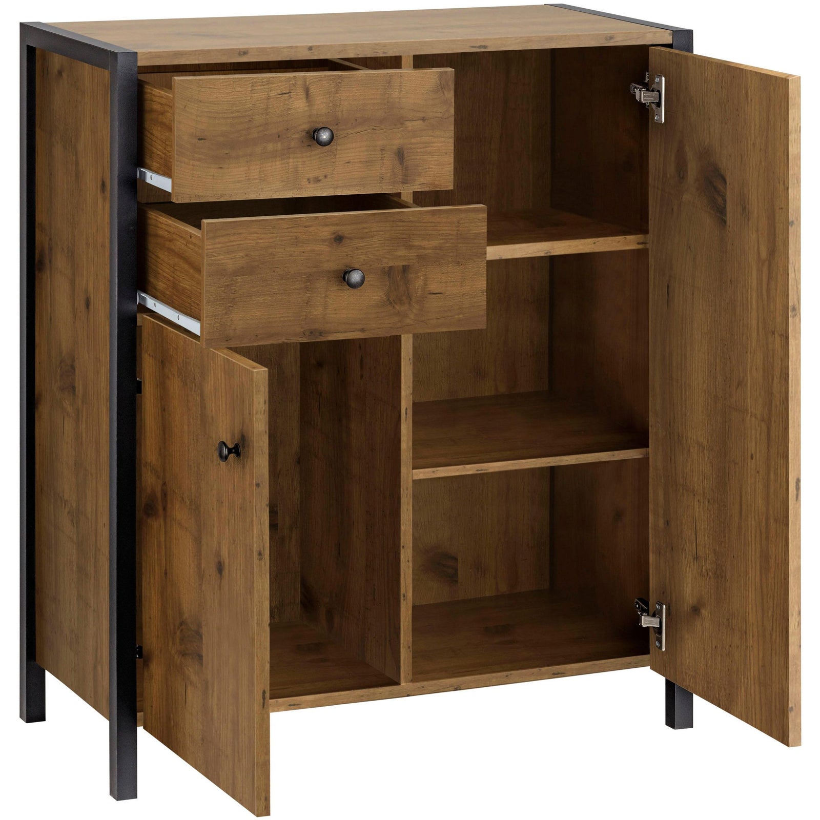 Et stilfuldt skab lavet af lamineret spånplade i tidløst design. Med sit design harmonerer det med både interiøret i den industrielle stil og landstedets stil. Farvekombinationen skinner igennem for at bringe et naturligt element ind i omgivelserne, og selve skabet er fuld af hyggelig charme. Integrerede rum og skuffer giver praktisk opbevaringspotentiale. Materialet til montage medfølger, så det hurtigt kan samles og opsættes.
