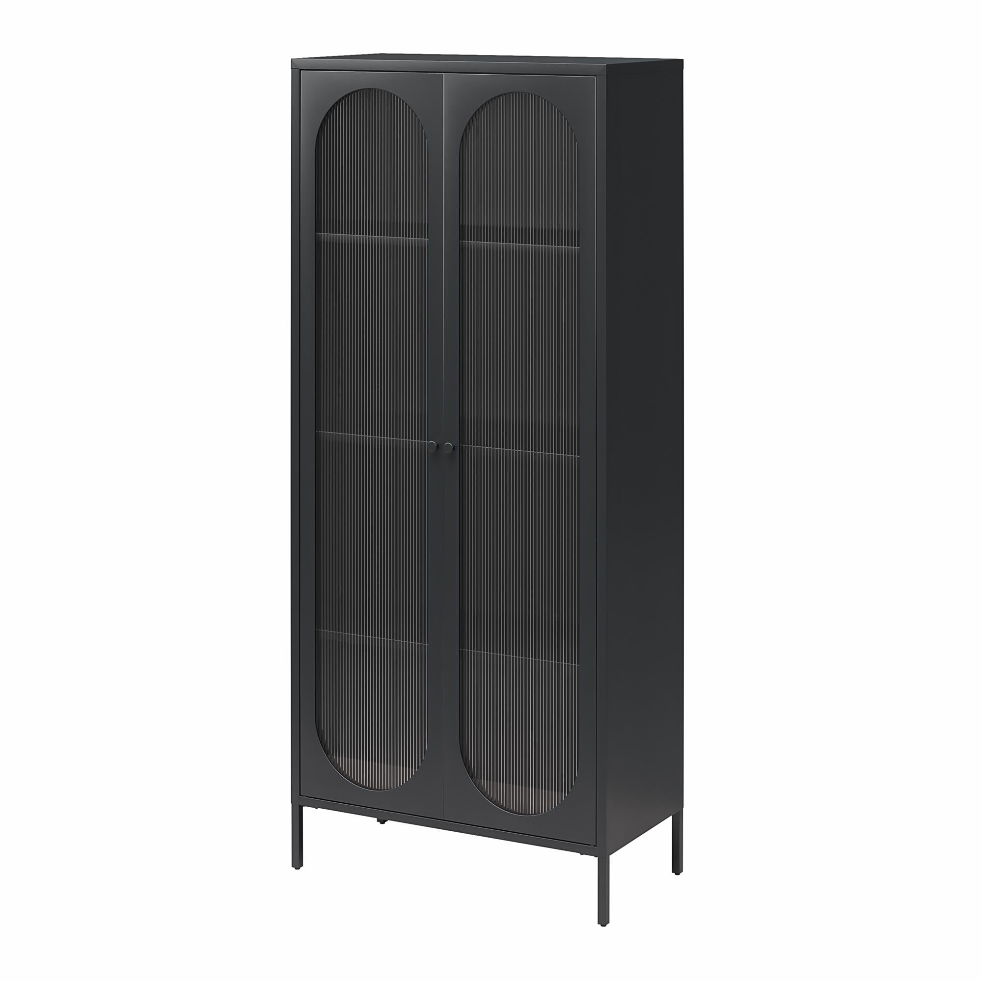 Højt skab med 2 glasdøre i metal sort