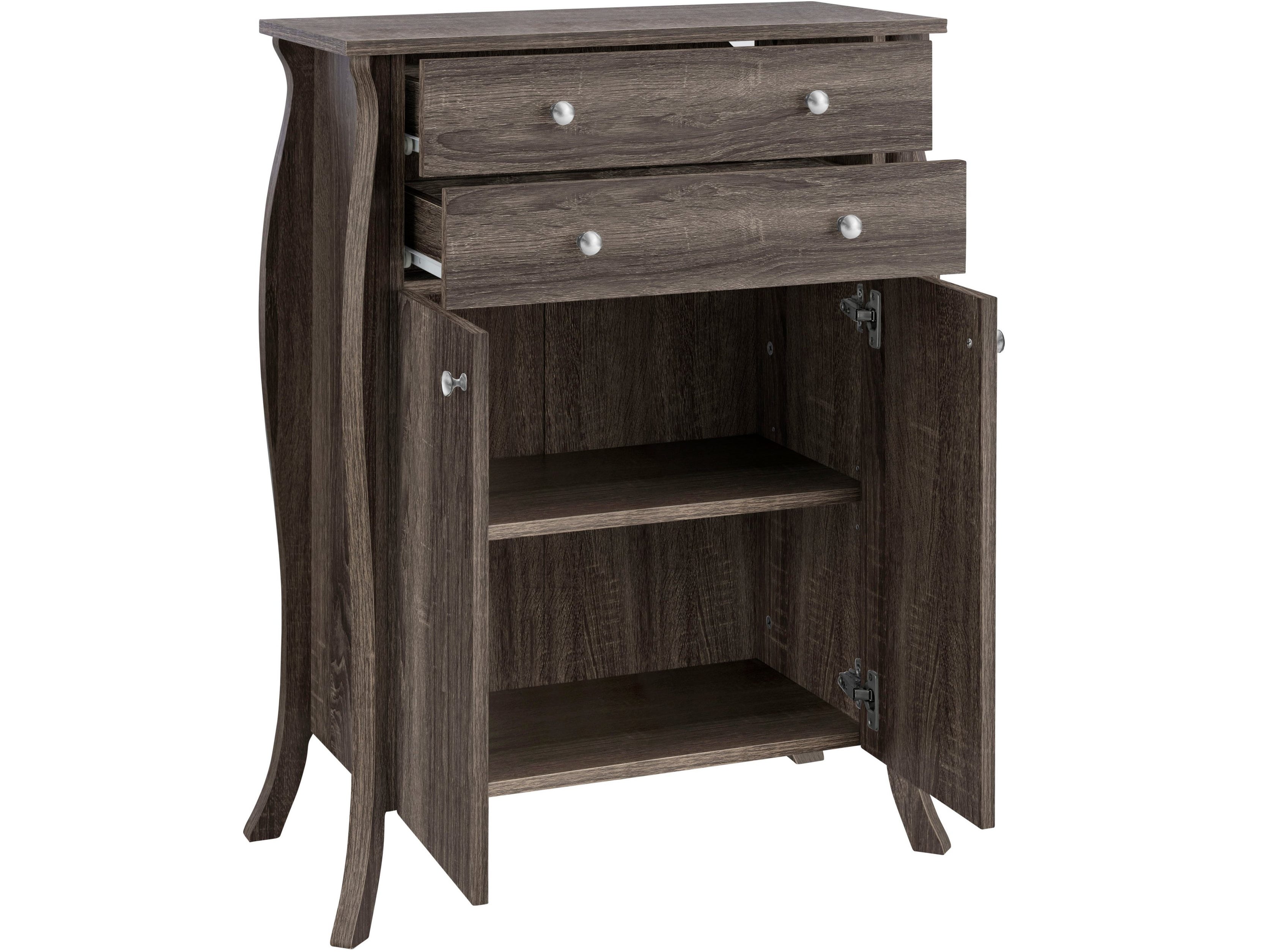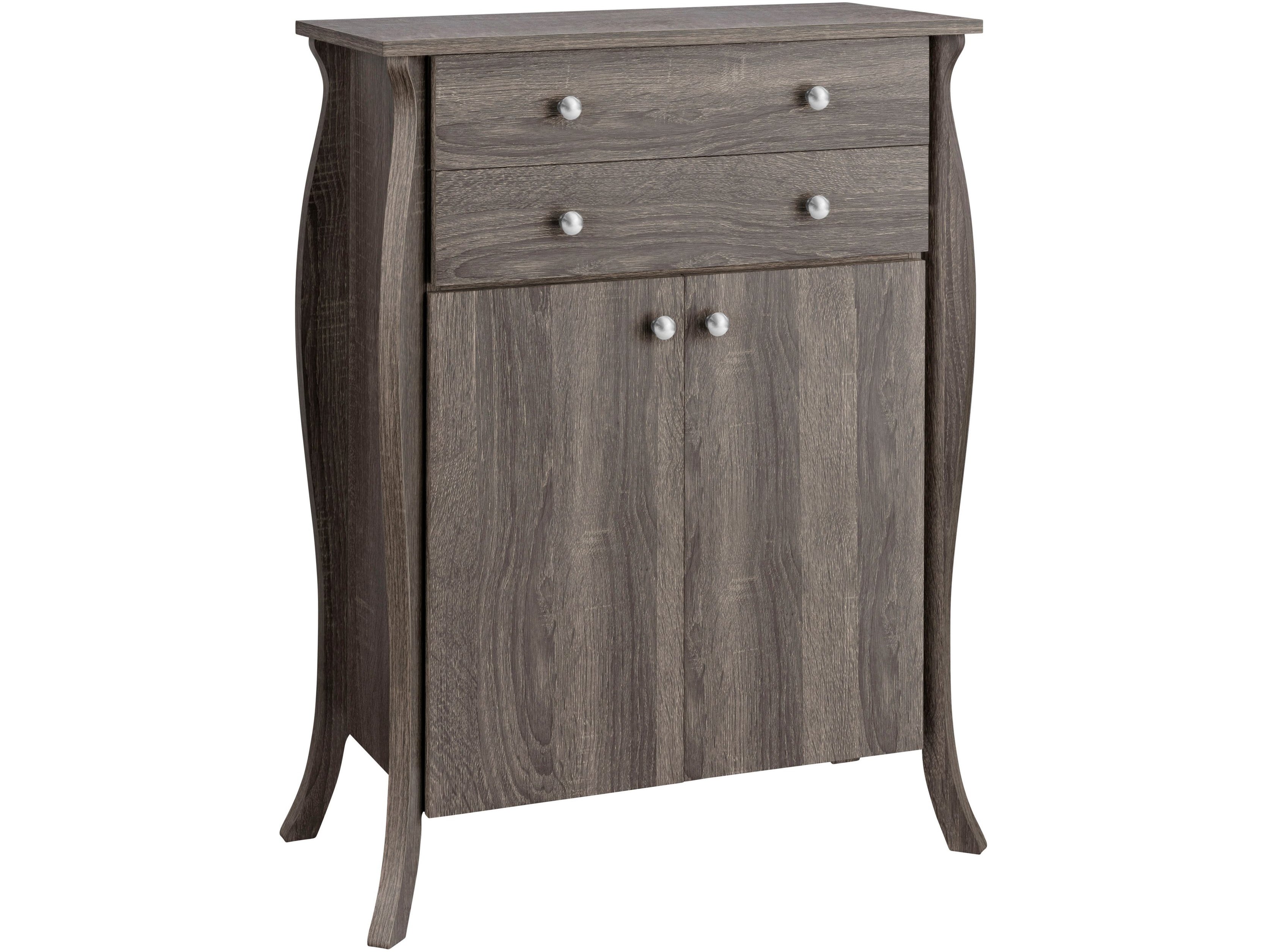 Skab med 2 låger og 2 skuffer i plade grå eg