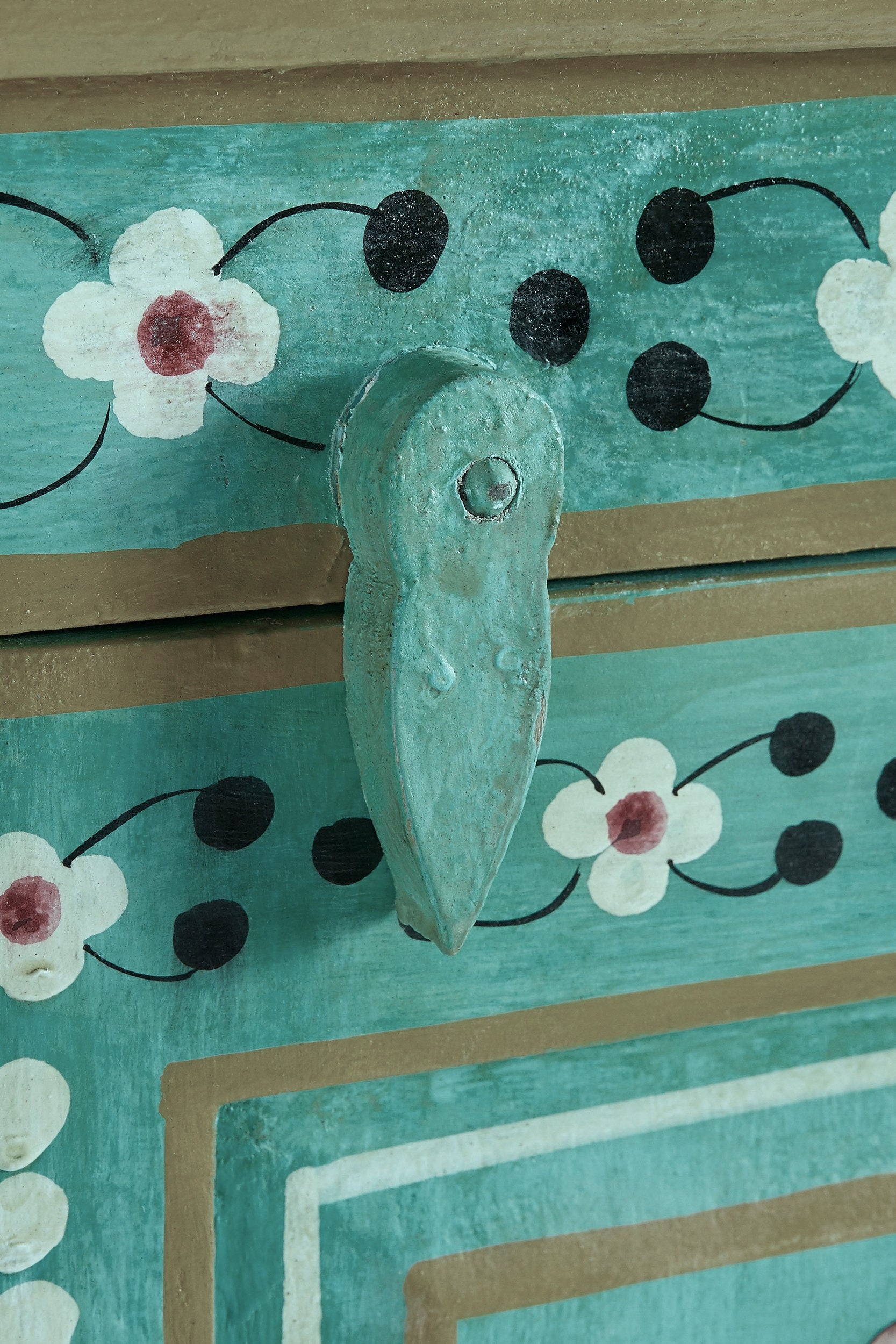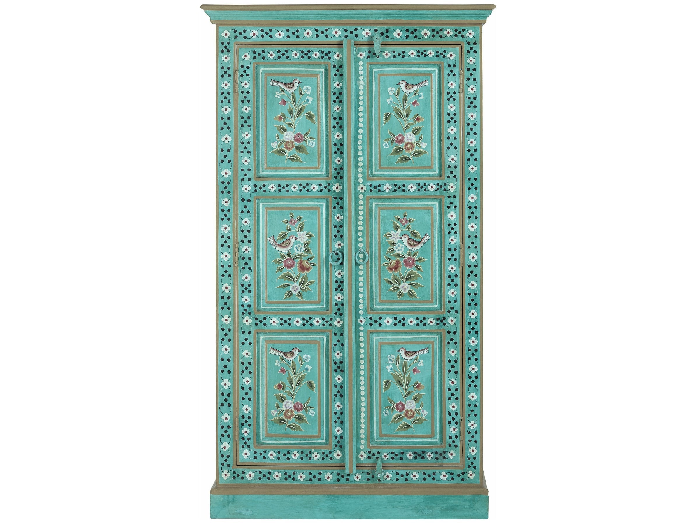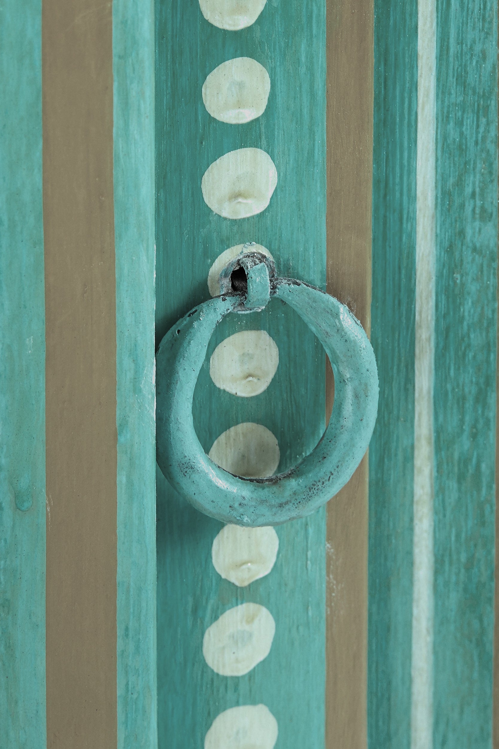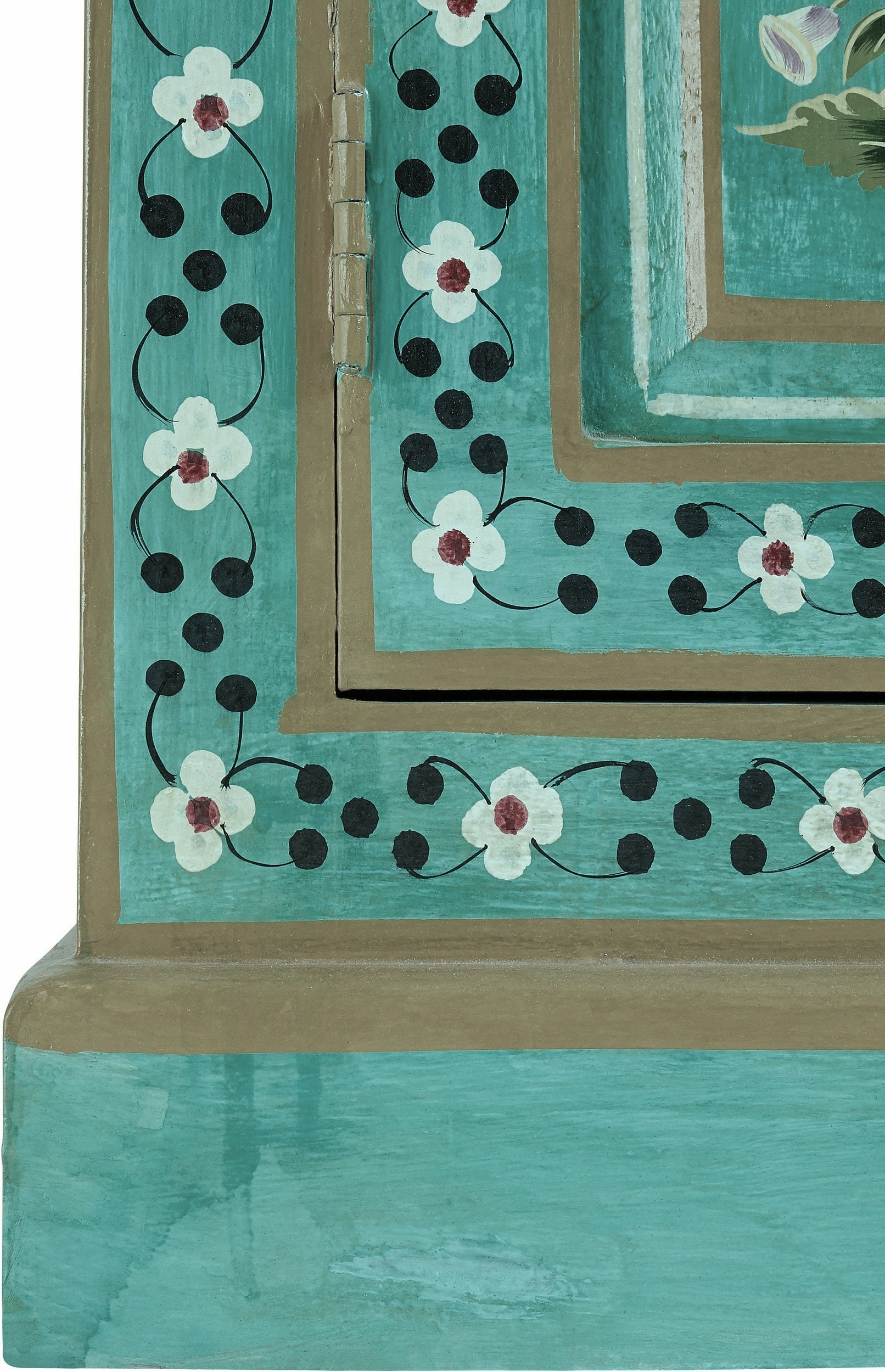 Føj et stilfuldt touch til dit værelse med dette ekstraordinære skab. Skabet er lavet af FSC-certificeret mangotræ for et trendy look og en letpleje overflade. Tre hylder bag døren giver masser af plads til forsyninger og væsentlige ting. Dens design er kendetegnet ved håndlavet unikt mønster. Skabet kan nemt samles med den medfølgende hardwaretaske. Med tidløst design er dette skab nemt at passe ind i alle indretningskoncepter og boligstile.