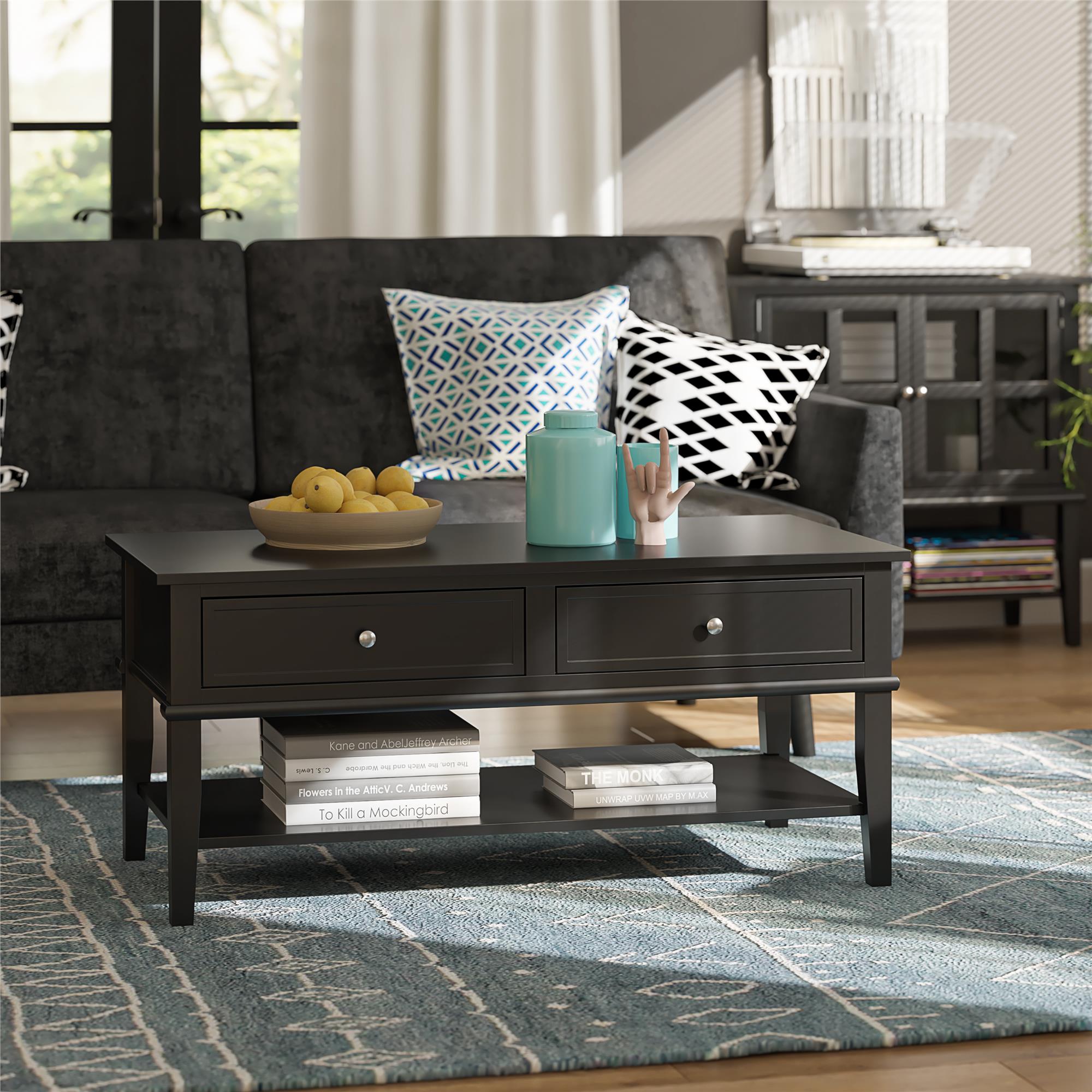 Sofabord med 2 skuffer i MDF Sort