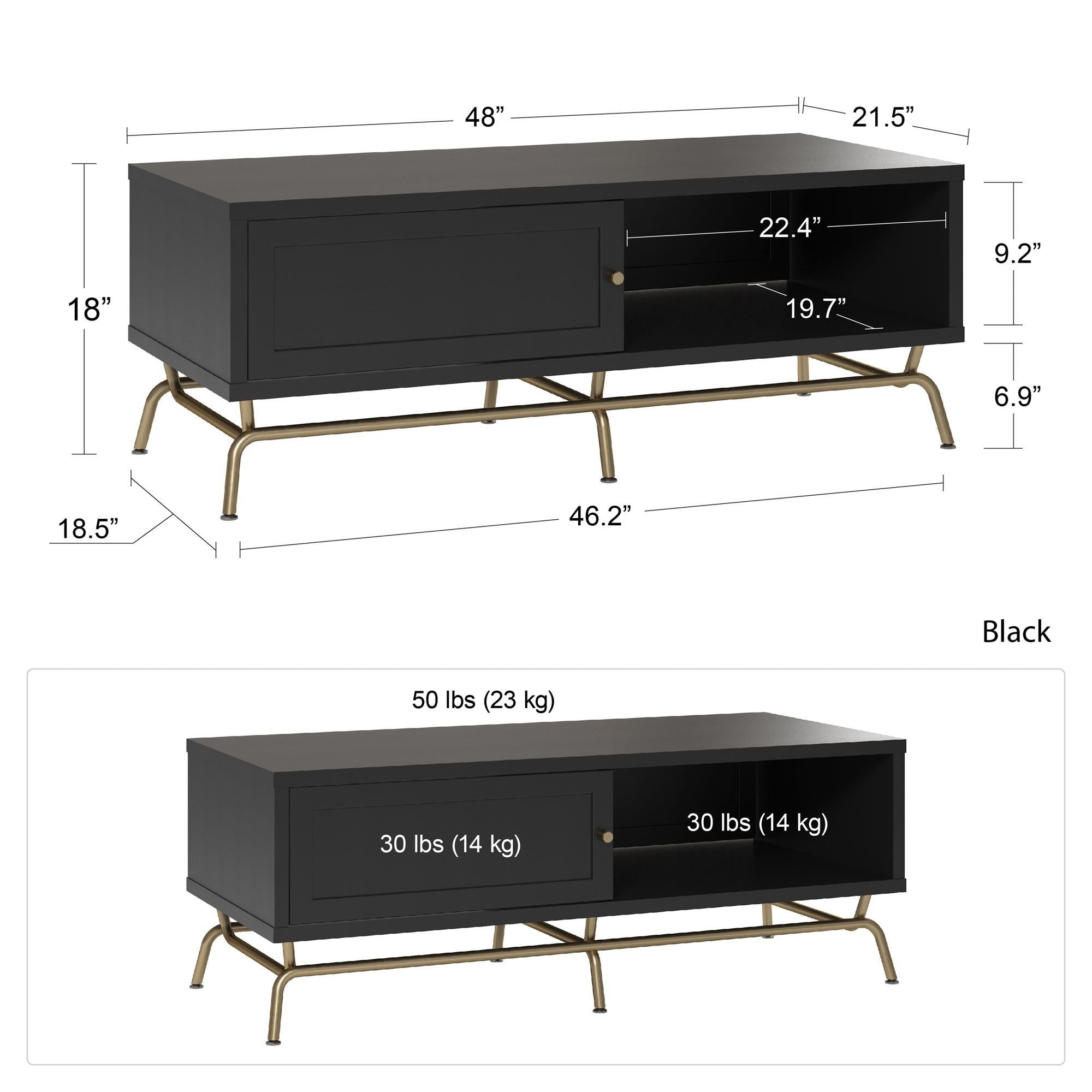 Sofabord med skydedør i MDF Sort