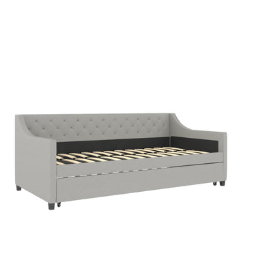 Du kan forvandle denne elegante dagseng til et hyggeligt sted at hvile på ingen tid overhovedet. Det særlige ved denne daybed er, at den har to liggeflader, hvorved den anden liggeflade let og ukompliceret kan trækkes ud i form af en sengeboks. Daybeden overbeviser med en klar form i en moderne stil og kan nemt integreres i dit opholdsområde. Sengerammen er lavet af træ og sikrer stabilitet.