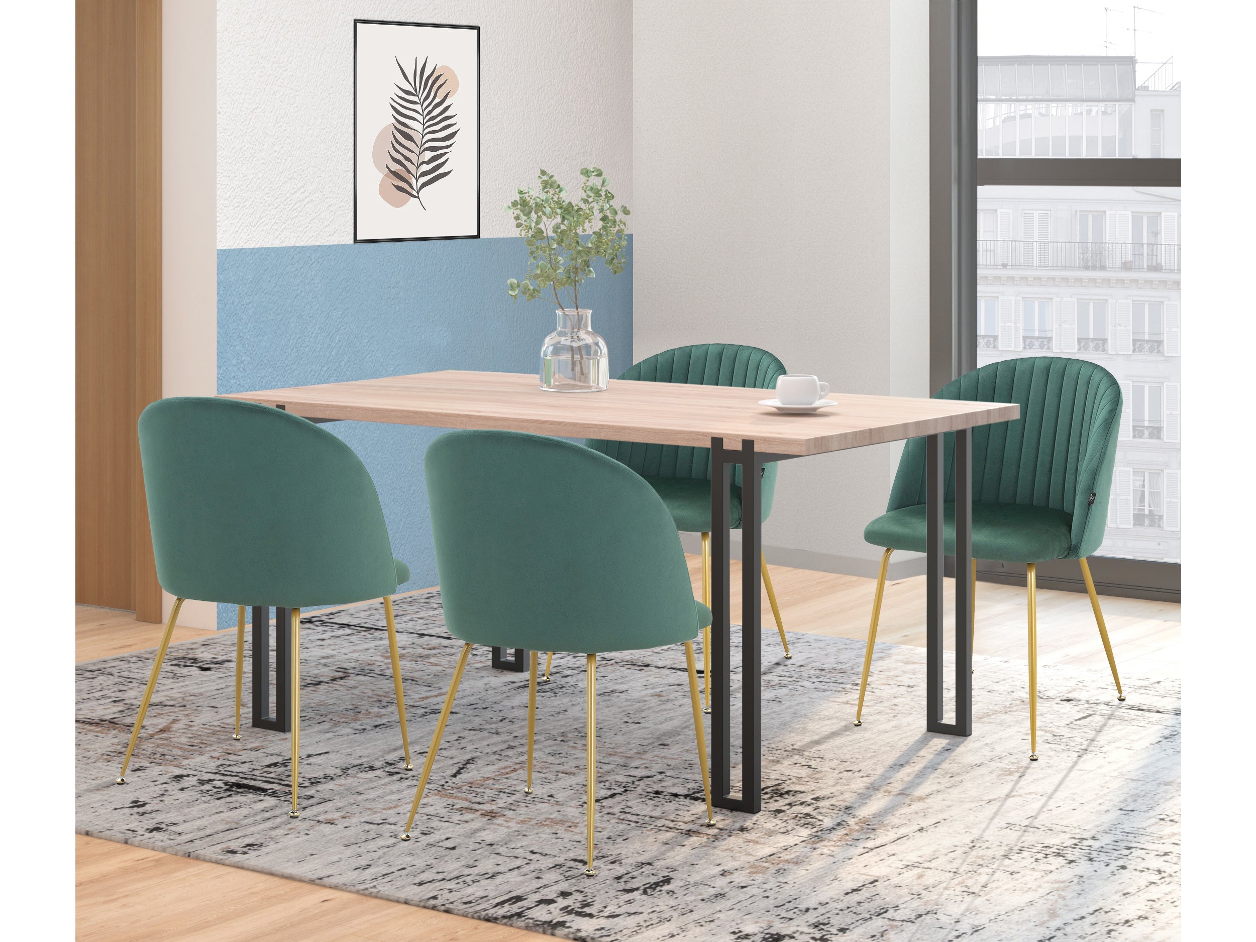 Denne spisestuestol er et godt grundlag for at skabe en hyggelig og stemningsfuld stemning i spisepladsen. Den maksimale bæreevne er omkring 120 kg. Stoffet sikrer en varm og behagelig siddeoplevelse. Metalrammen ser holdbar ud og giver den nødvendige stabilitet. Stolen er nem at passe, fordi du blot kan tørre den af med en fugtig klud. Spisestuestolen præsenterer sig i et tidløst og moderne udtryk, der kan kombineres på mange måder. Pastelfarver anbefales for eksempel for at understrege den trendy livsstil og gøre den endnu mere behagelig.