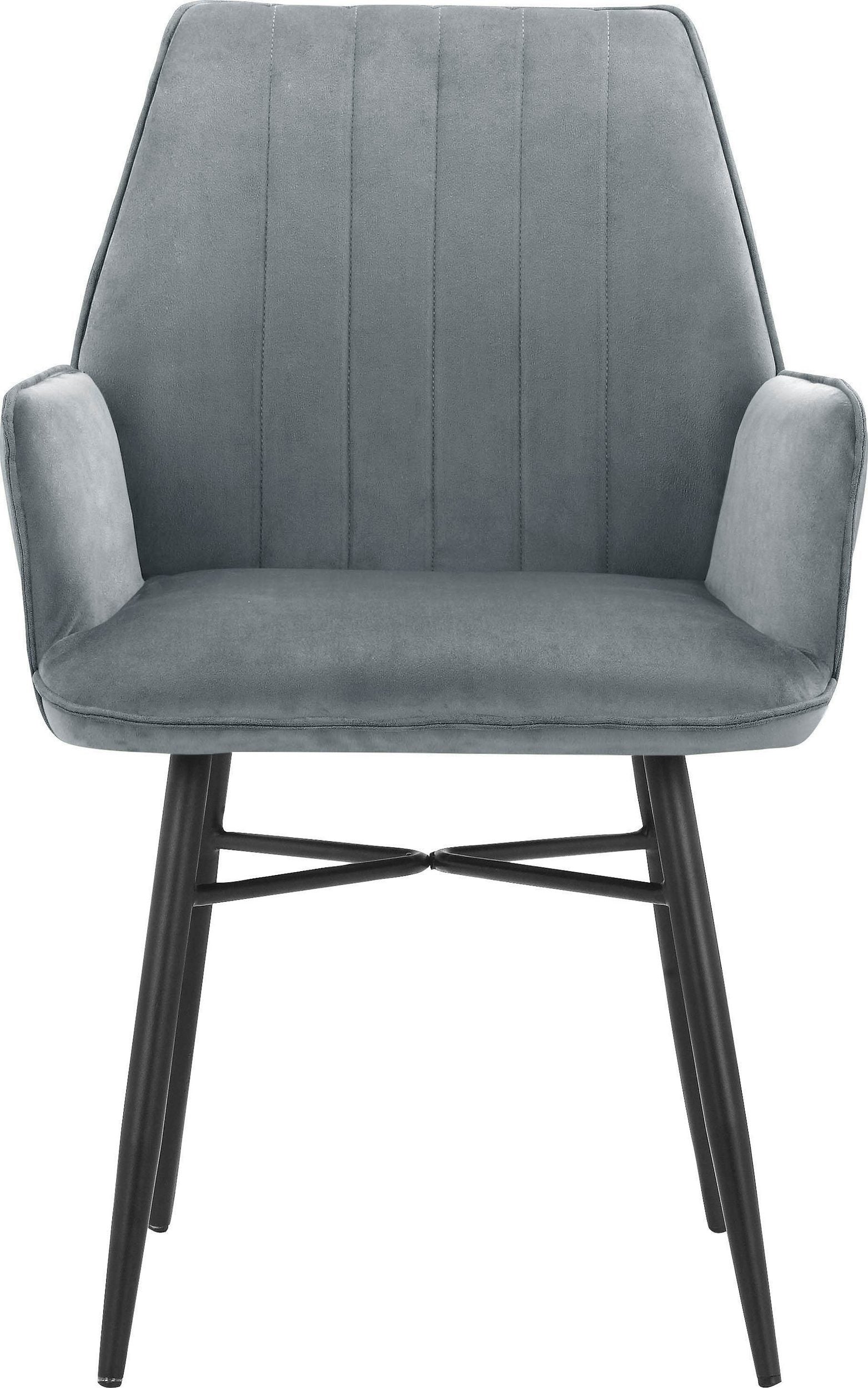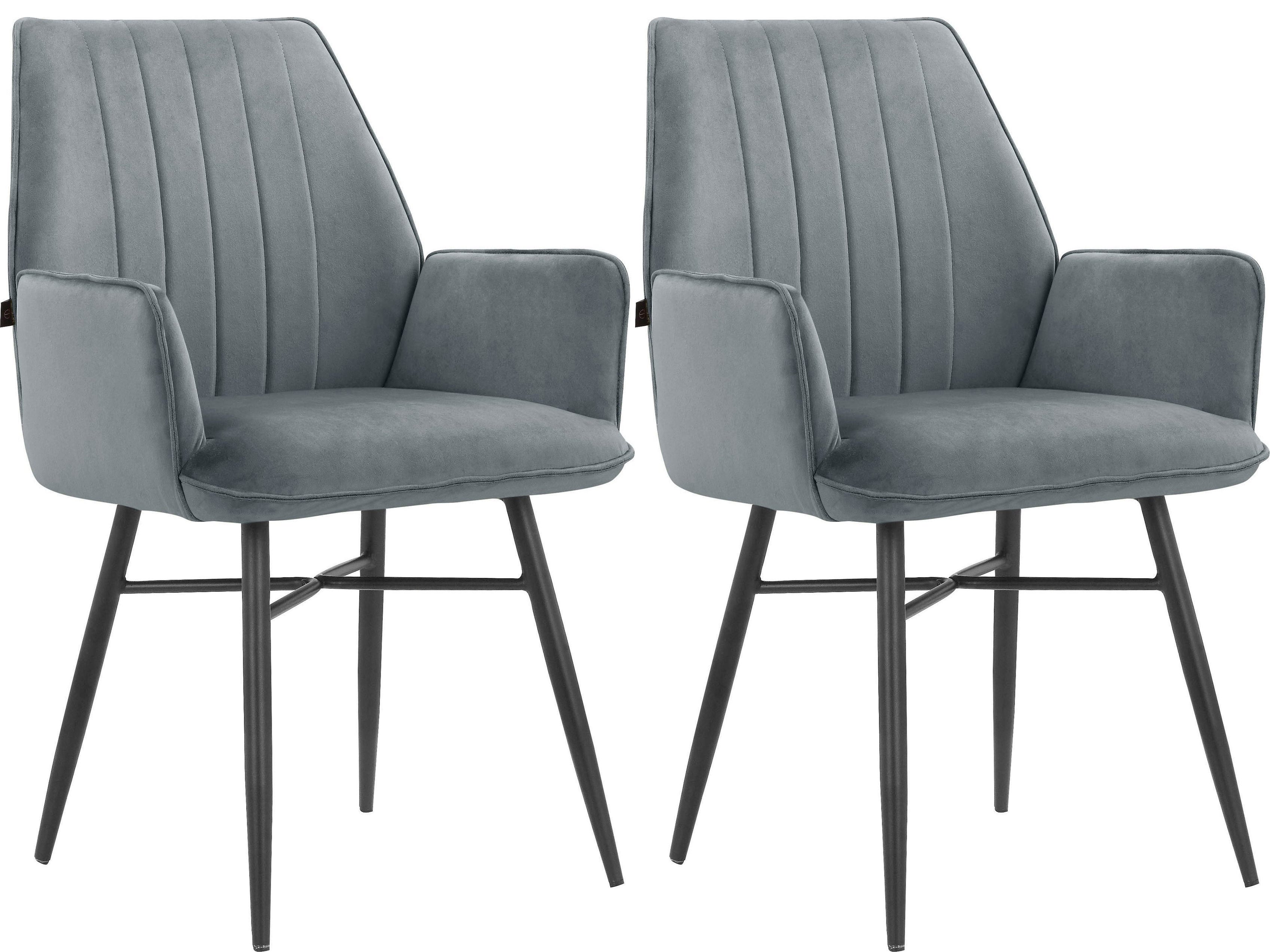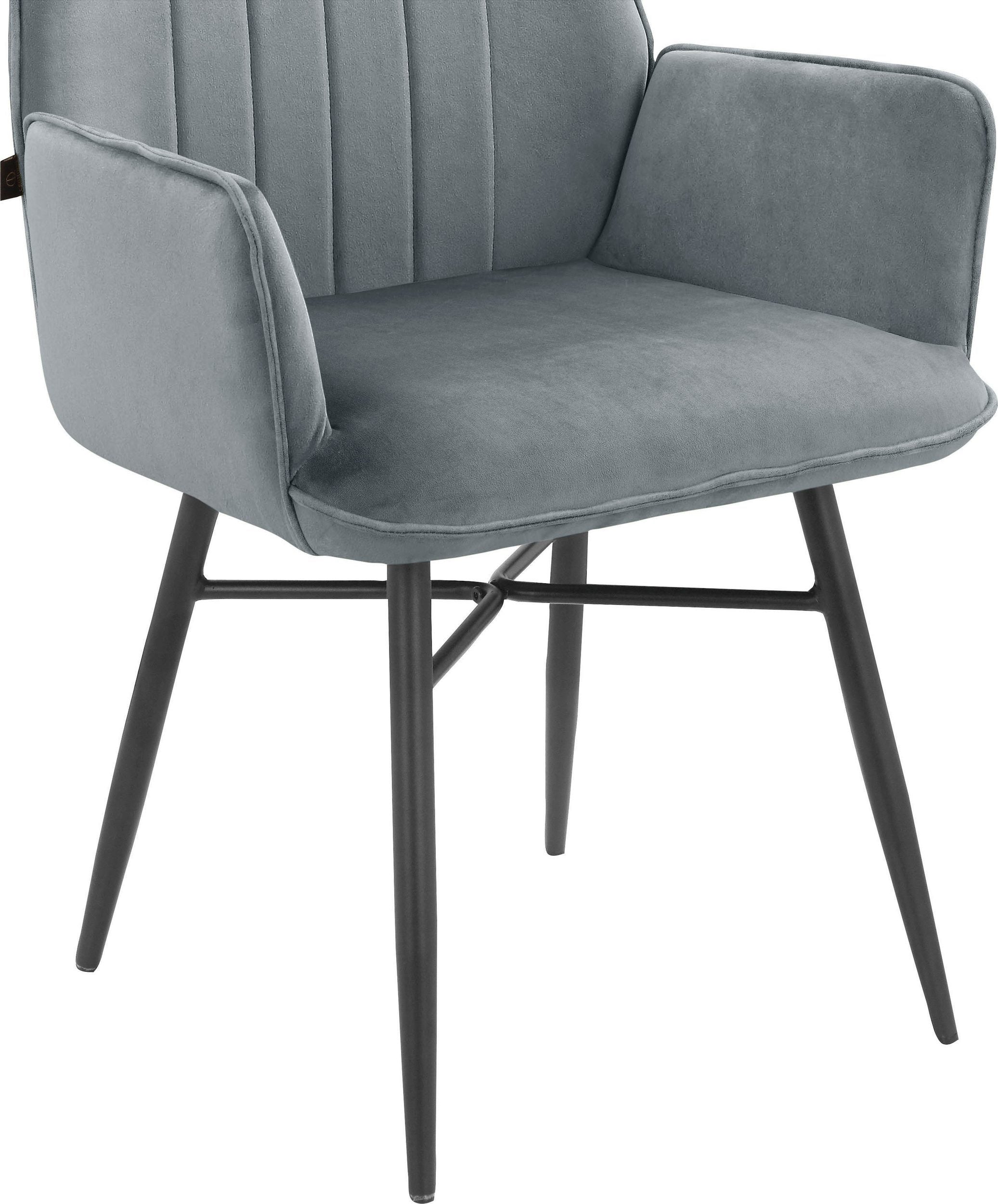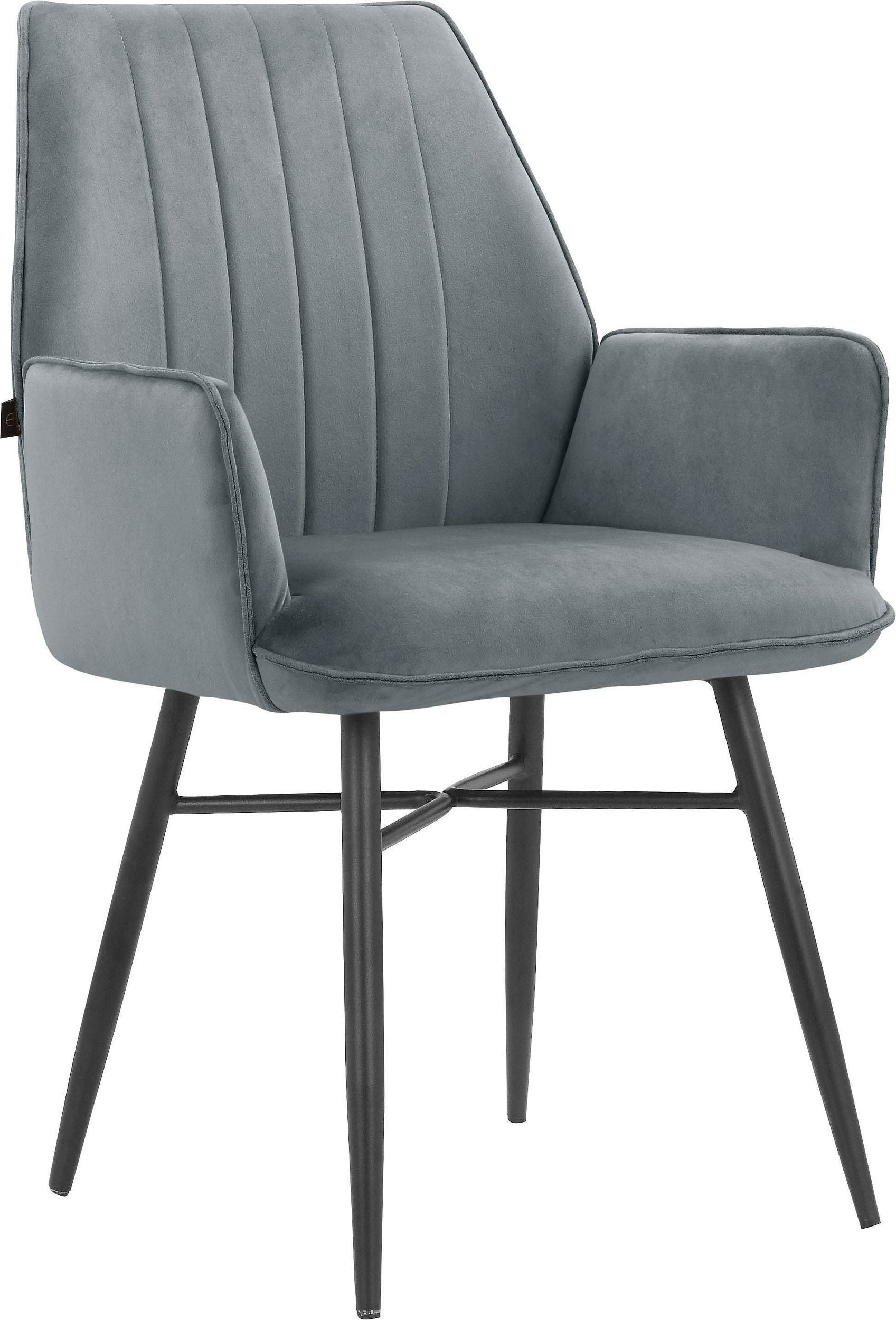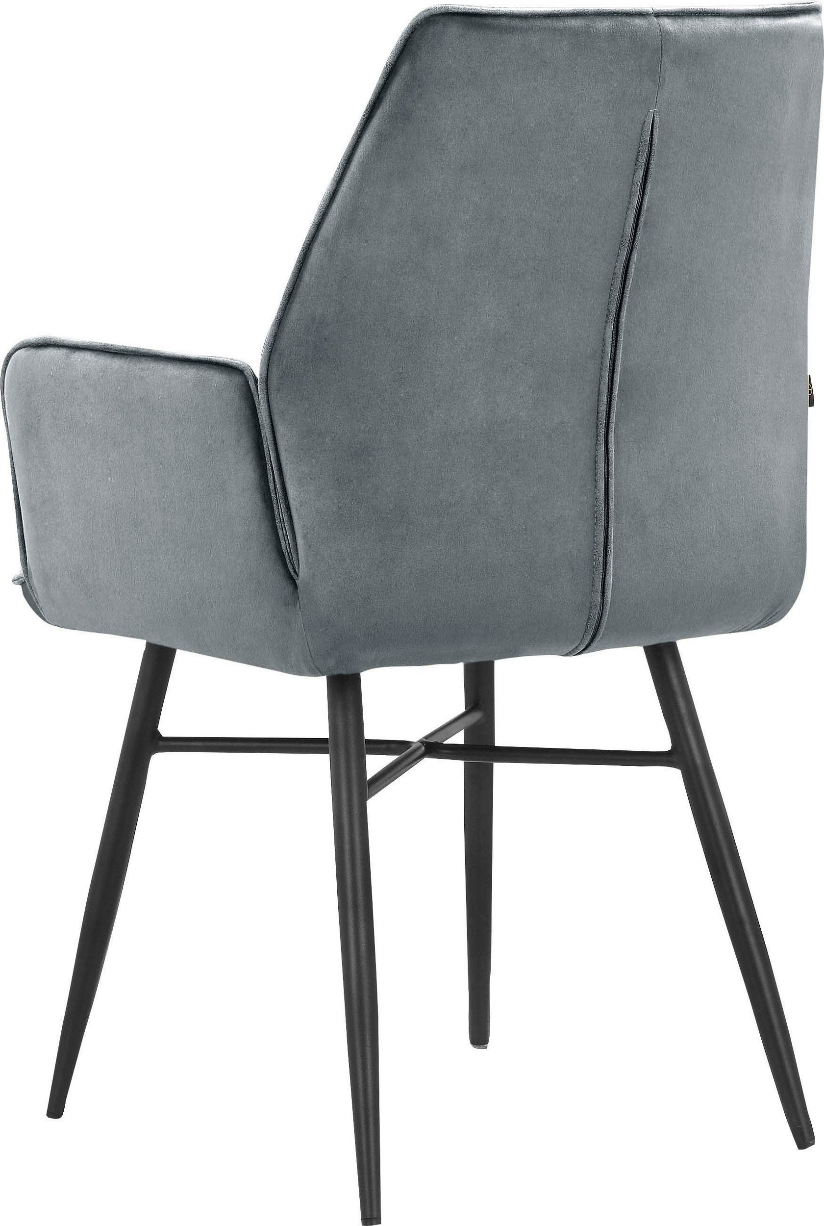 Elegant komfortabel og alsidig disse egenskaber beskriver lænestolen med polstring perfekt. Visuelt imponerer stolen med sit elegante formsprog. Designets højdepunkter omfatter de vandrette sømme på bagsiden samt stellet lavet af sortlakeret metal. Alternativt kan et mixandmatch-sæt sammensættes. Du kan bruge stolen til at stille den i spisestuen eller i køkkenet. Lænestolen med polstring leveres i et sæt 2 stk.