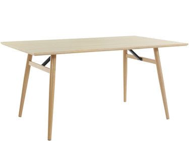Berig din spiseplads med dette minimalistiske spisebord i scandi look. Den er lavet af slidstærkt FSC-certificeret MDF for en let pleje overflade og en robust struktur. De slanke let udad skrå bordben tilføjer en charmerende accent. Bordet kan nemt samles med den medfølgende hardwaretaske. Med tidløst design er dette spisebord nemt at passe ind i alle indretningskoncepter og boligstile.