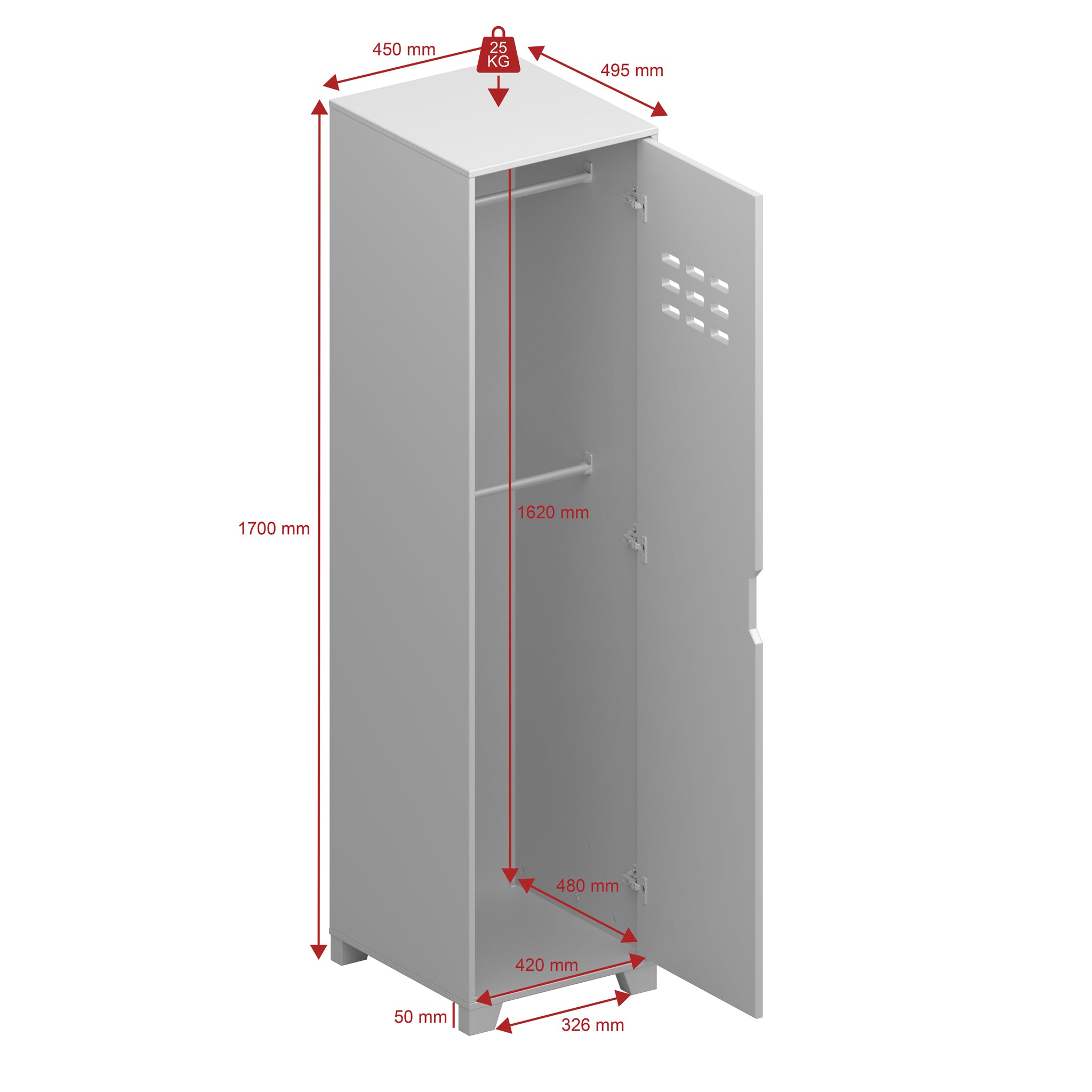 Garderobe med 1 dør i Grå MDF