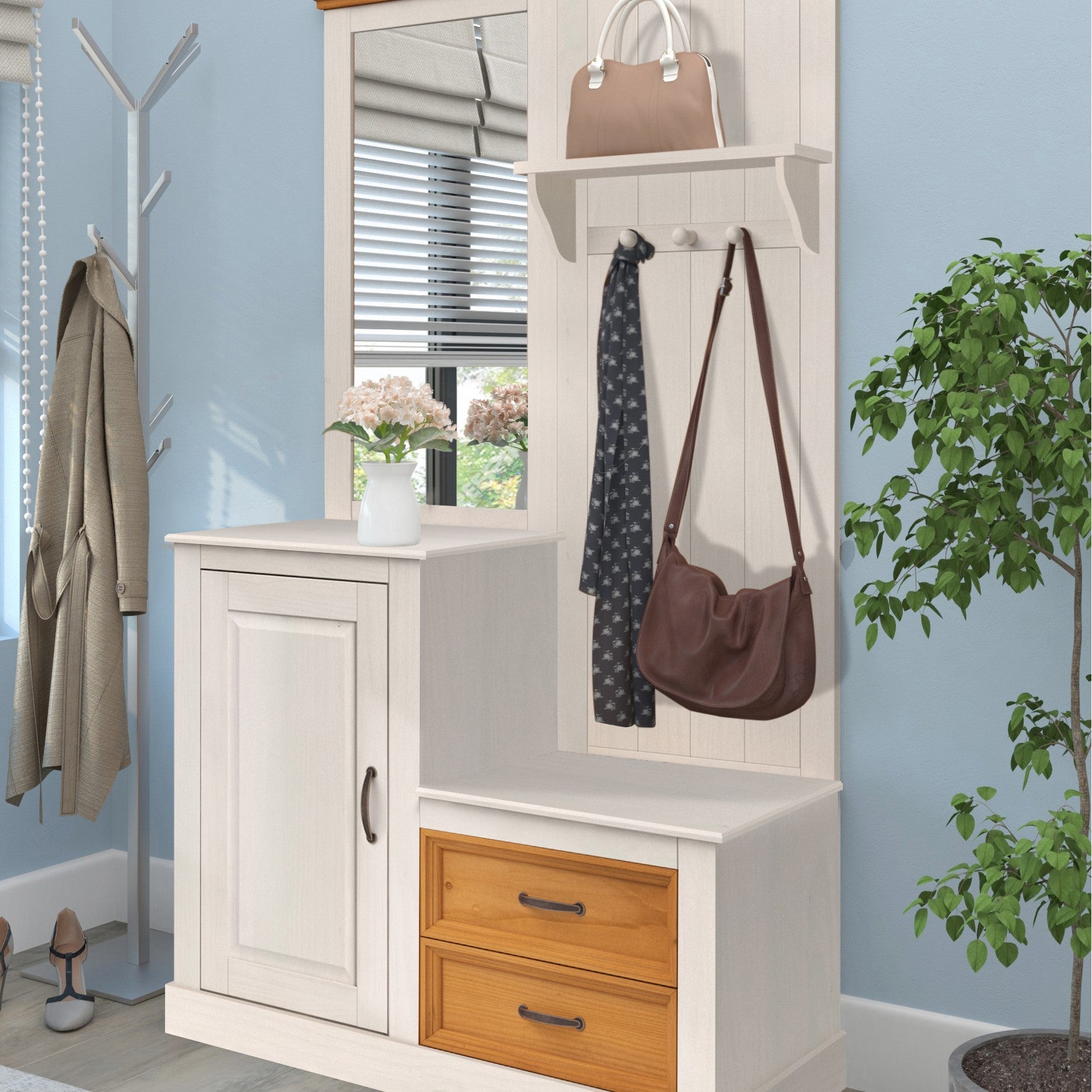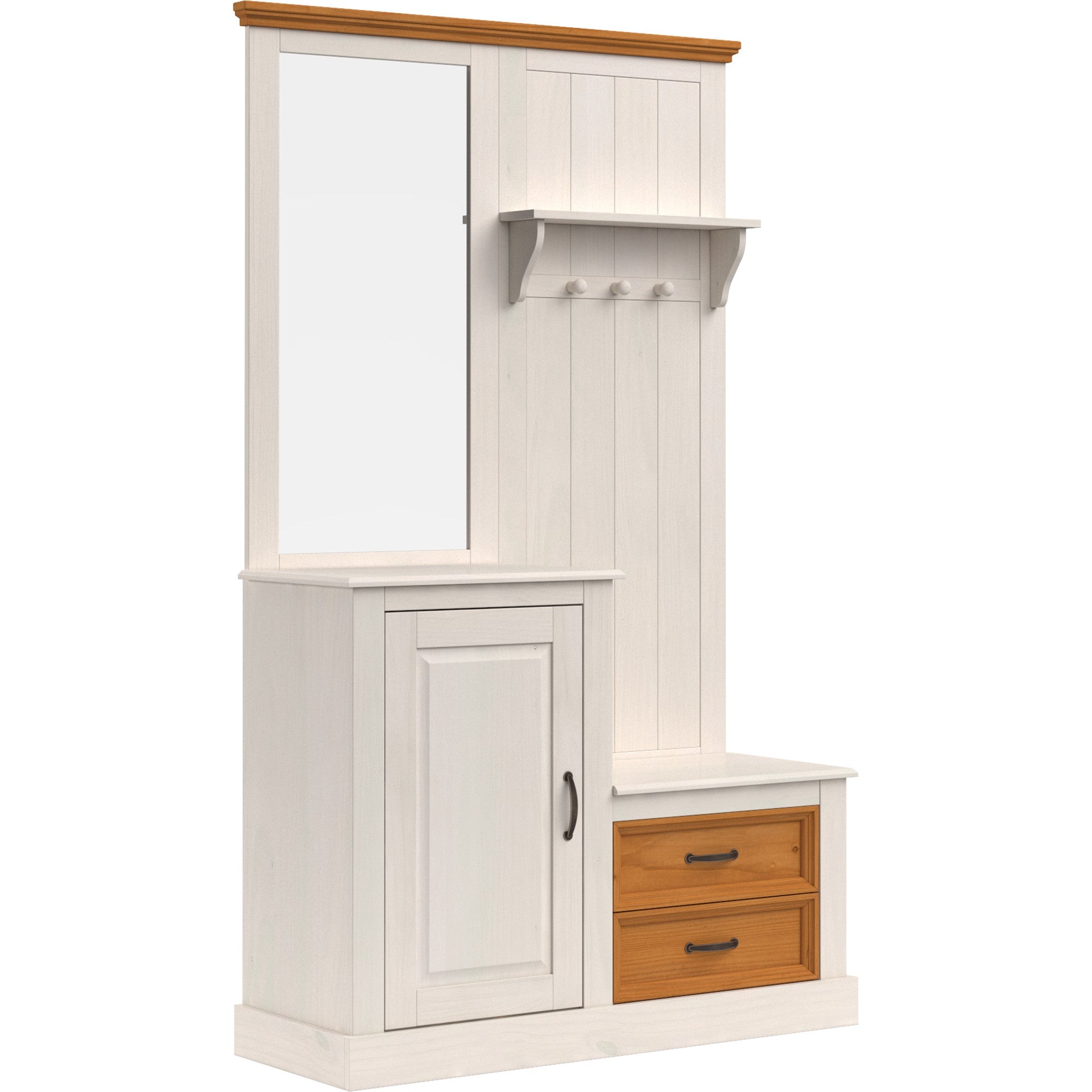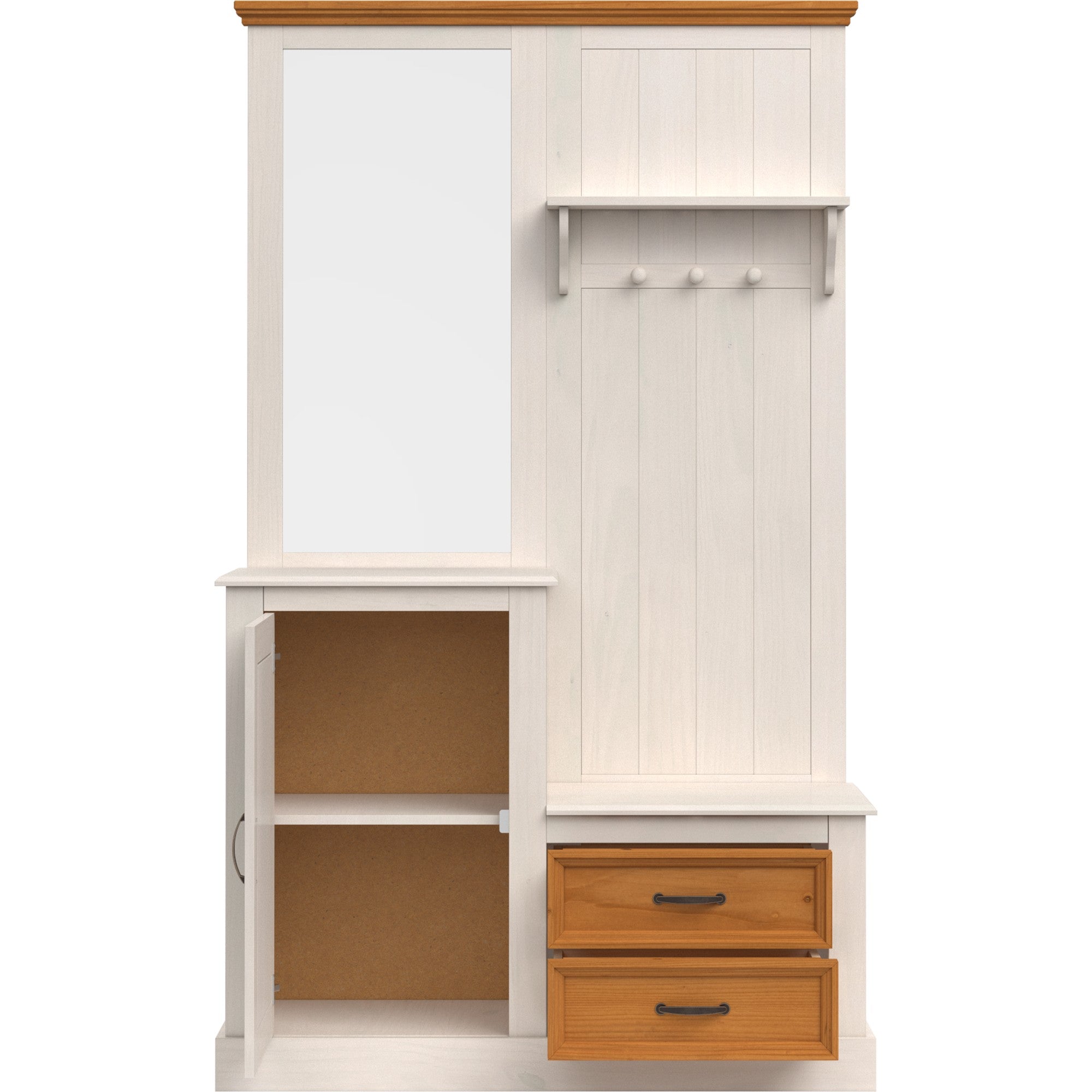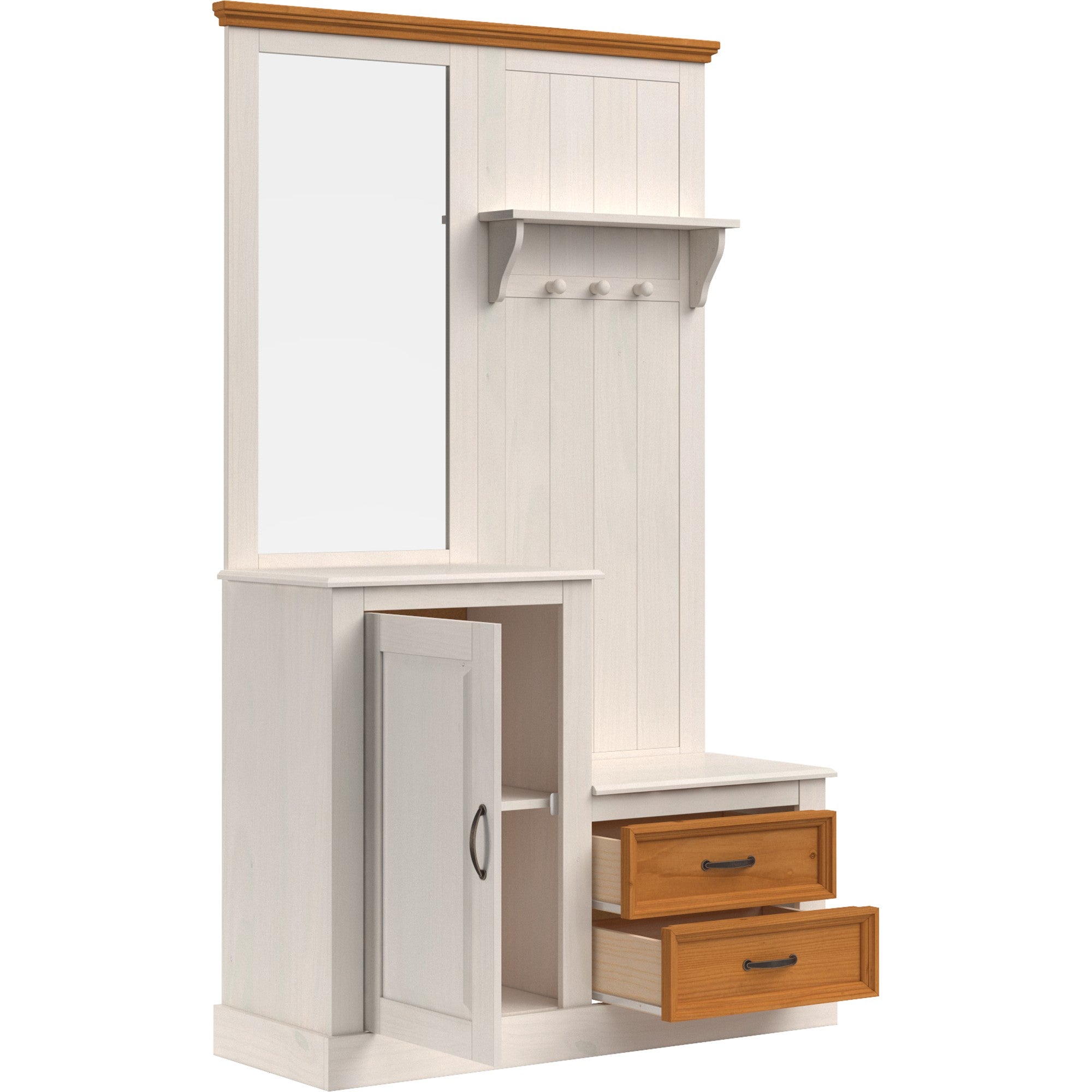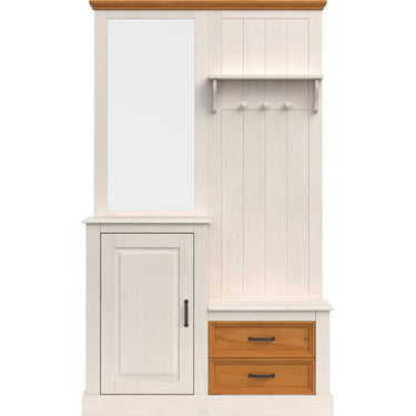 Garderobe med spejl og 1 dør og 2 skuffer i fyrretræshvid